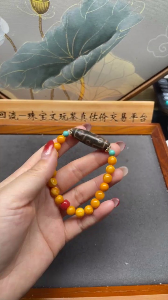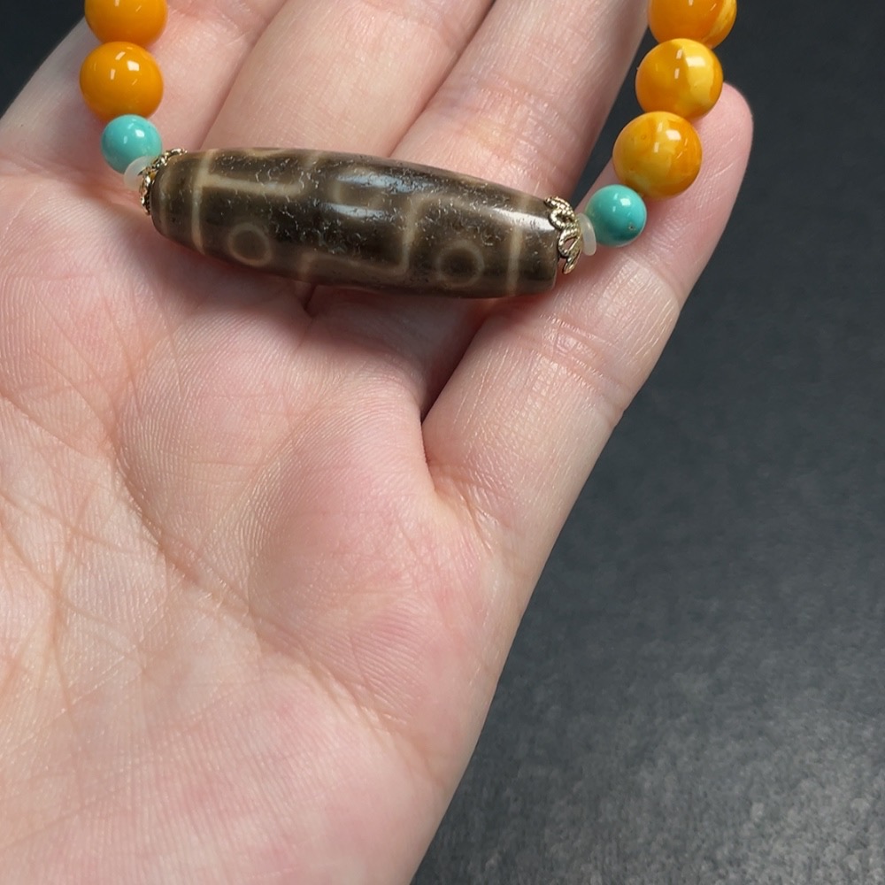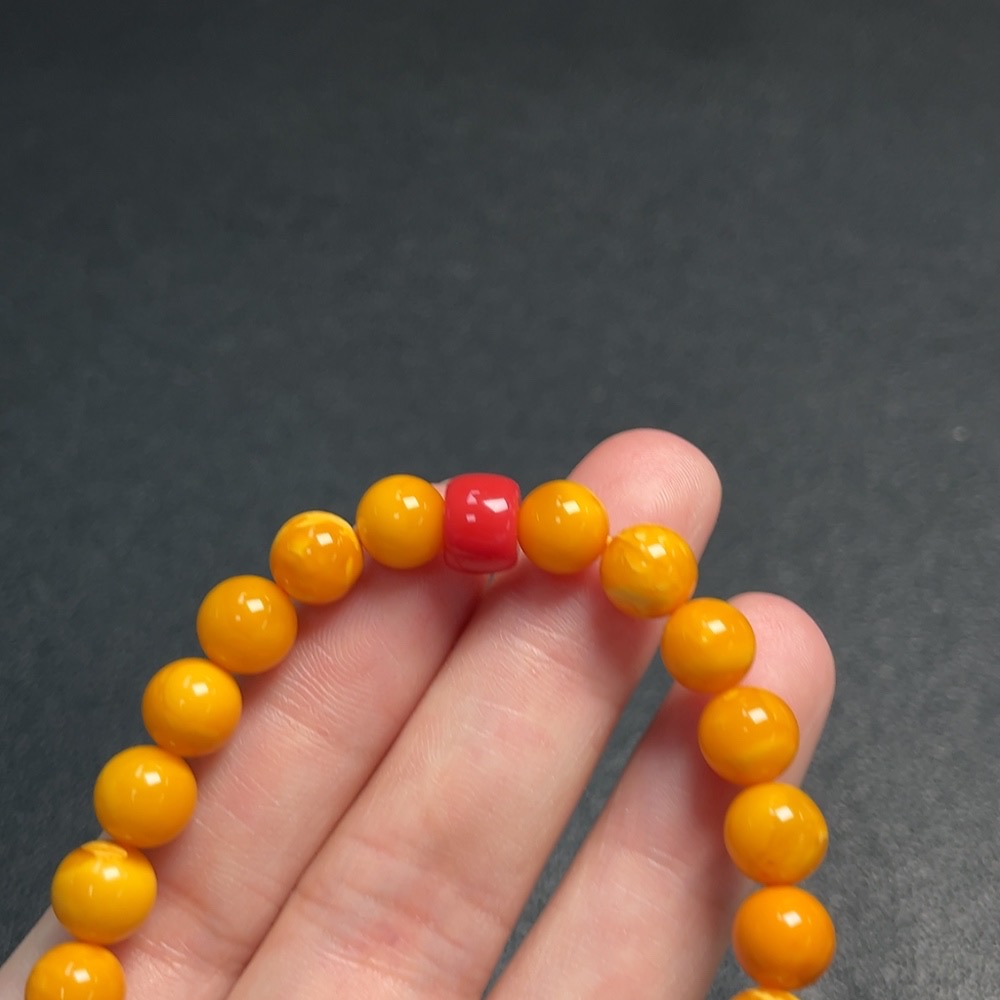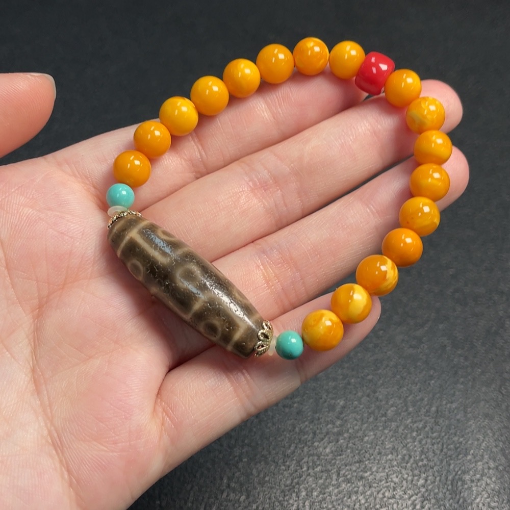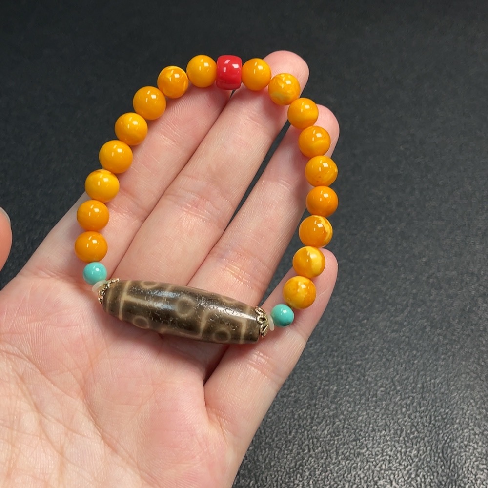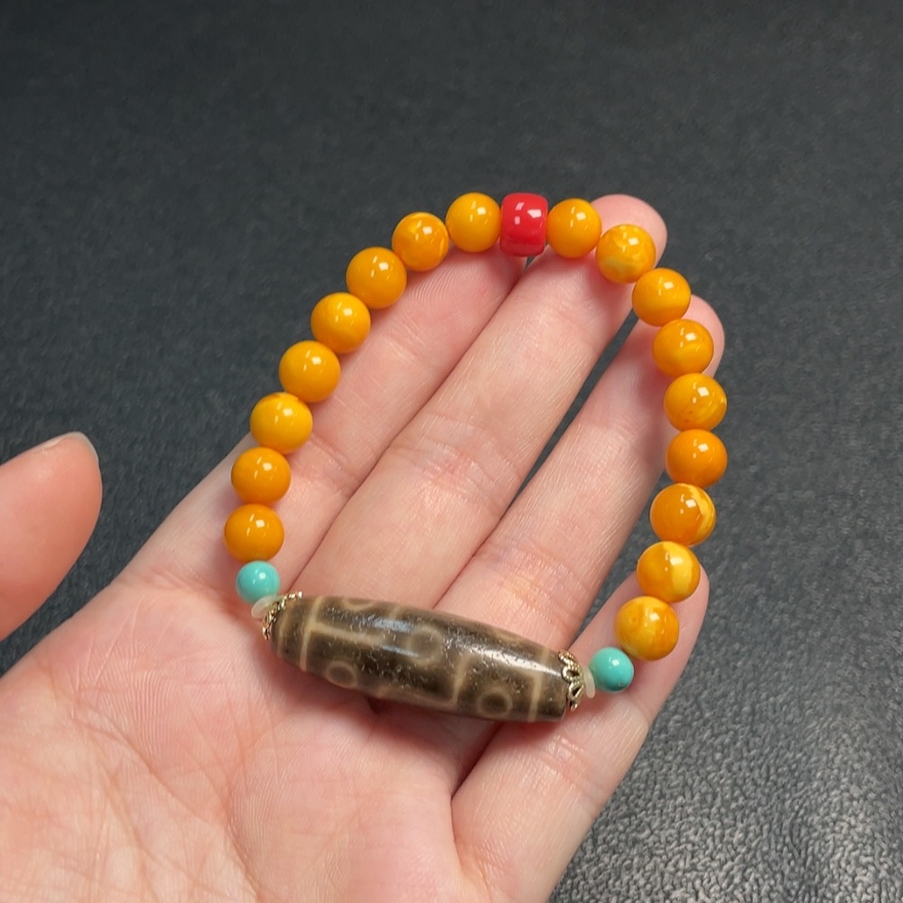 Amber Beeswax Bracelet with Non-Natural/Non-Gold Accent Stones, Total Weight Approx. 12.61g, Size ~7.7mm