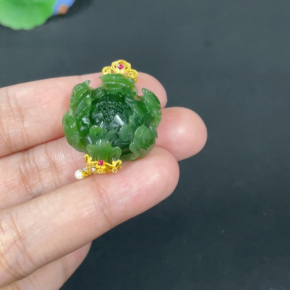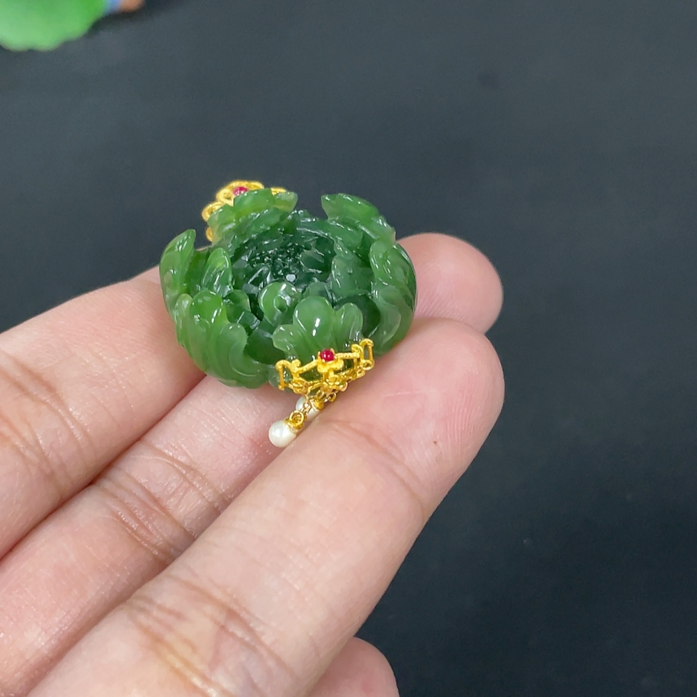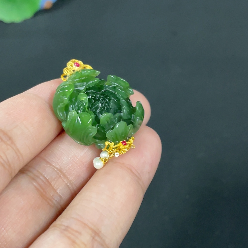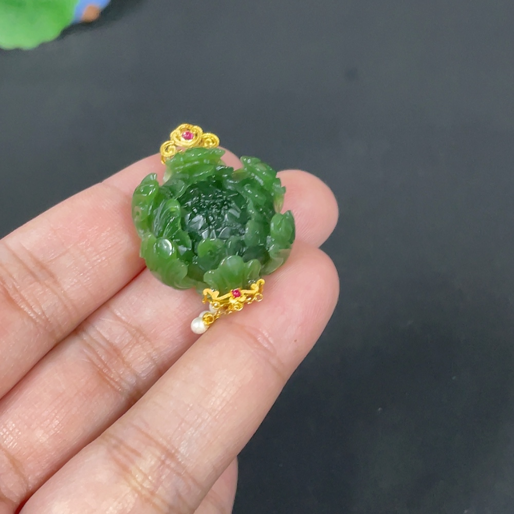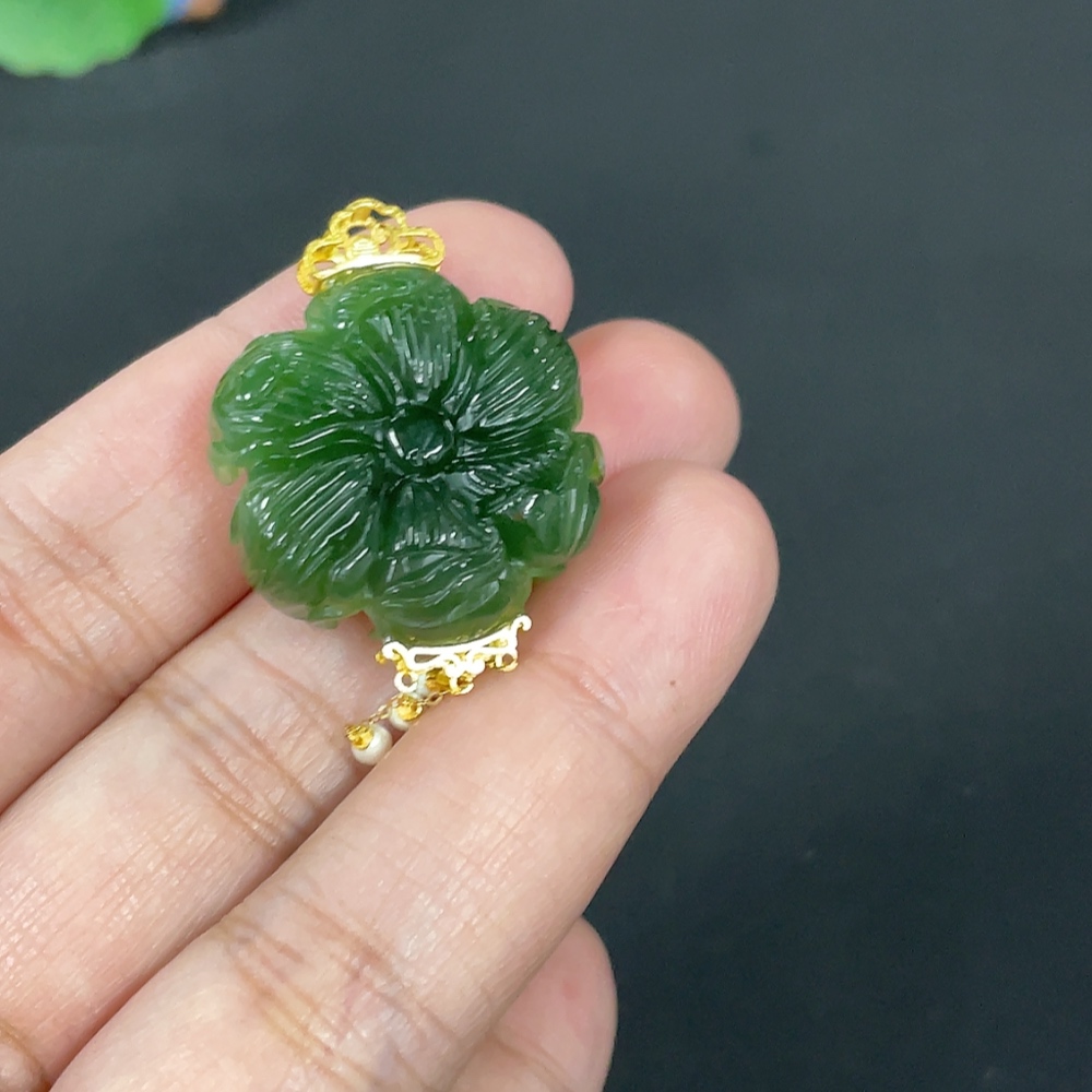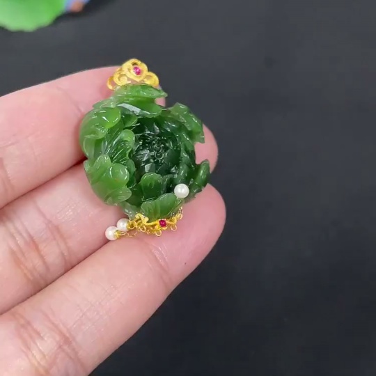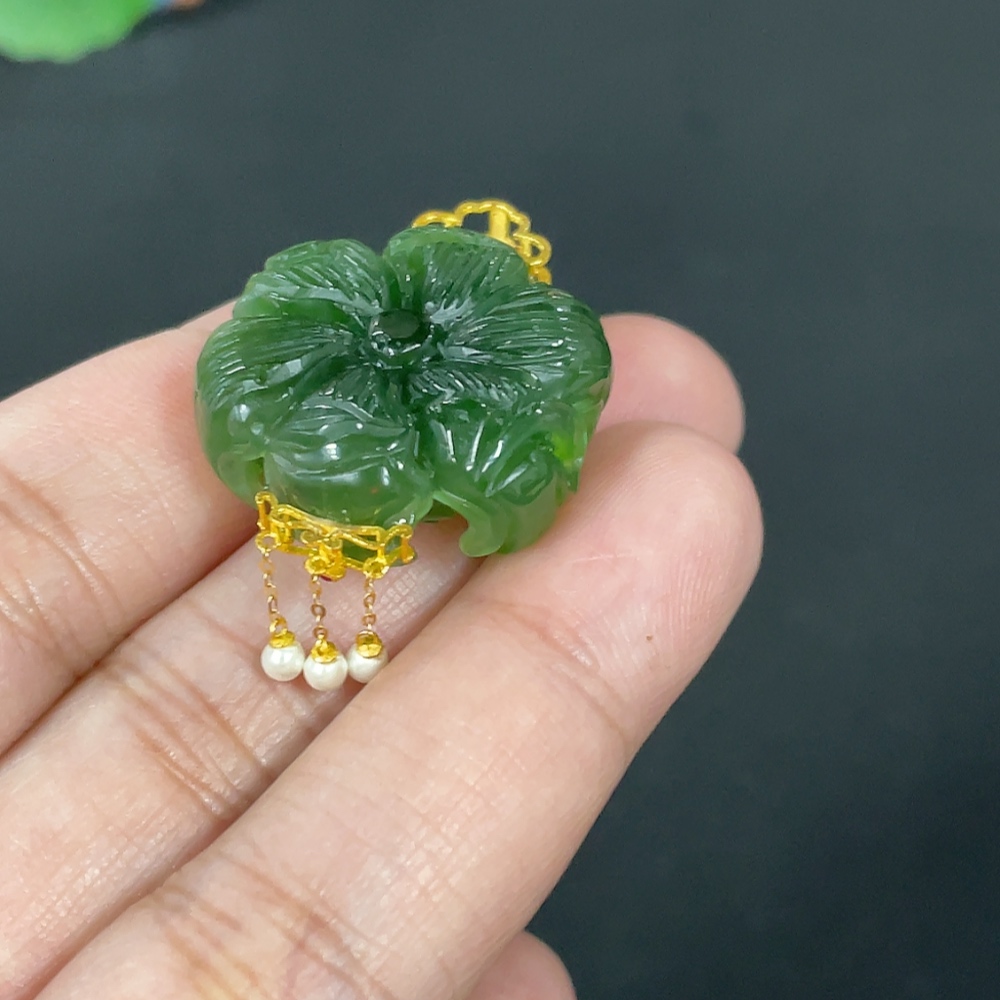 Hetian Jade Jasper Inlaid Pendant "Flourishing Wealth" Total Weight Approx. 10.8g Gold Content 71%