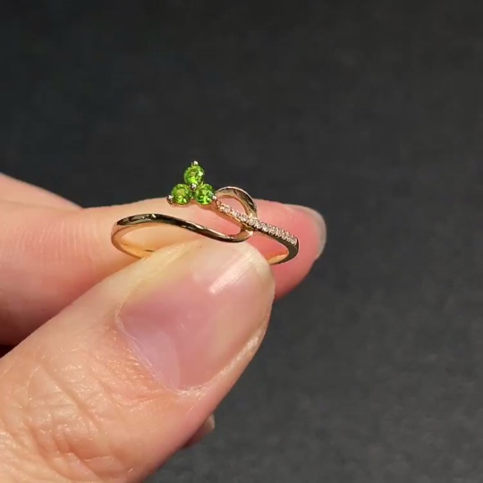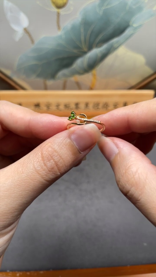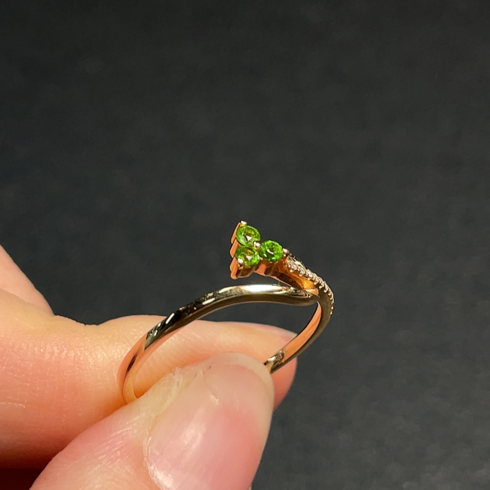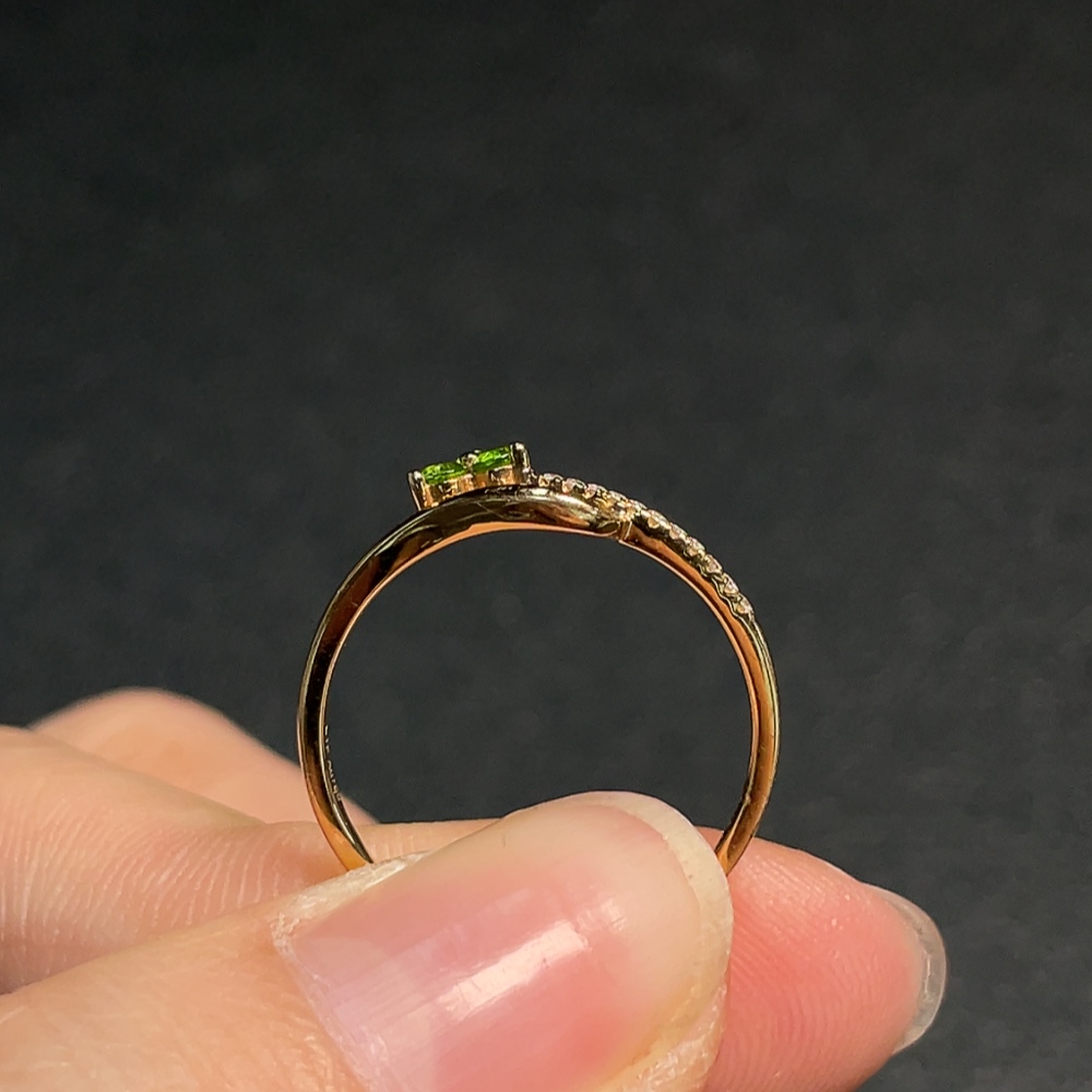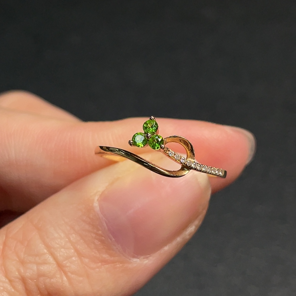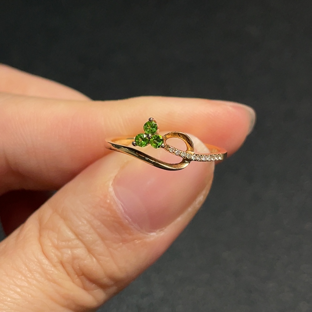 18K Diopside Ring with Diamond Accents, Total Weight Approx. 1.52g, Size 14