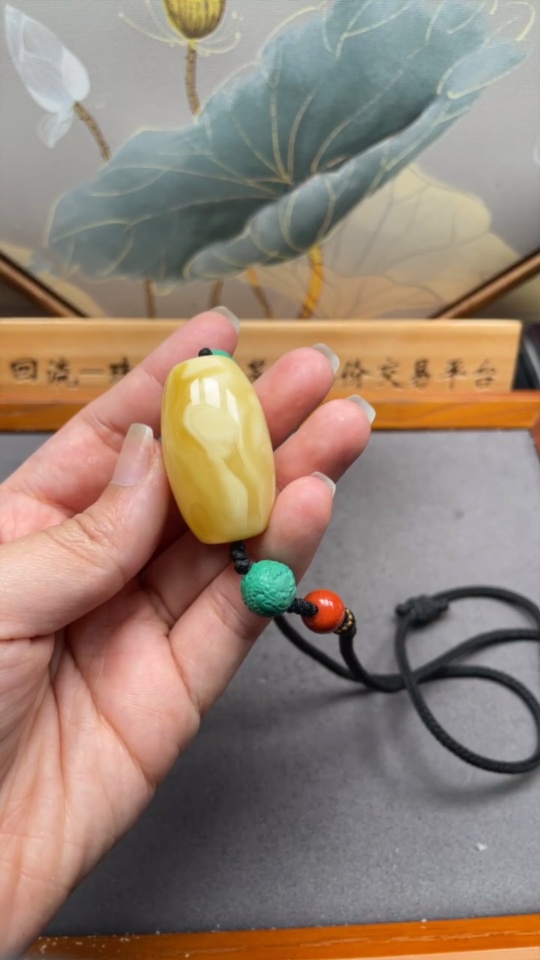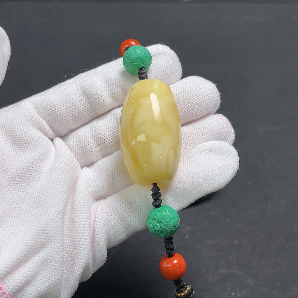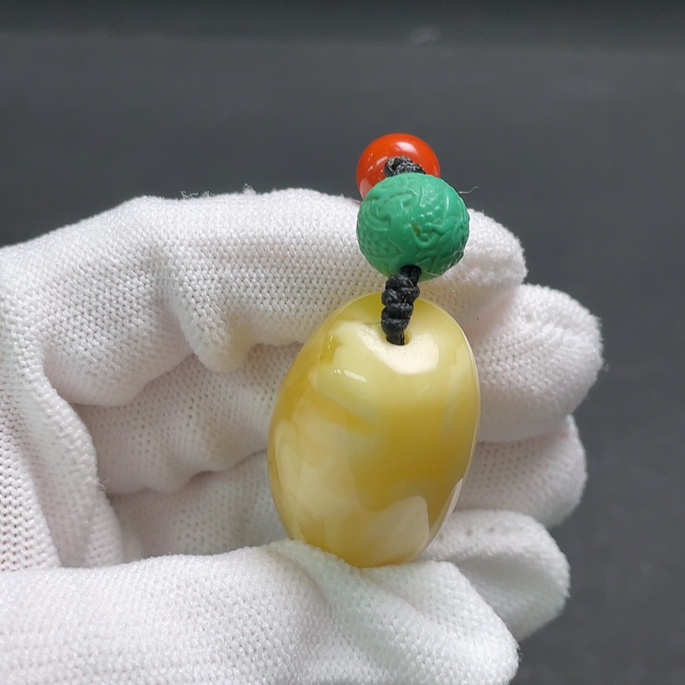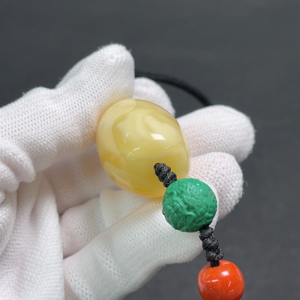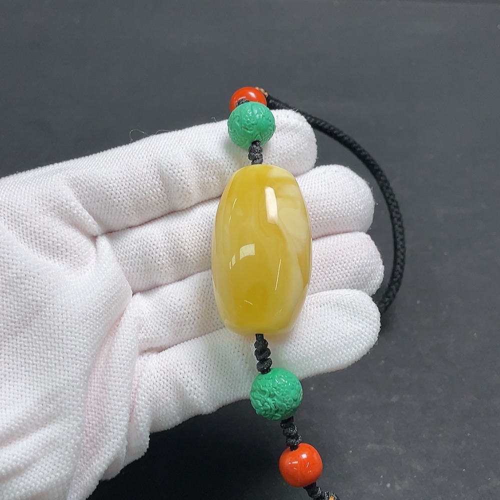 Amber Beeswax Pendant (non-natural inlaid stones) with cord, total weight approx. 24g, size about 22.2mm