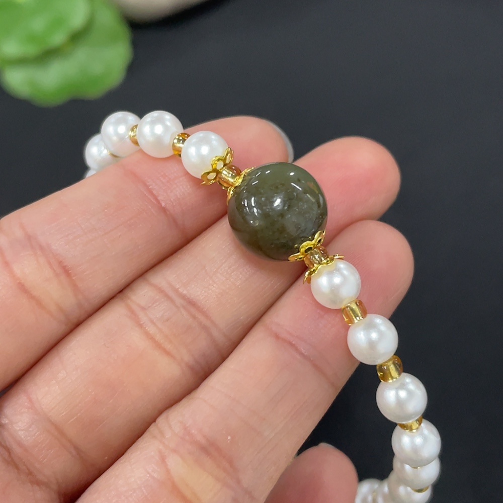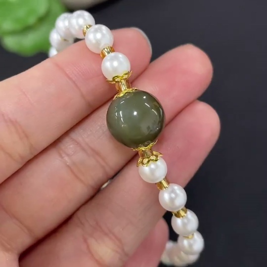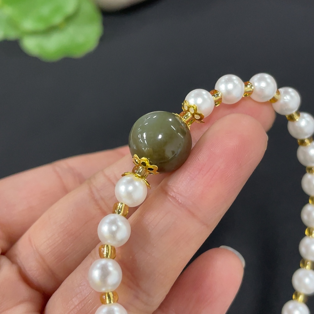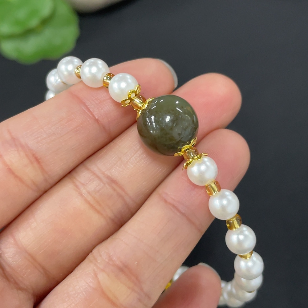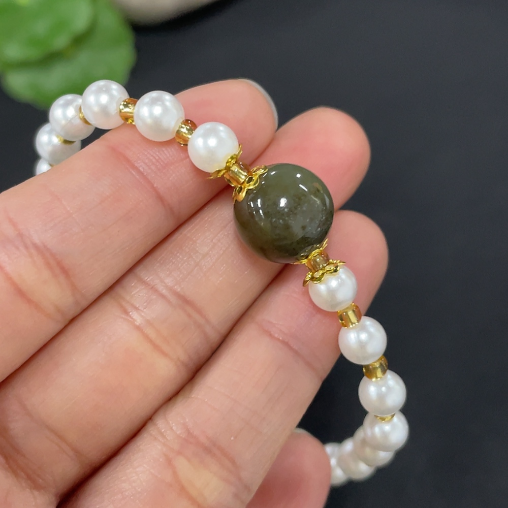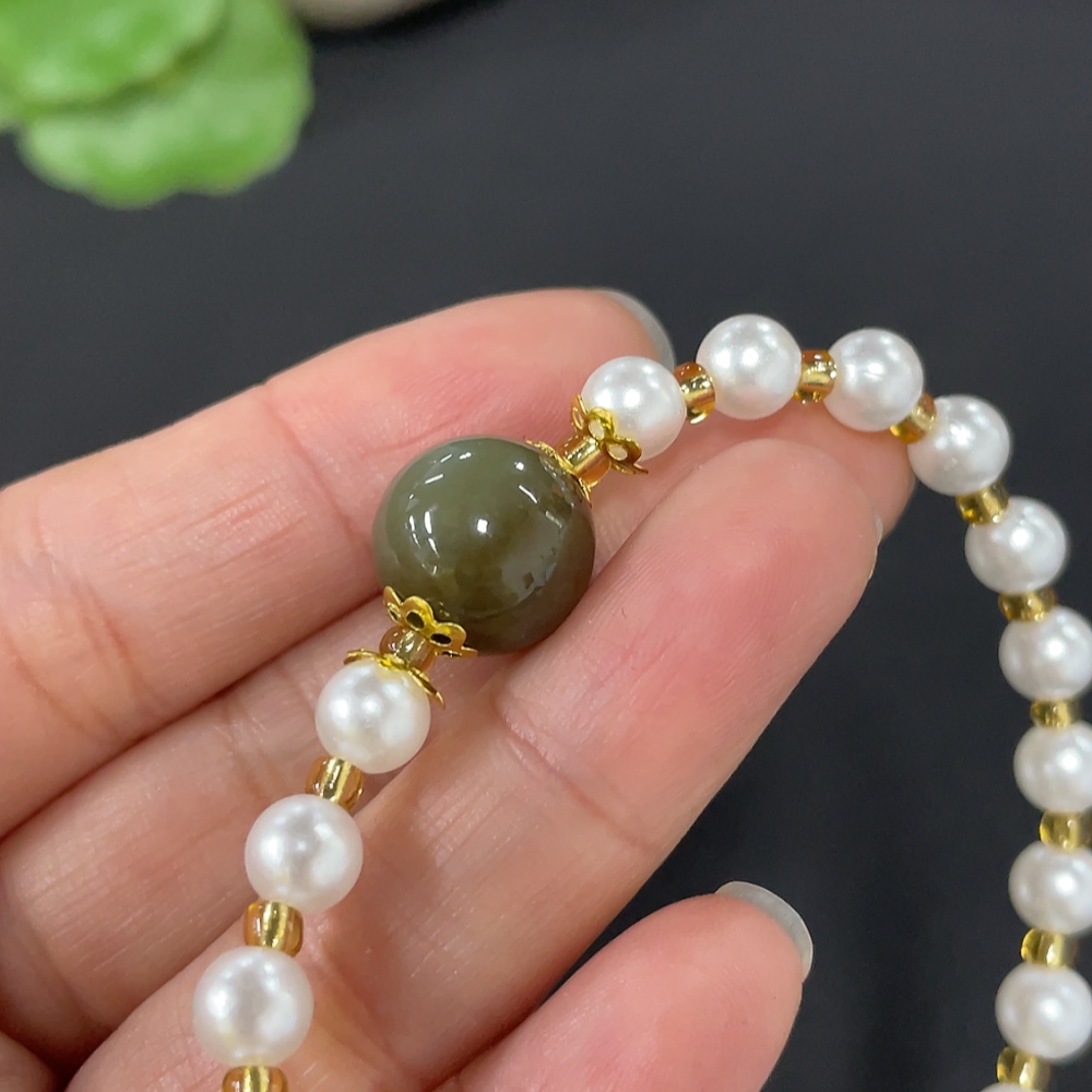 Hetian Jade Single Bead Bracelet, Approx. 11.7mm, Non-Gold Inlaid, Total Weight Approx. 5.8g, Chain Not Hetian Jade