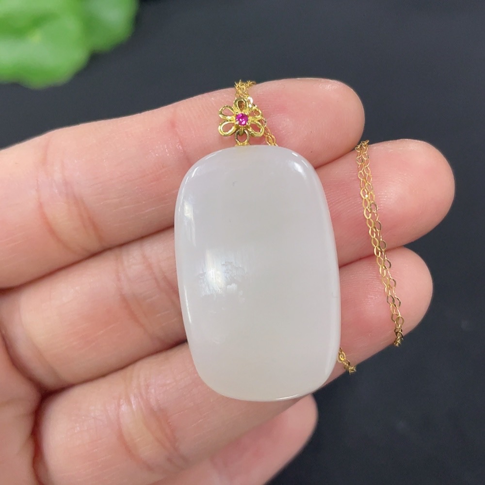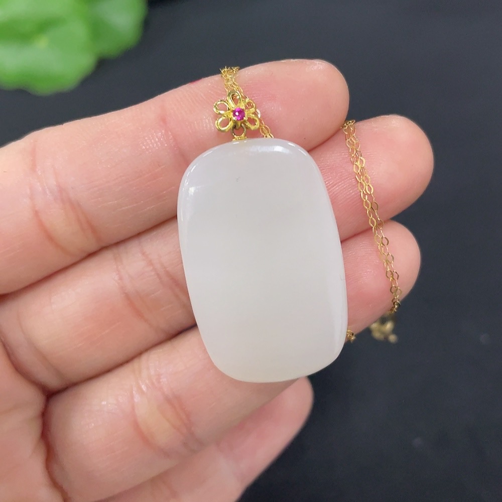 Hetian Jade Pendant Plain Pendant 18k Gold