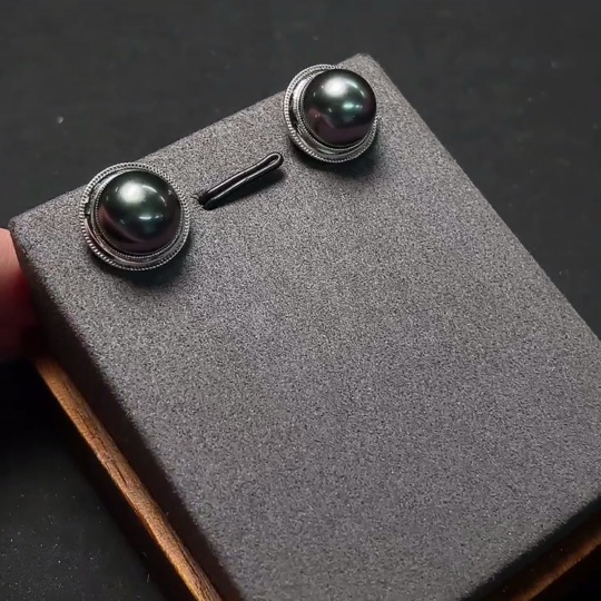 Seawater pearl earrings non-gold total weight about 6g size approx. 10.9mm