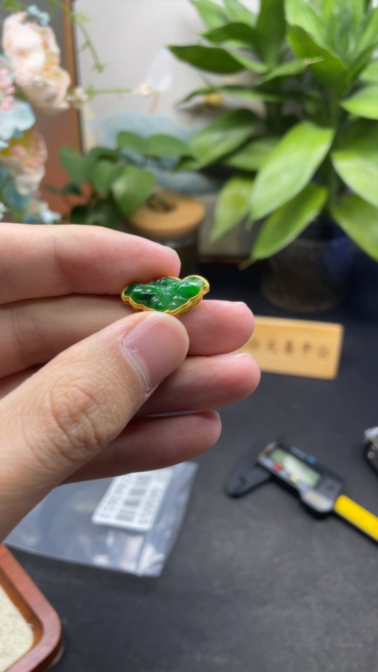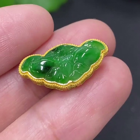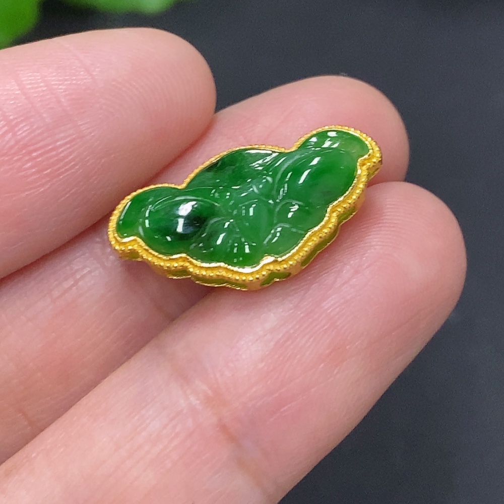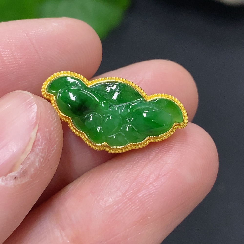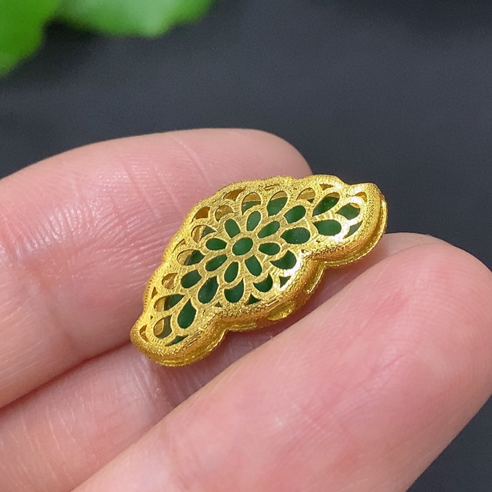 Jadeite Inlay Pendant (No Imprint, Gold Content Au75%) Total Weight Approx. 1.5g
