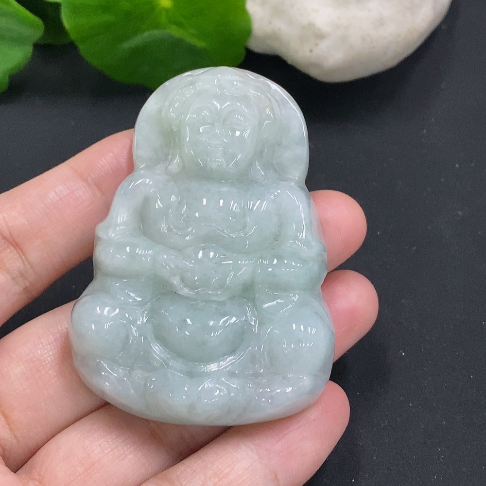 Jadeite Guanyin Pendant, Total Weight Approx. 63.7g