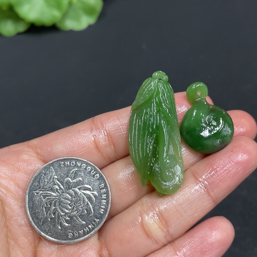 Hetian Jade Pendant - Magnolia Flower + Antique-style Piece, Total Weight Approx. 10.6g
