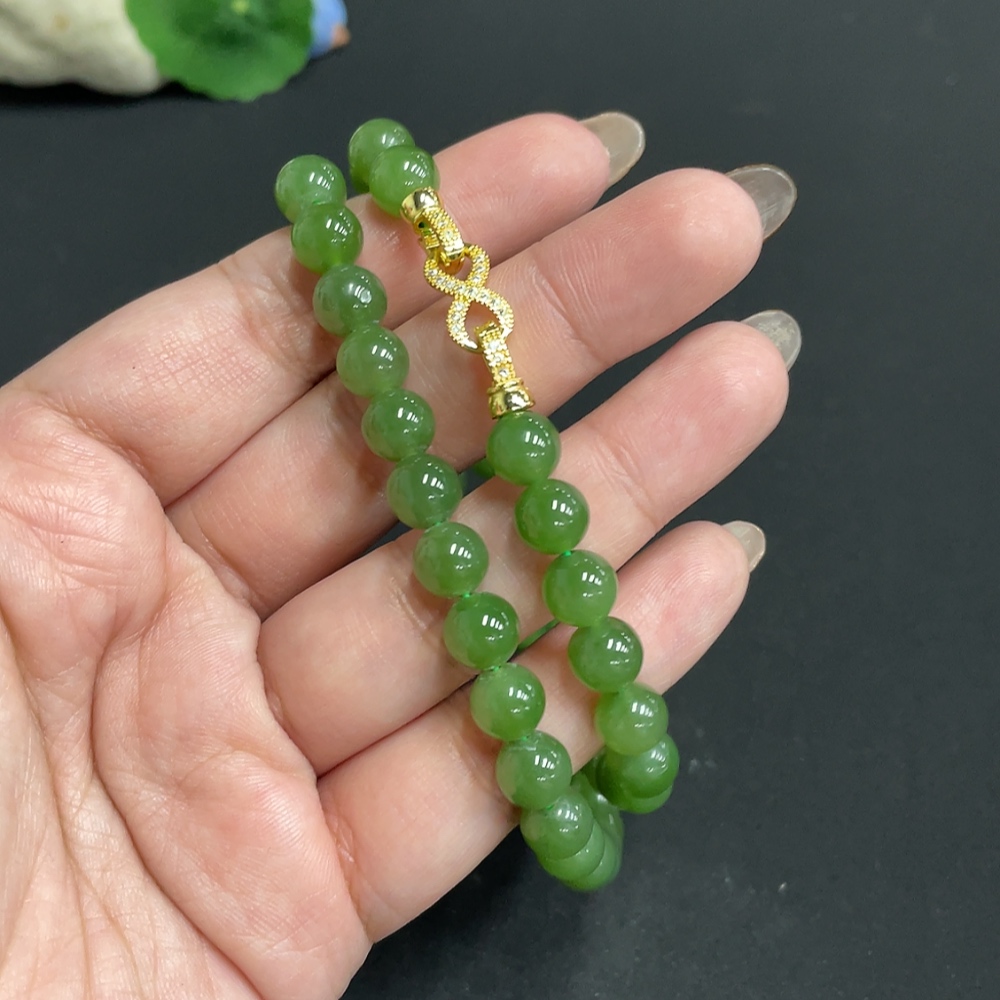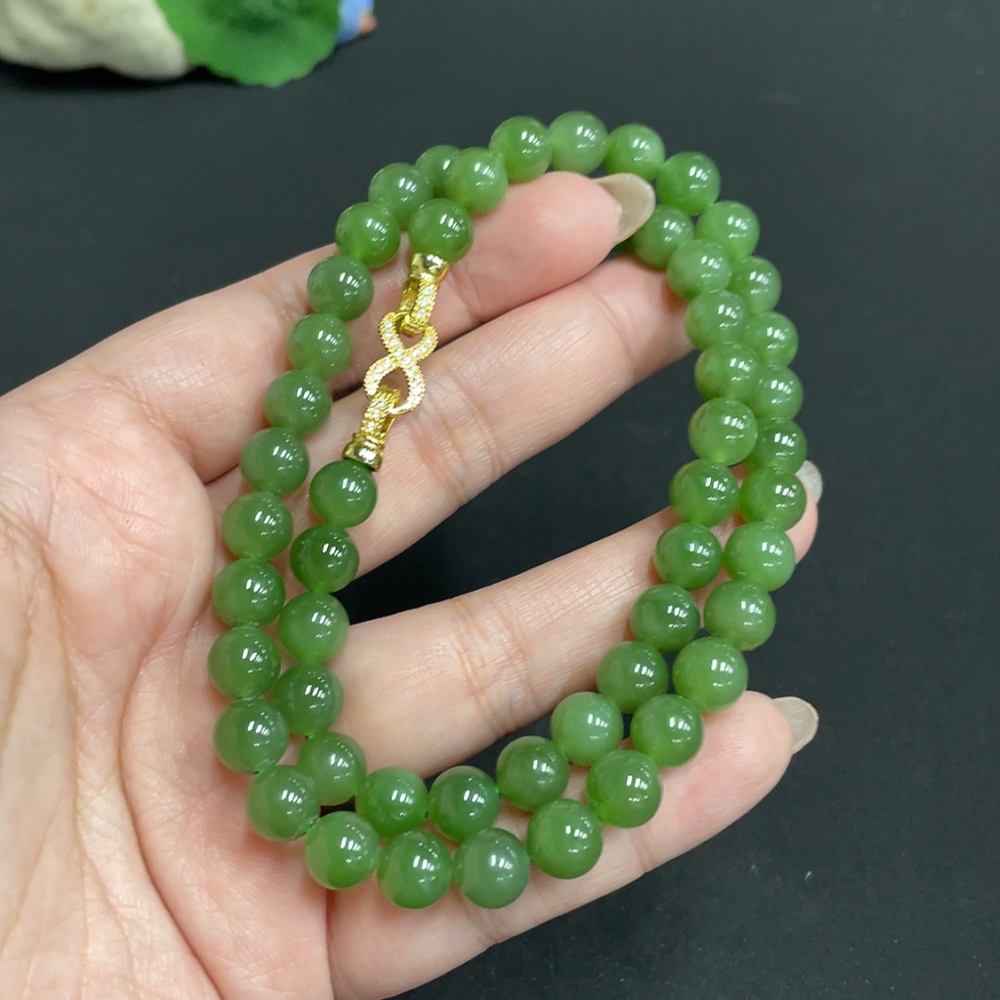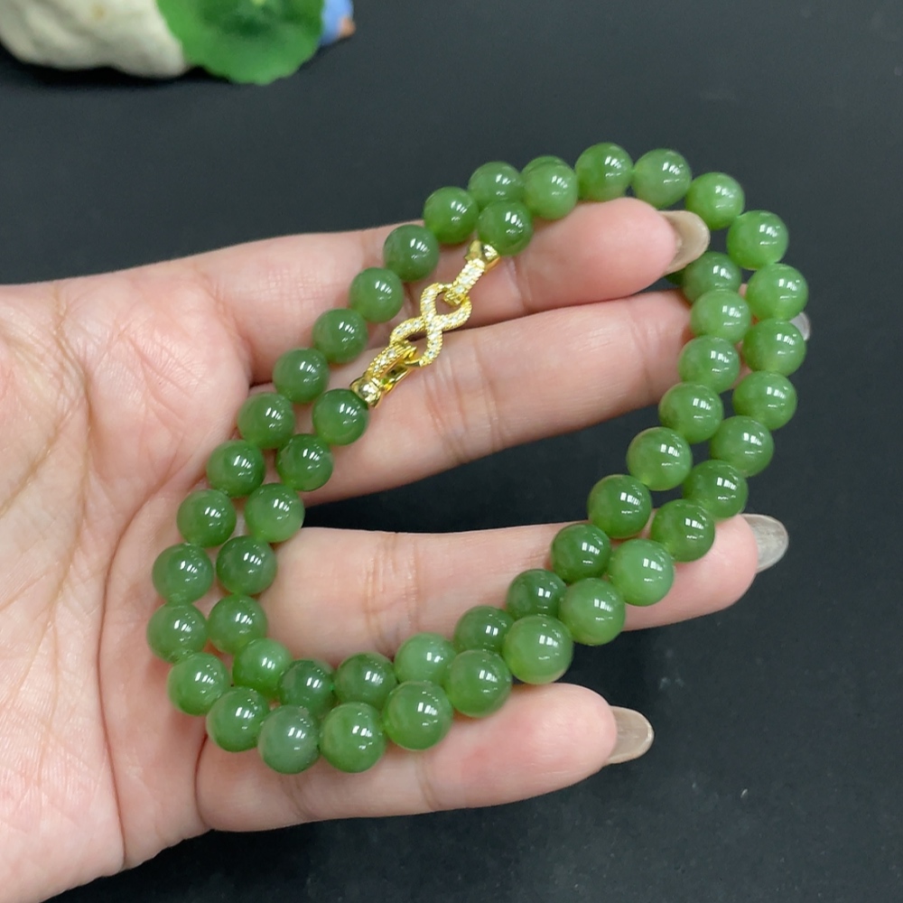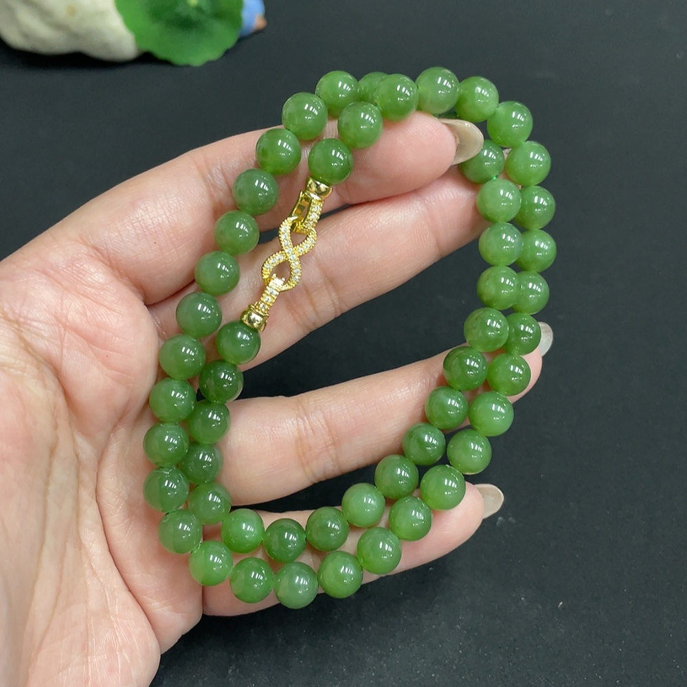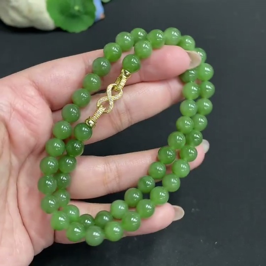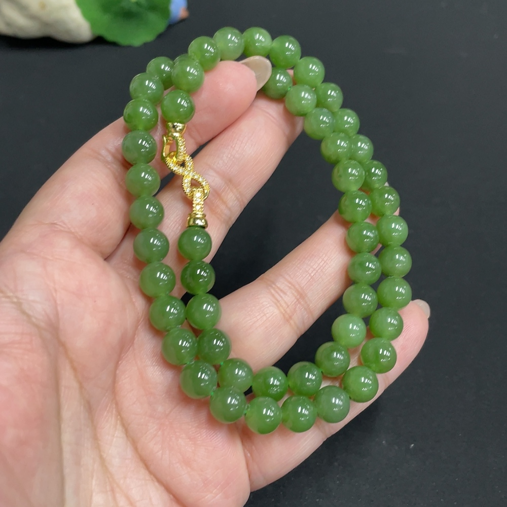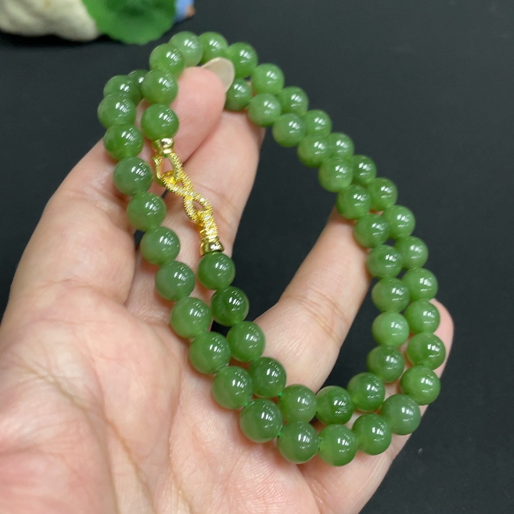 Hetian Jade Beaded Necklace, Approx. 7.6mm, Non-Gold, Total Weight Approx. 43.3g