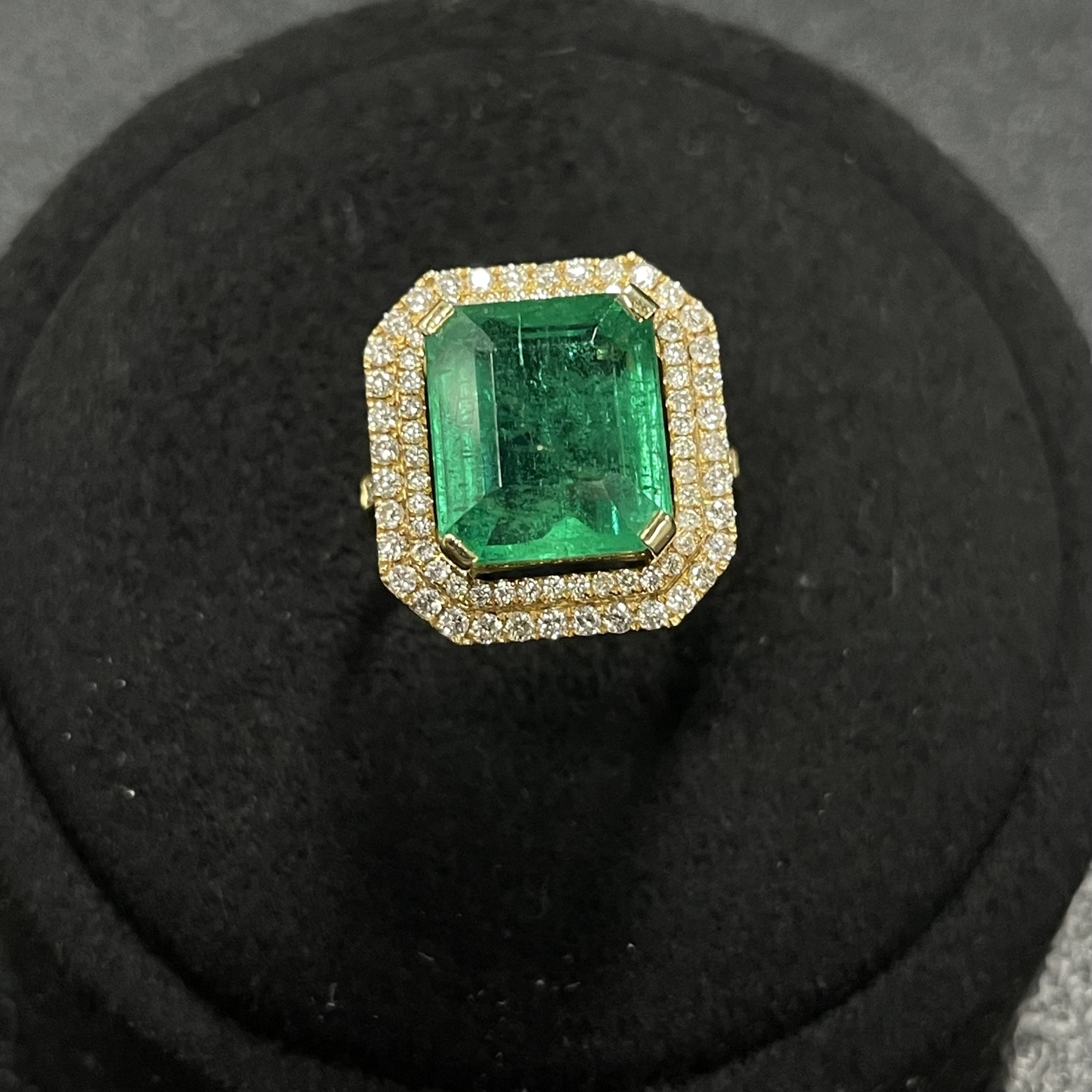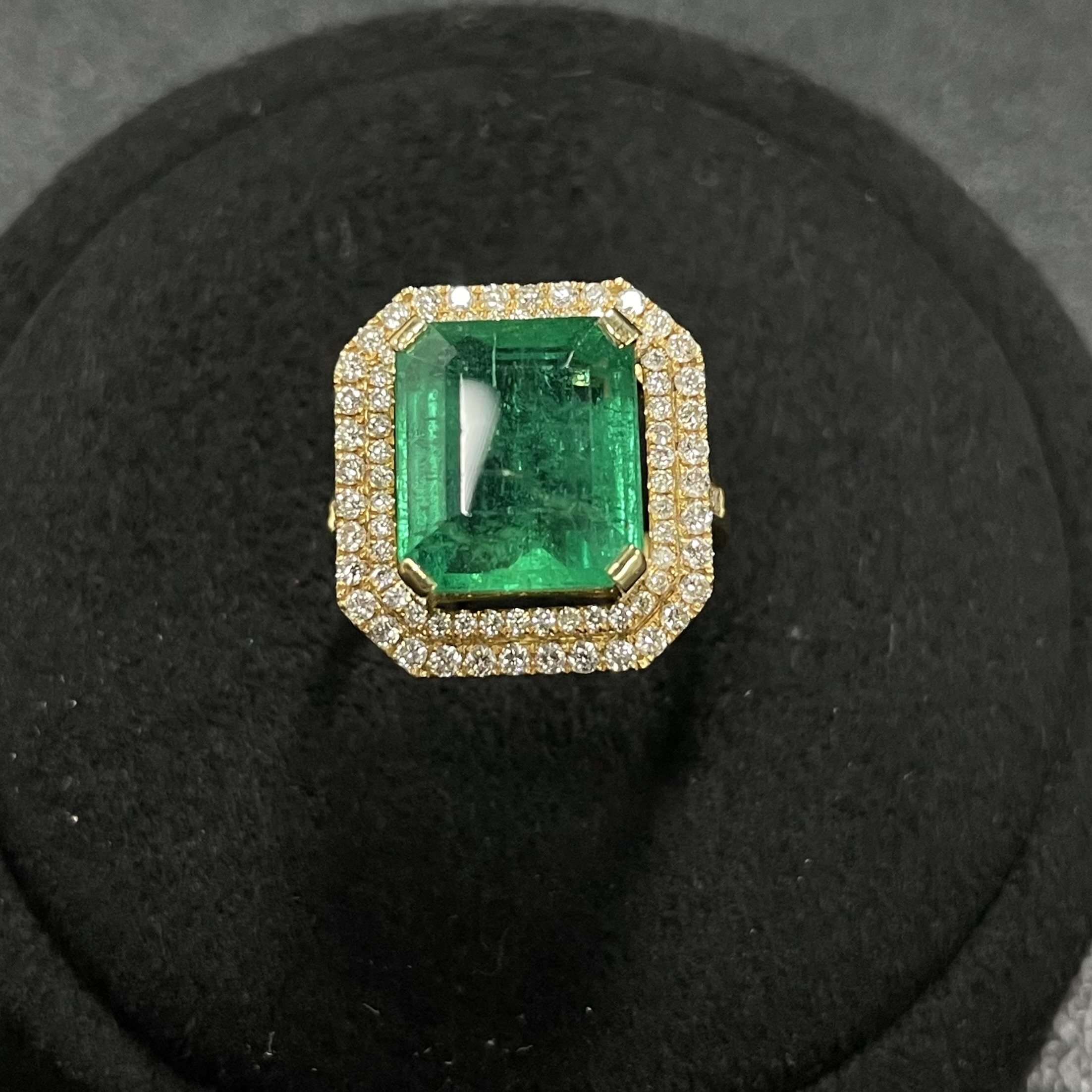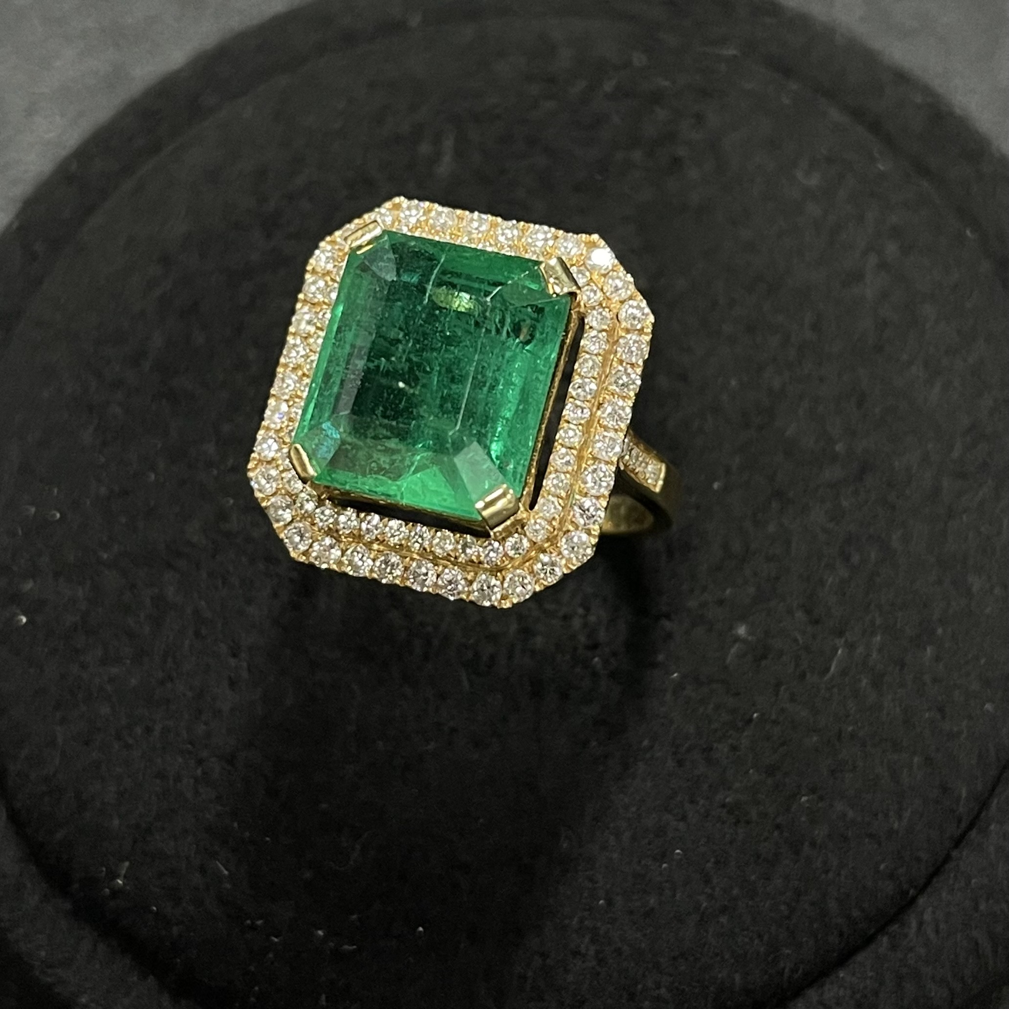 Trezaar - 18K Emerald Ring, Clarity Enhanced, Accented with Diamonds, Total Weight Approx. 5.15g, Size 11