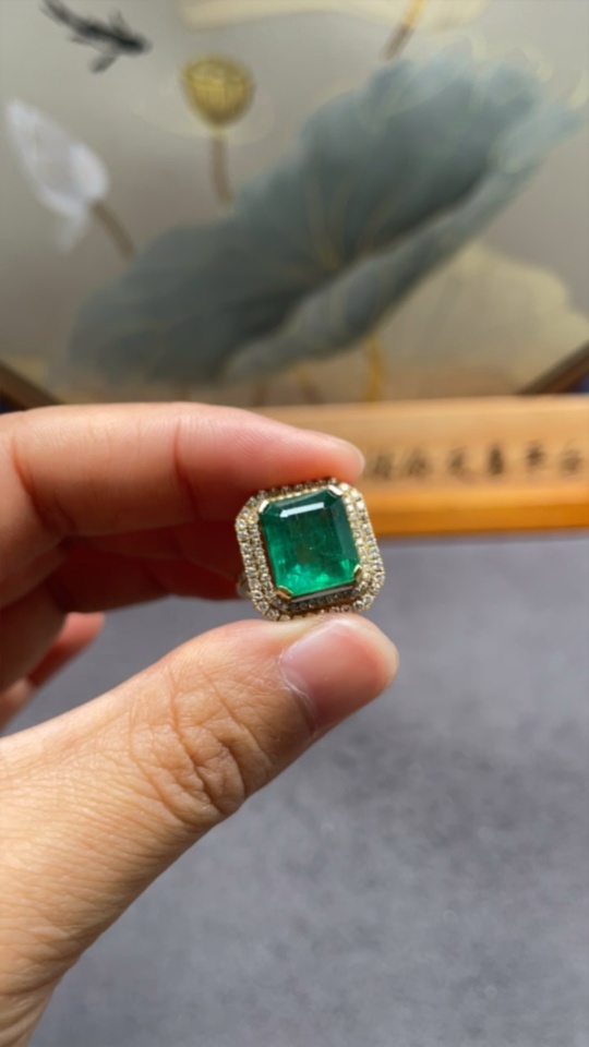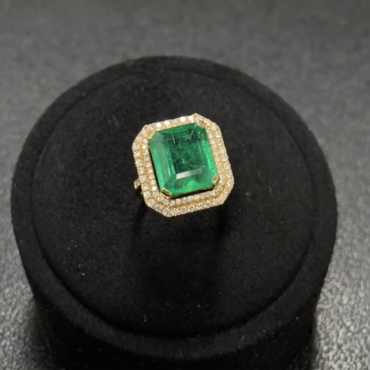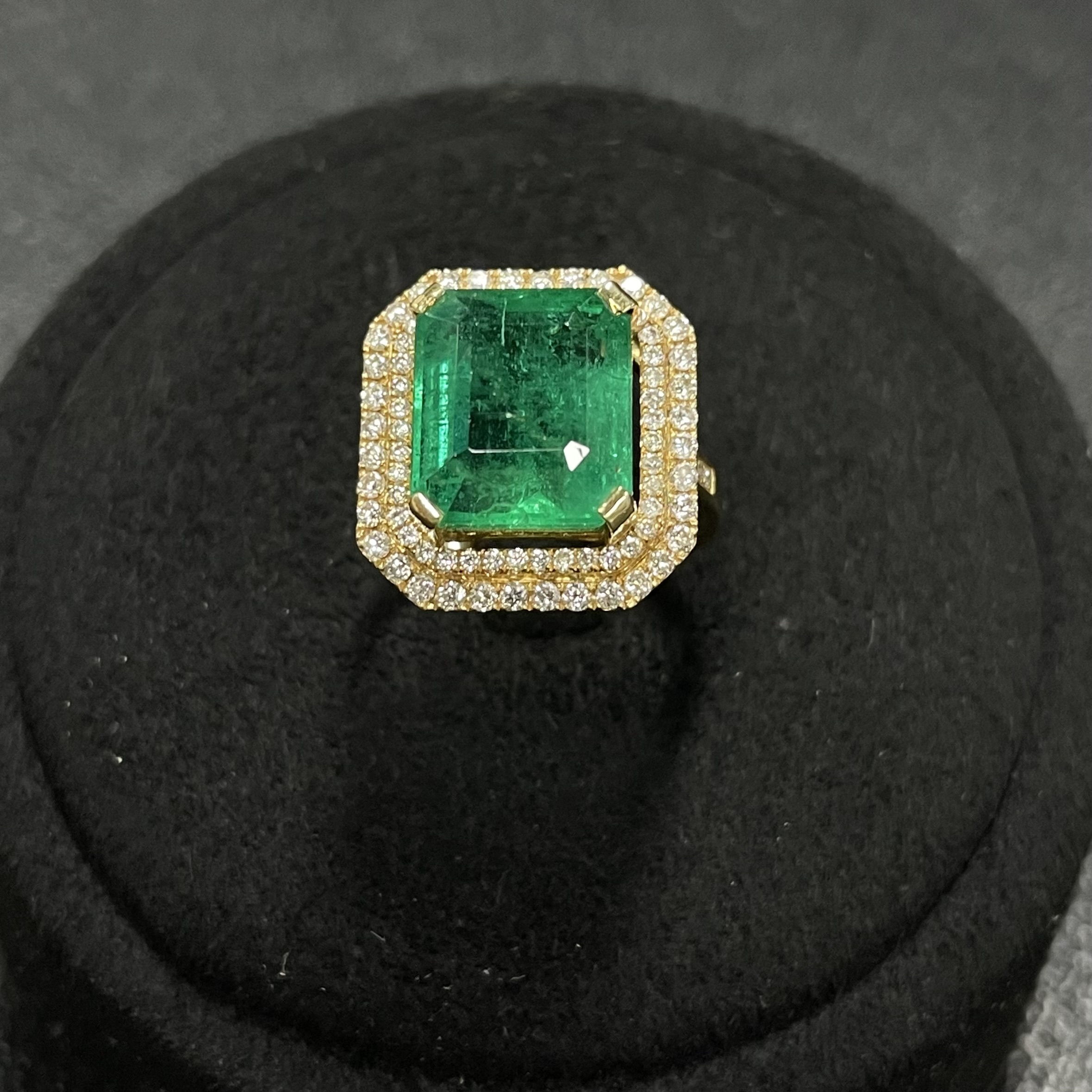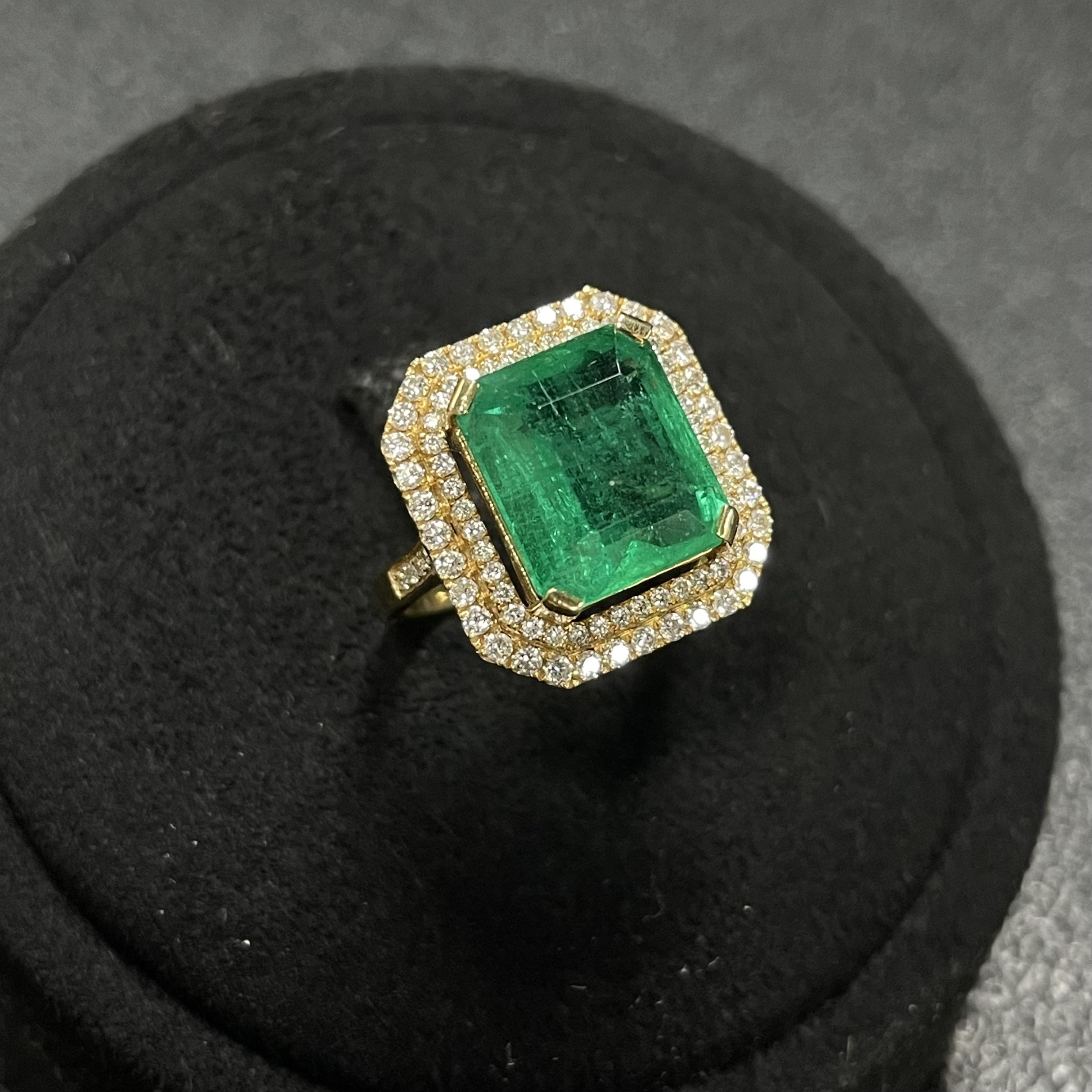 Trezaar - 18K Emerald Ring, Clarity Enhanced, Accented with Diamonds, Total Weight Approx. 5.15g, Size 11