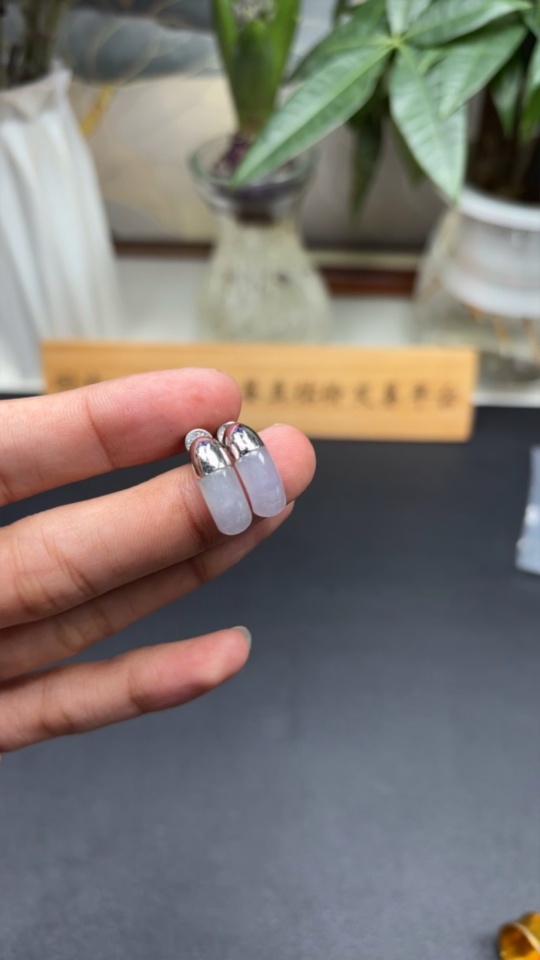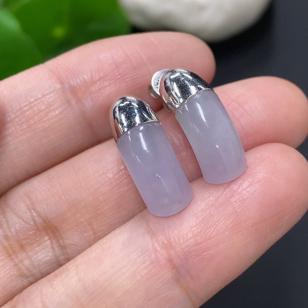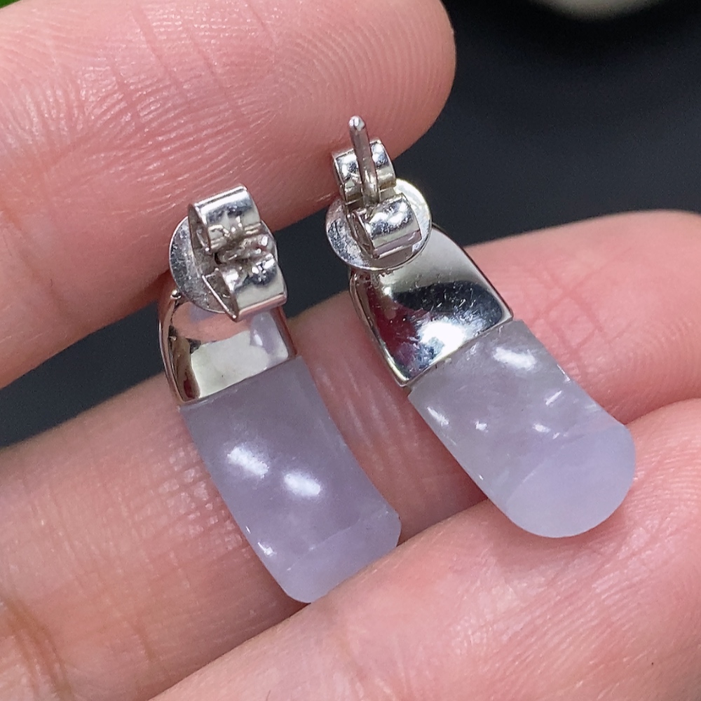 Jadeite ear studs with 18K gold mounting, total weight approximately 4.2g