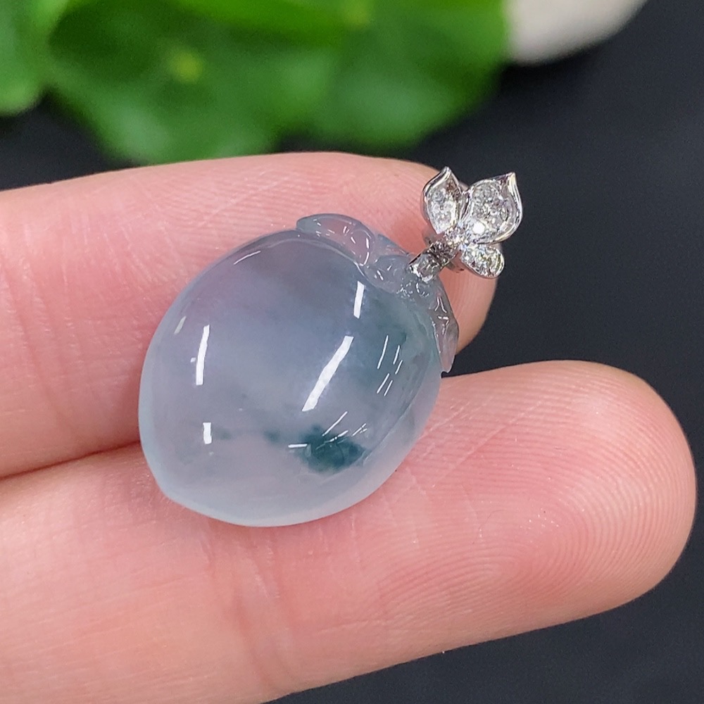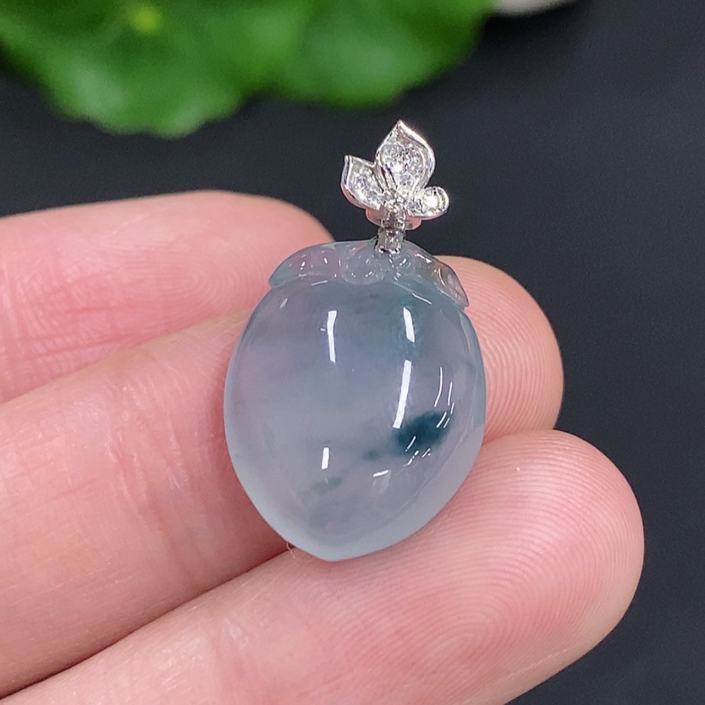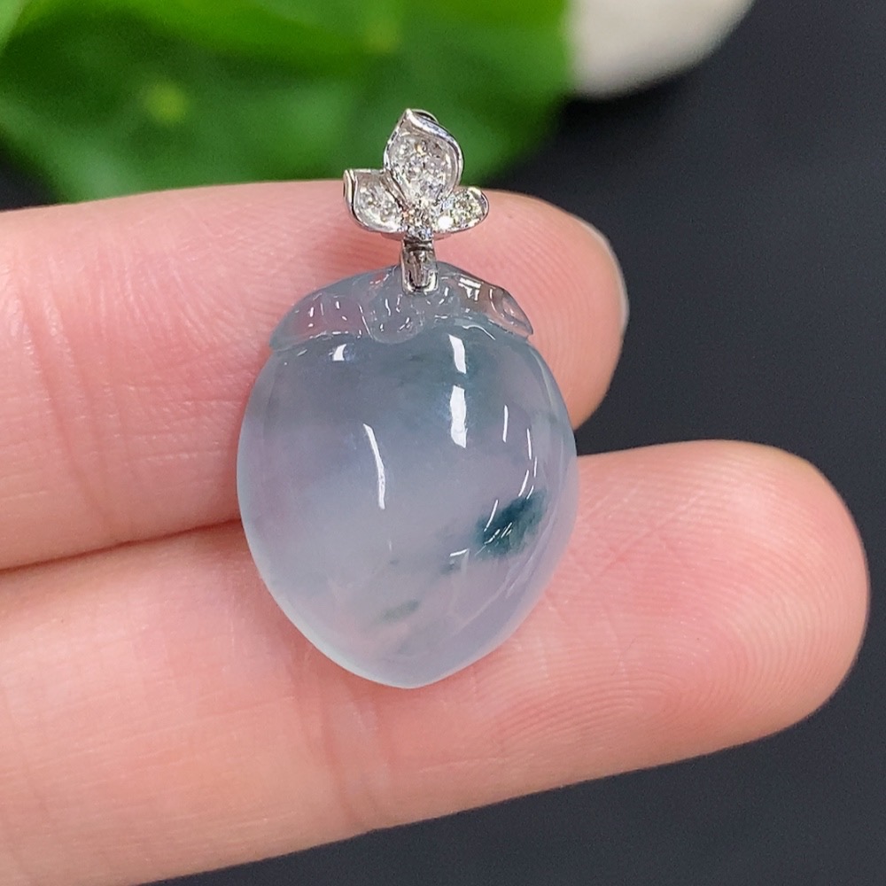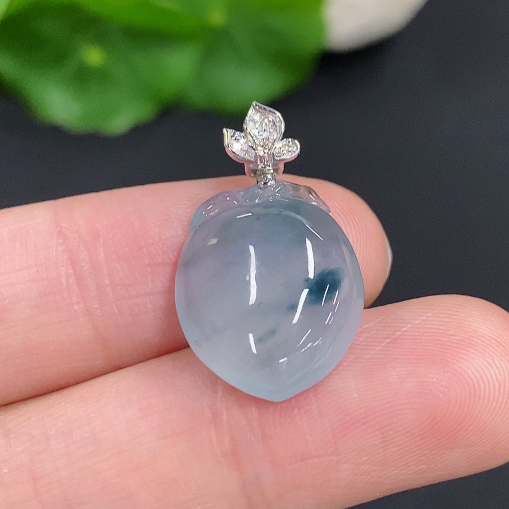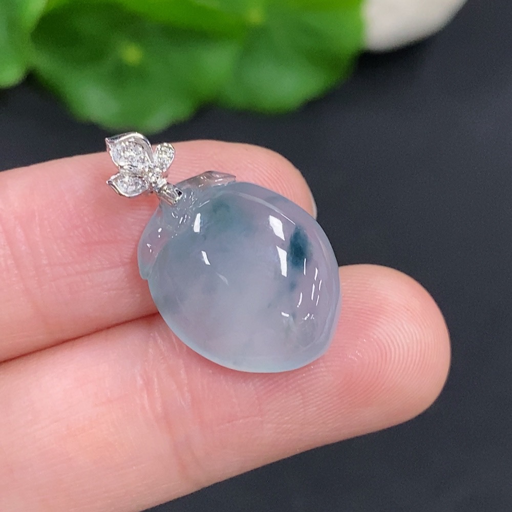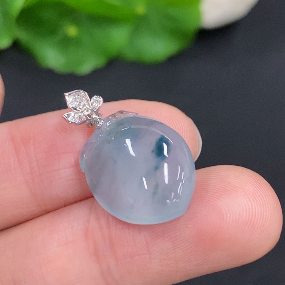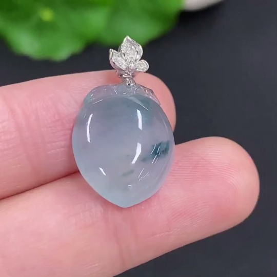 Jadeite Peach Pendant with 18K Gold Clasp, Total Weight Approximately 3.5g