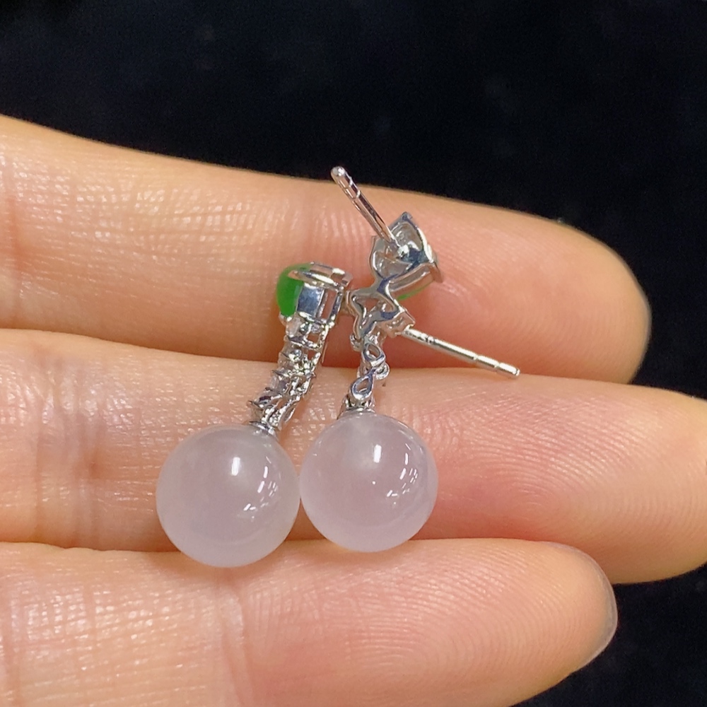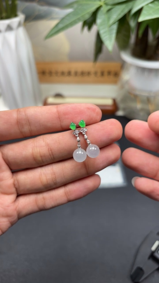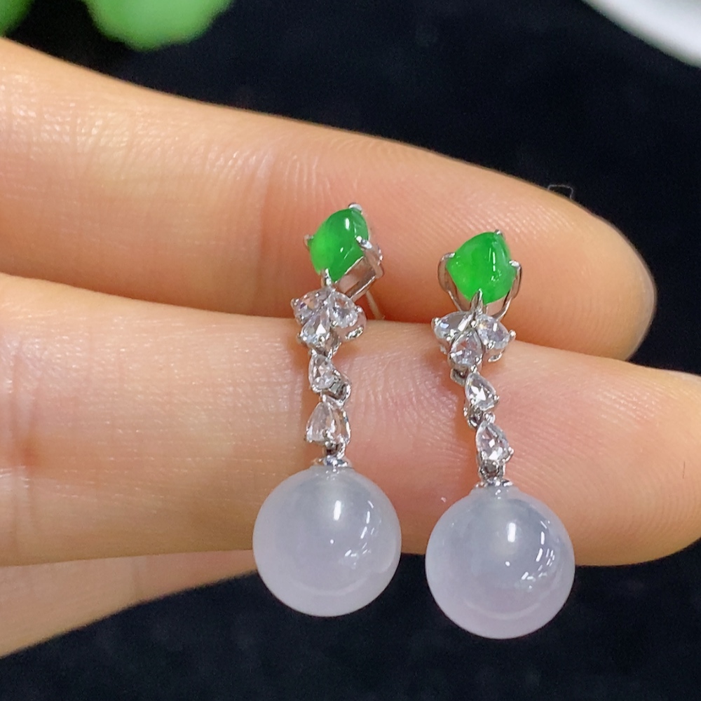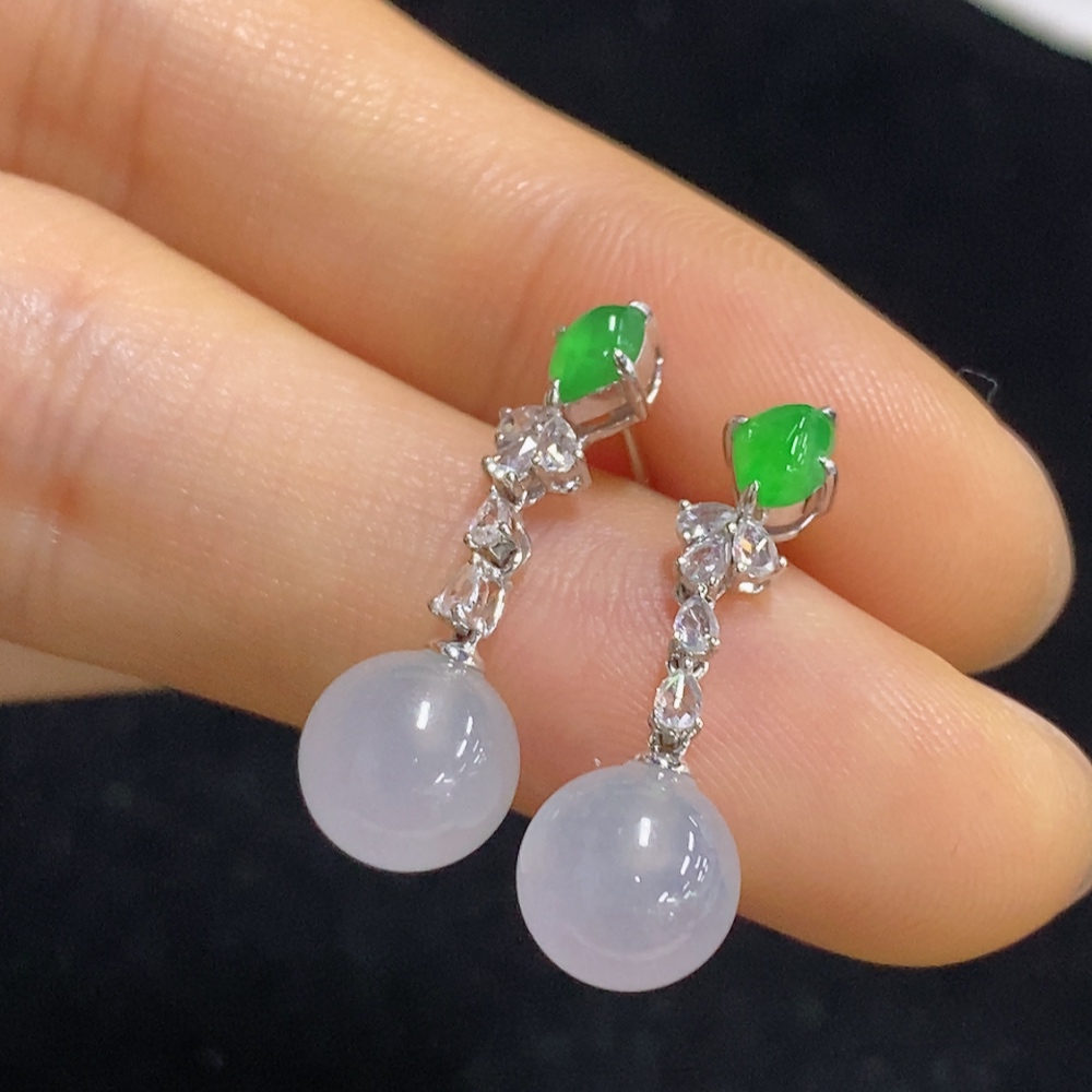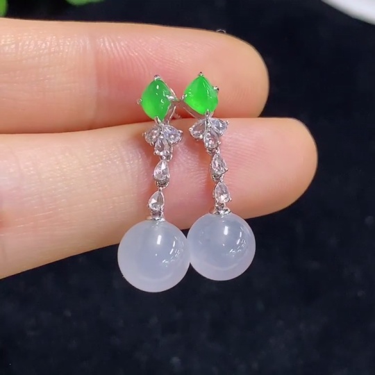 Jadeite earrings set in 18k gold with diamond accents, total product weight approximately 3.32g