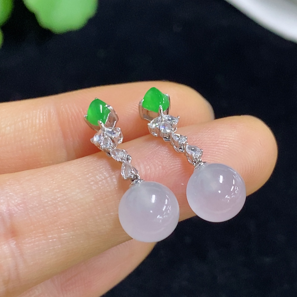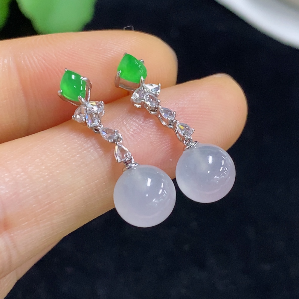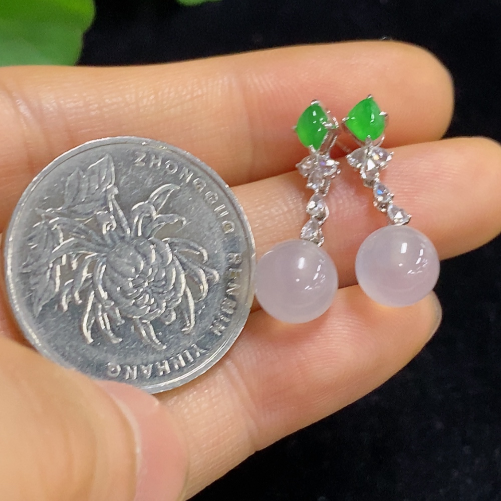 Jadeite earrings set in 18k gold with diamond accents, total product weight approximately 3.32g