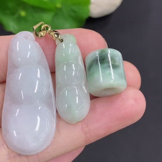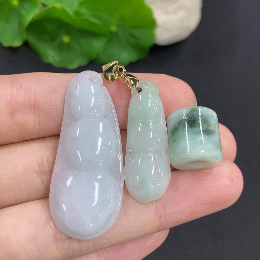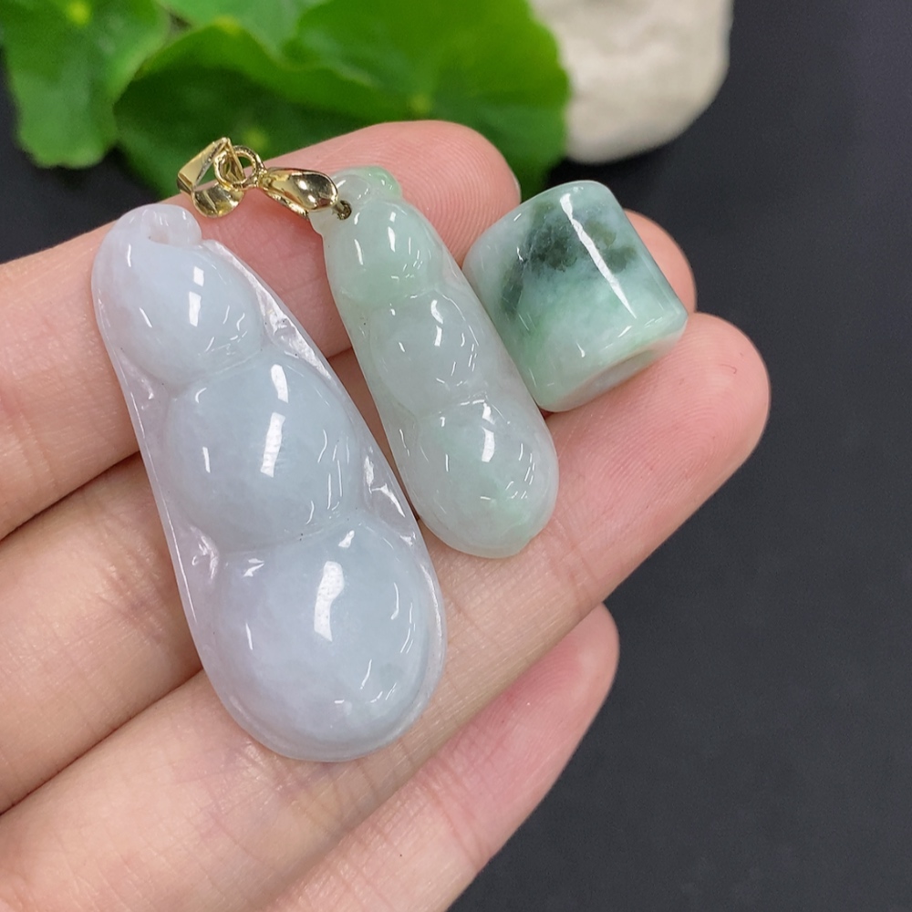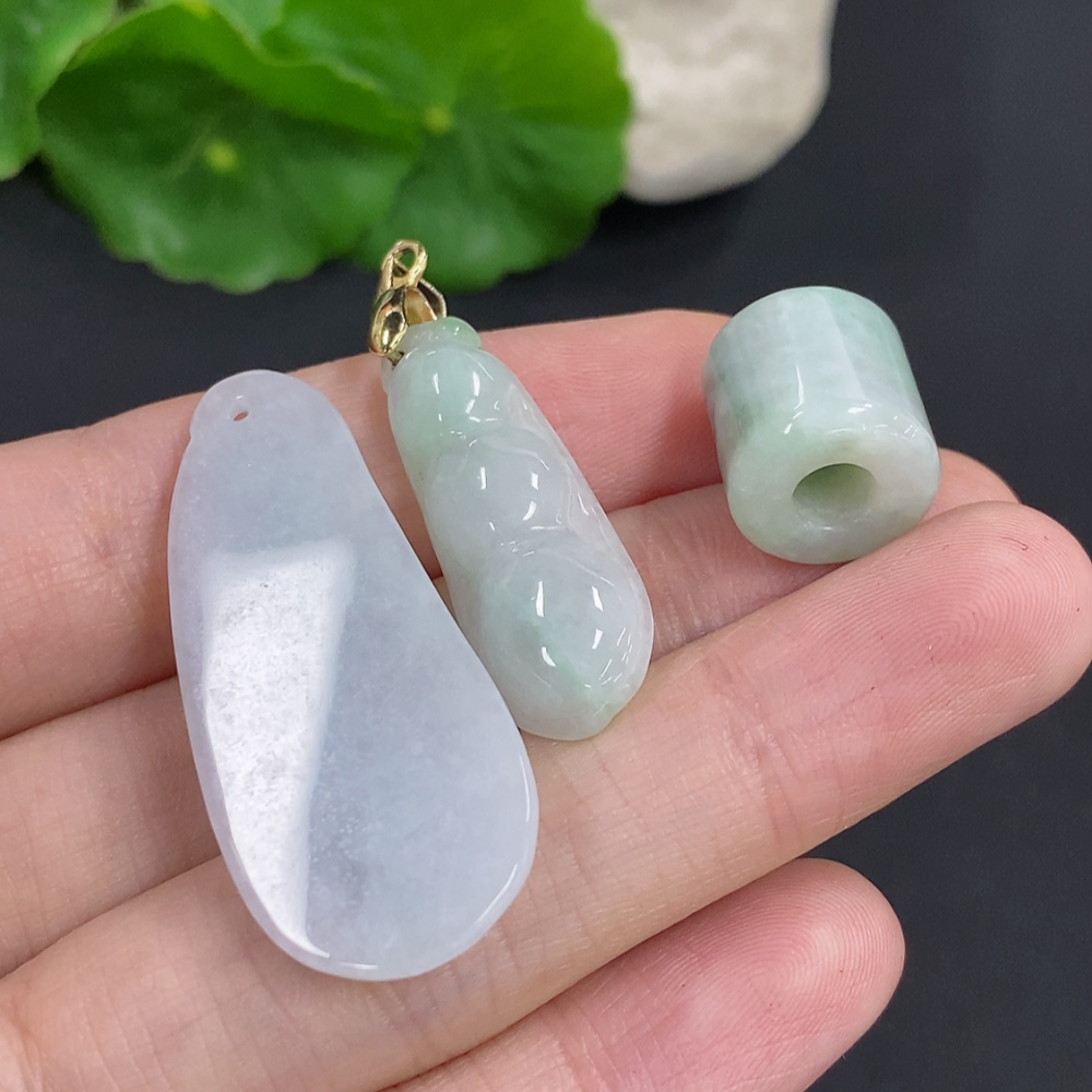 Jadeite Pendant with Barrel Beads Sell as a Lot Non-Gold Inlaid