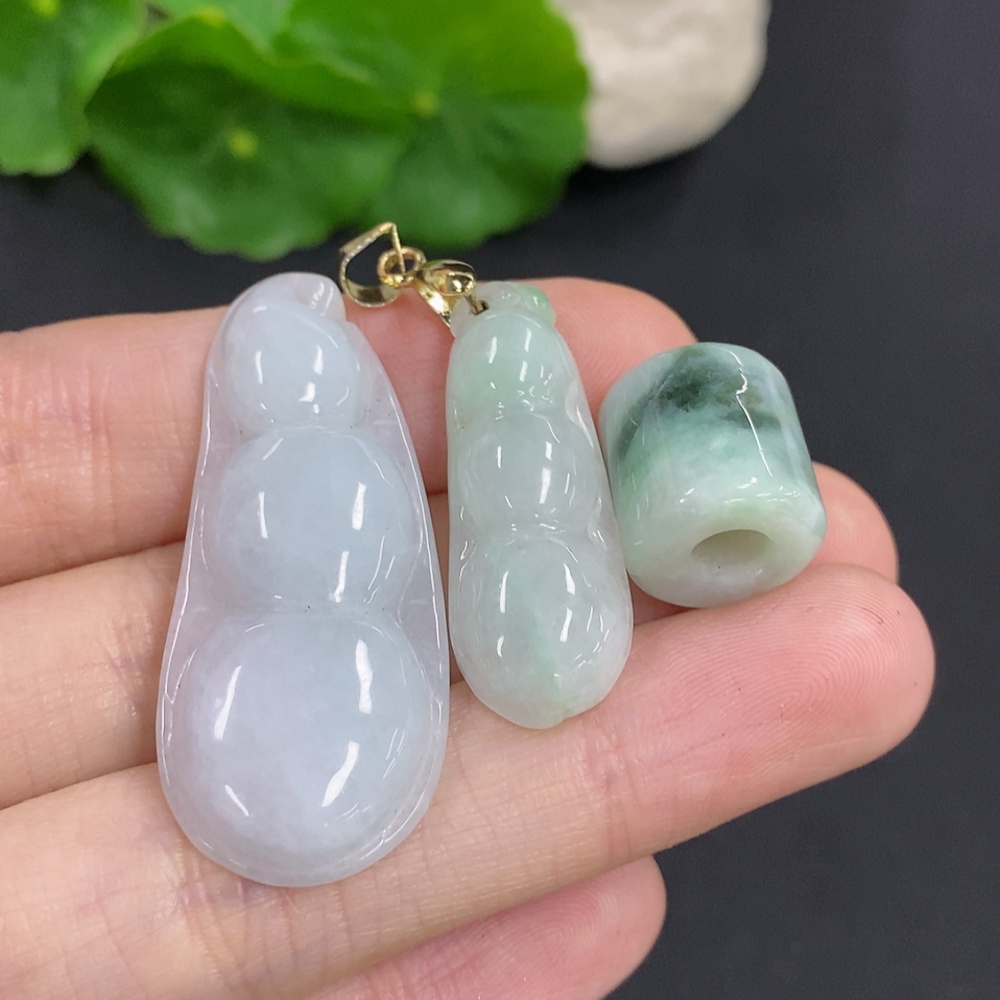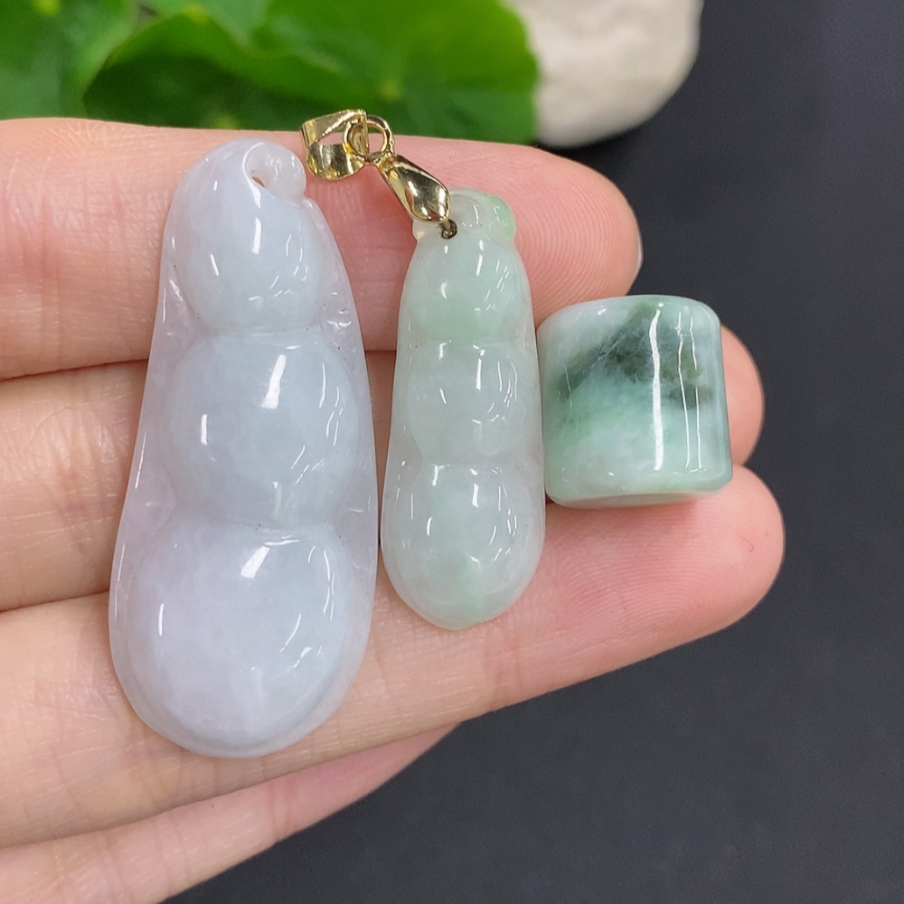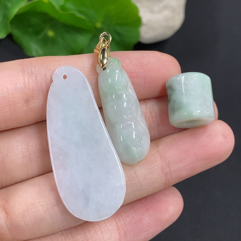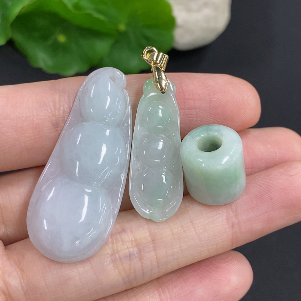 Jadeite Pendant with Barrel Beads Sell as a Lot Non-Gold Inlaid