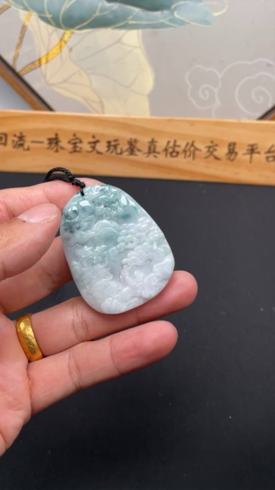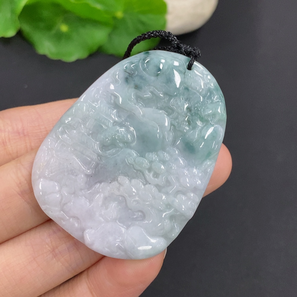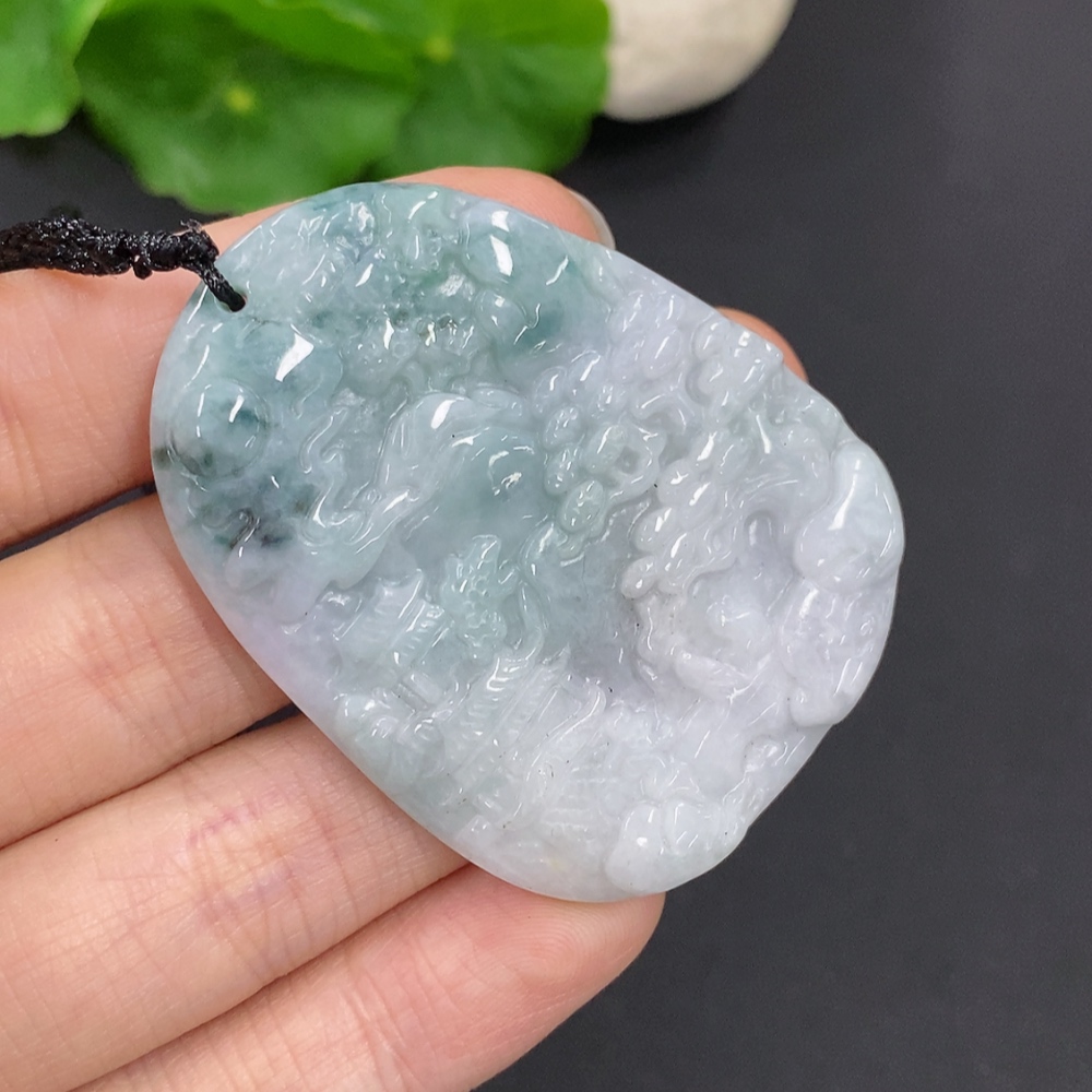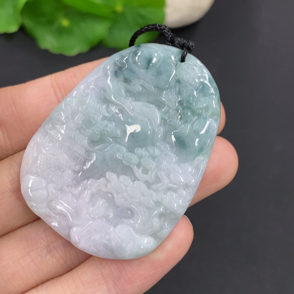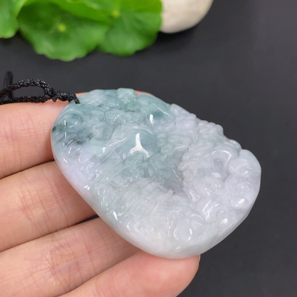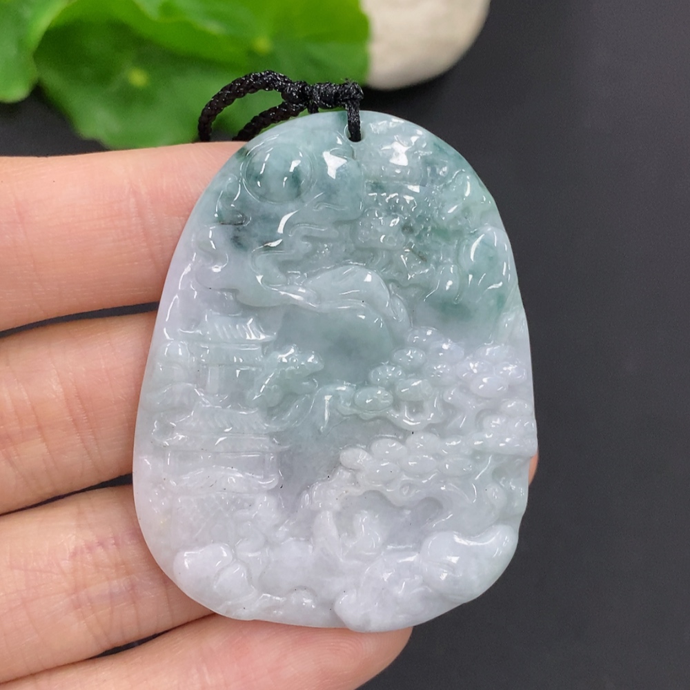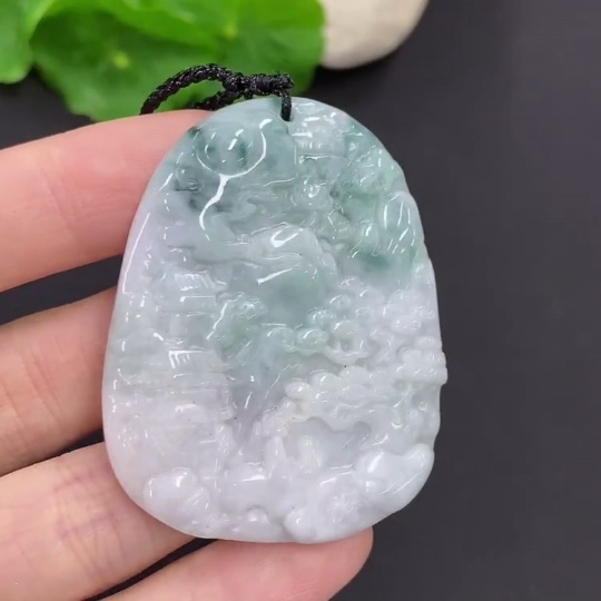 Jadeite Landscape Pendant with Cord, Total Weight Approx. 28.3g