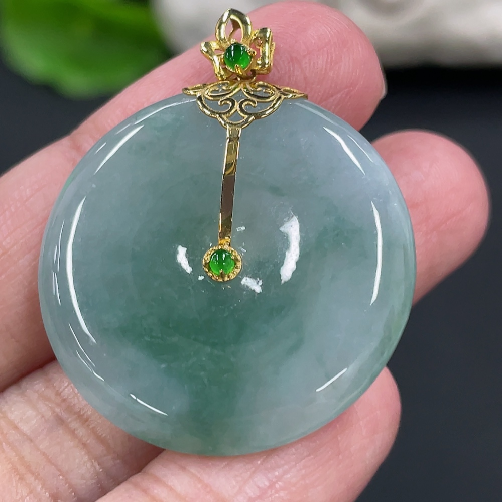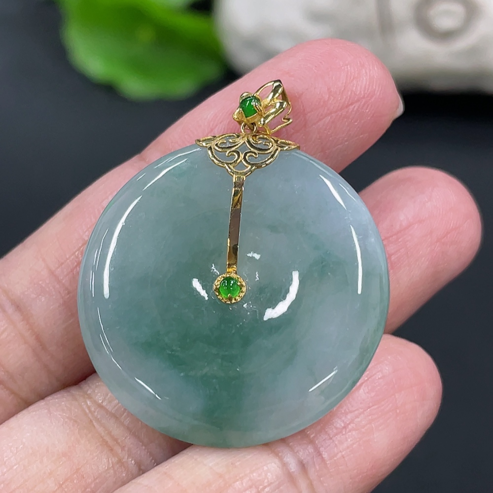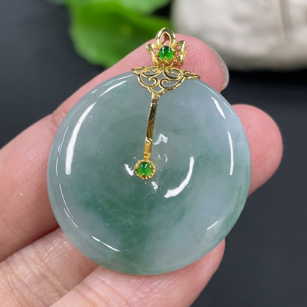Jadeite Peace Knot Pendant, Total Weight Approx. 9.4g, 18K Gold Clasp