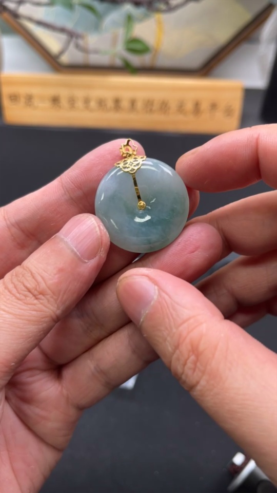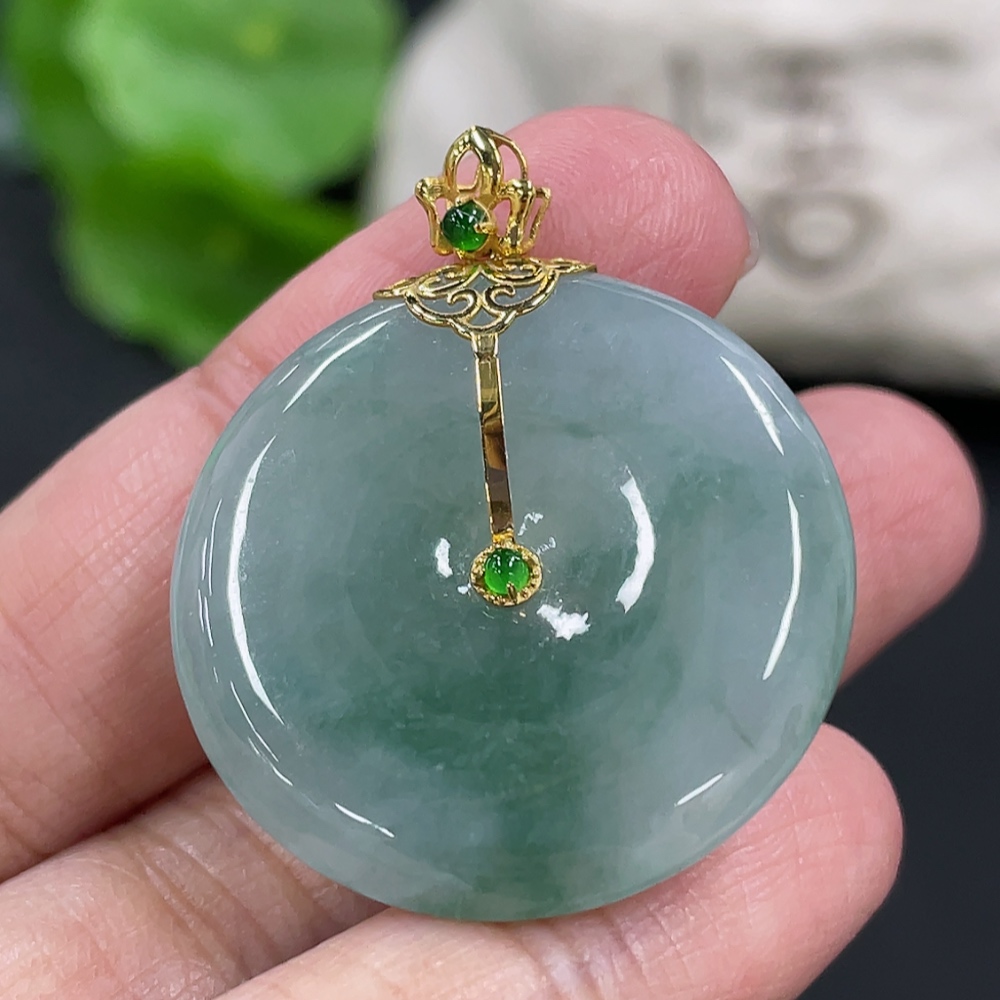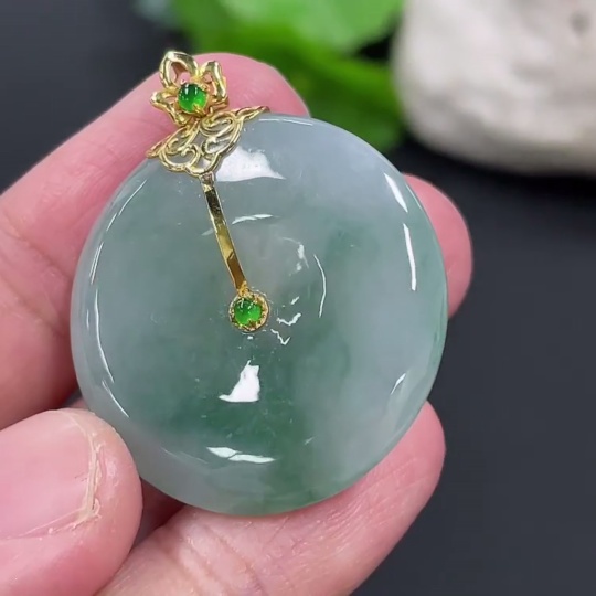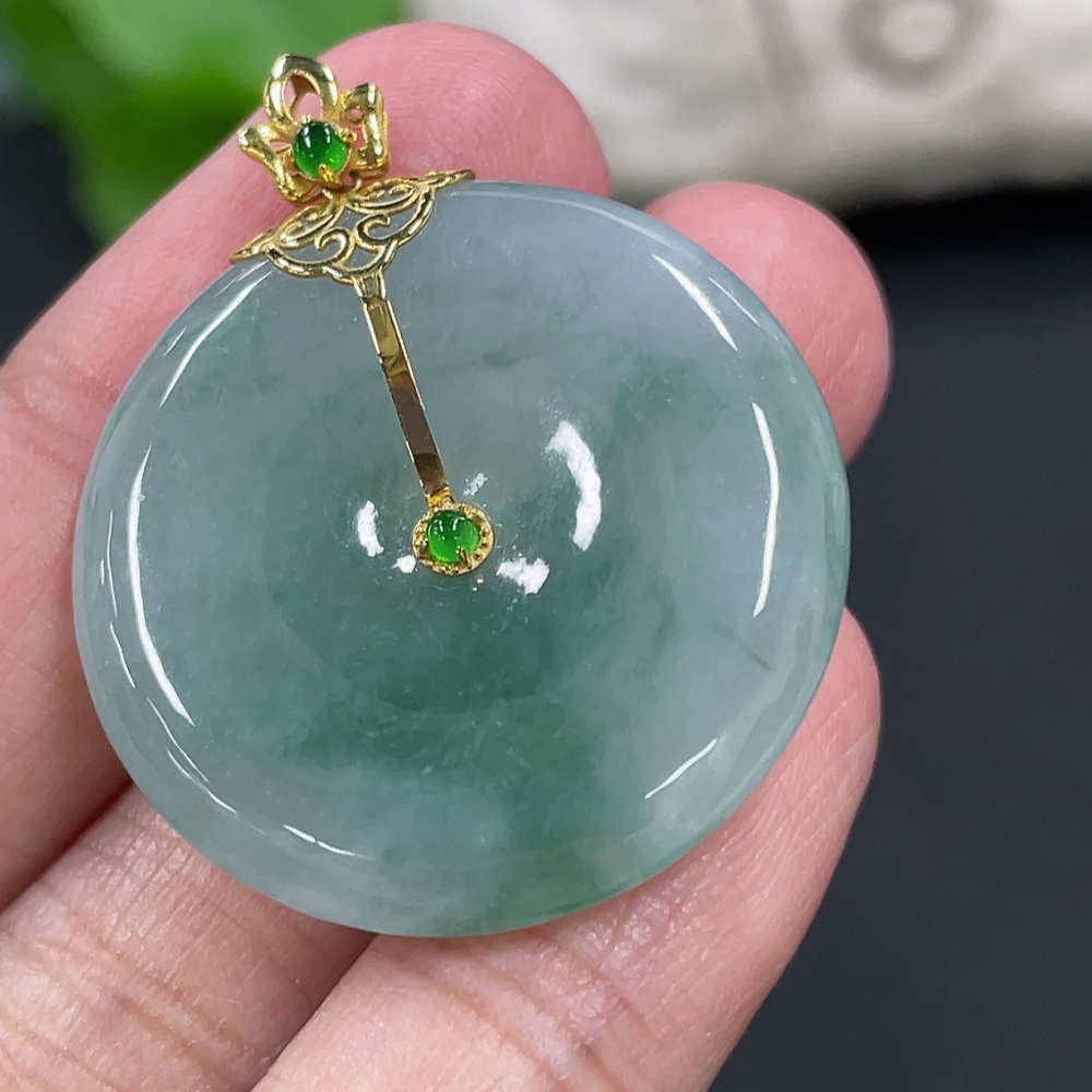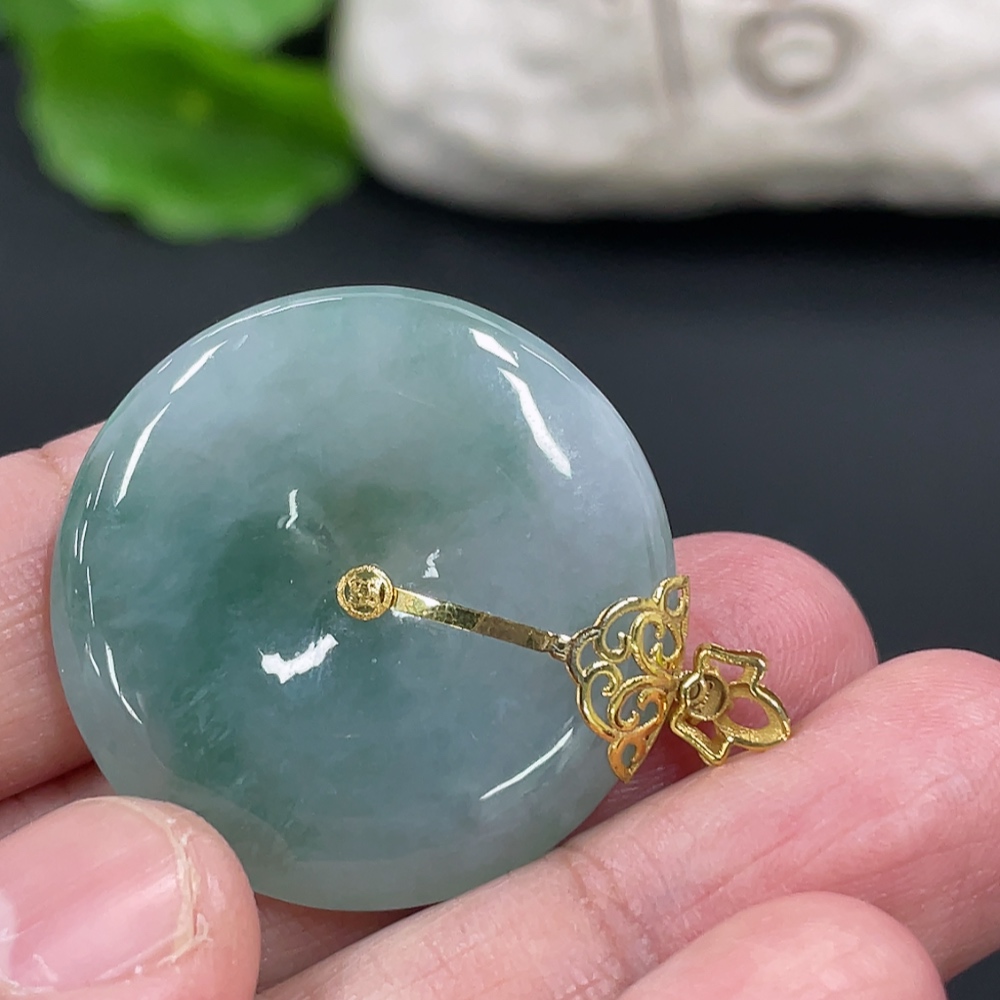 Jadeite Peace Knot Pendant, Total Weight Approx. 9.4g, 18K Gold Clasp