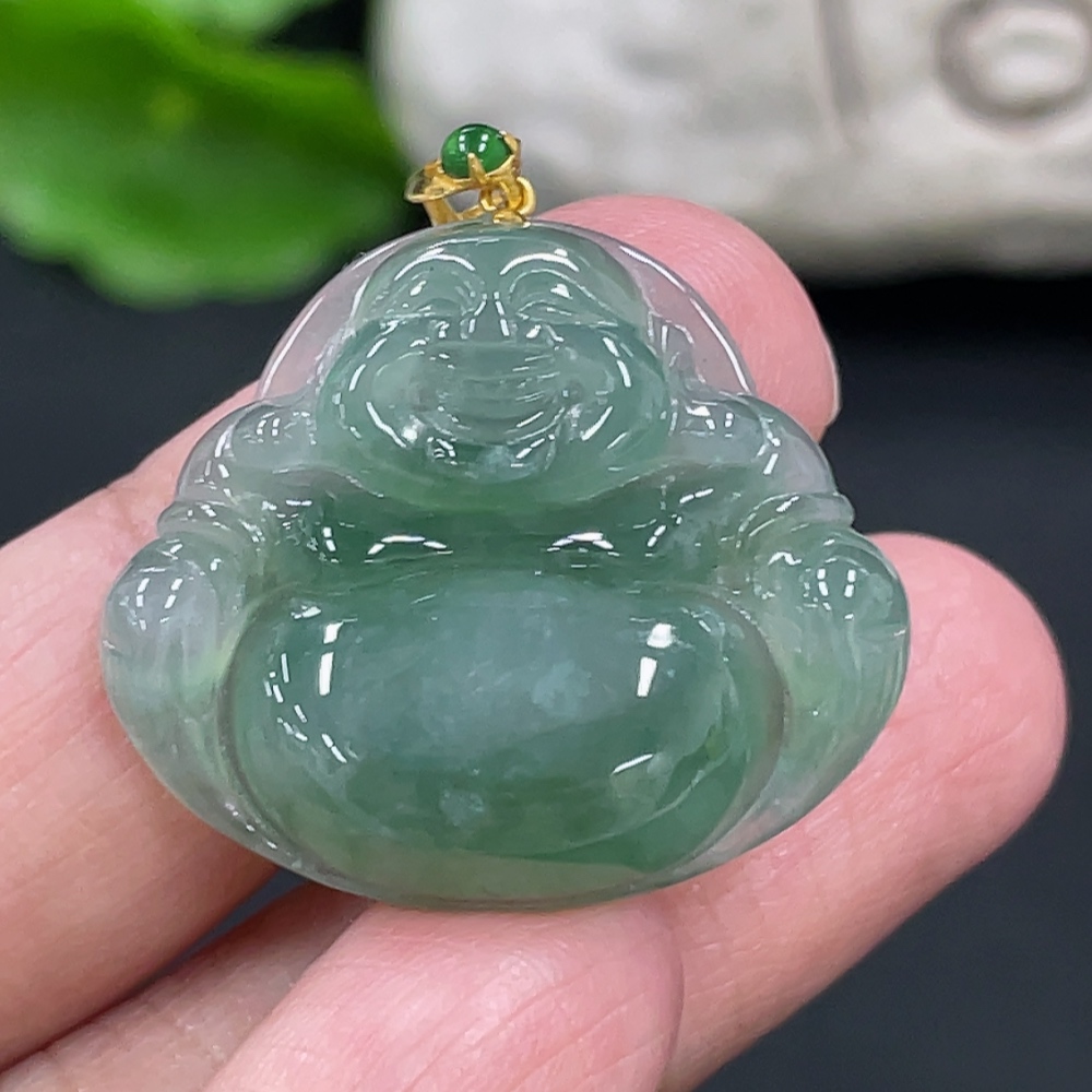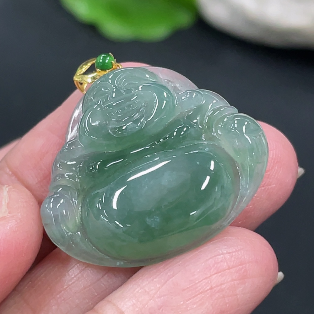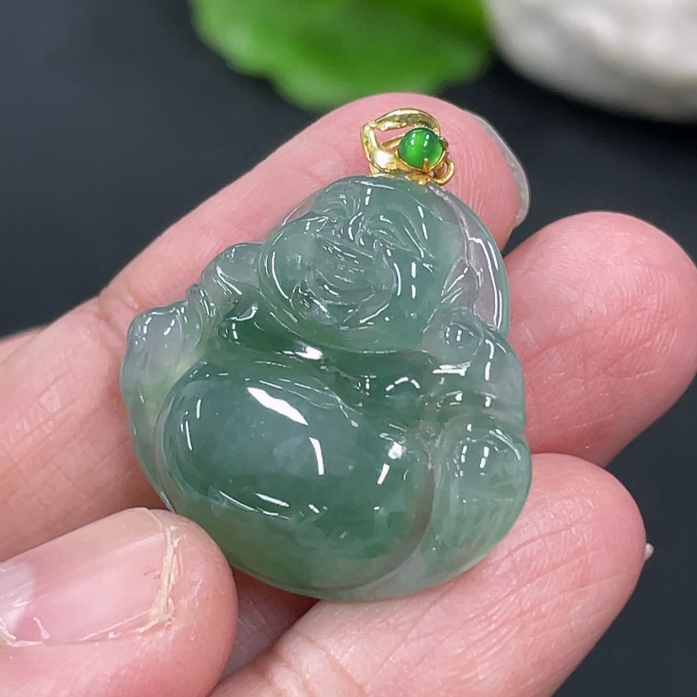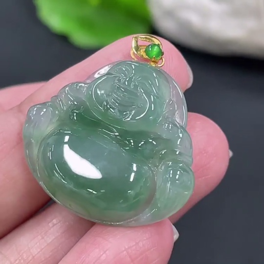 Jadeite Buddha Pendant with 18K Gold Clasp, Total Weight Approximately 6g