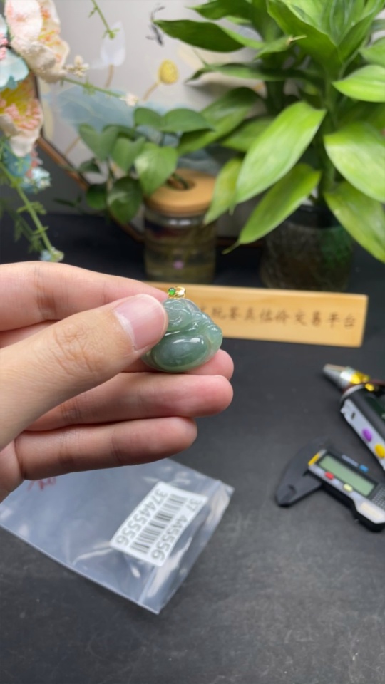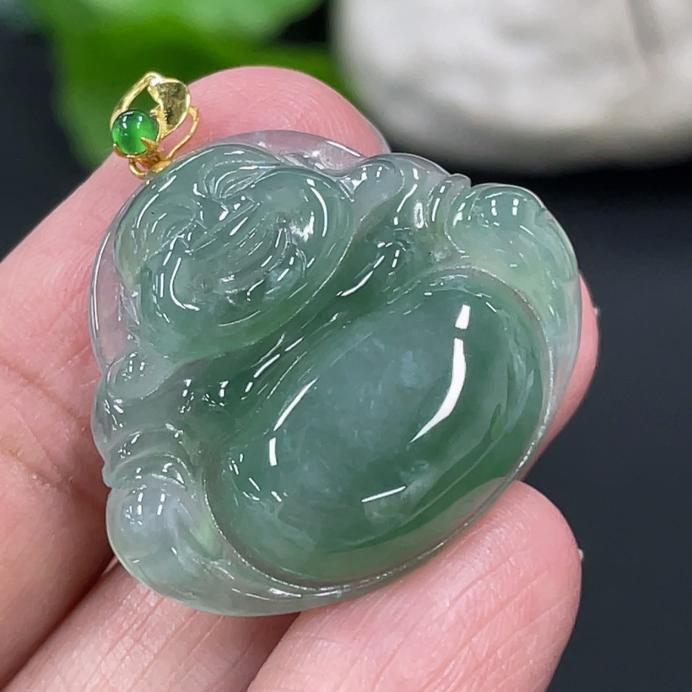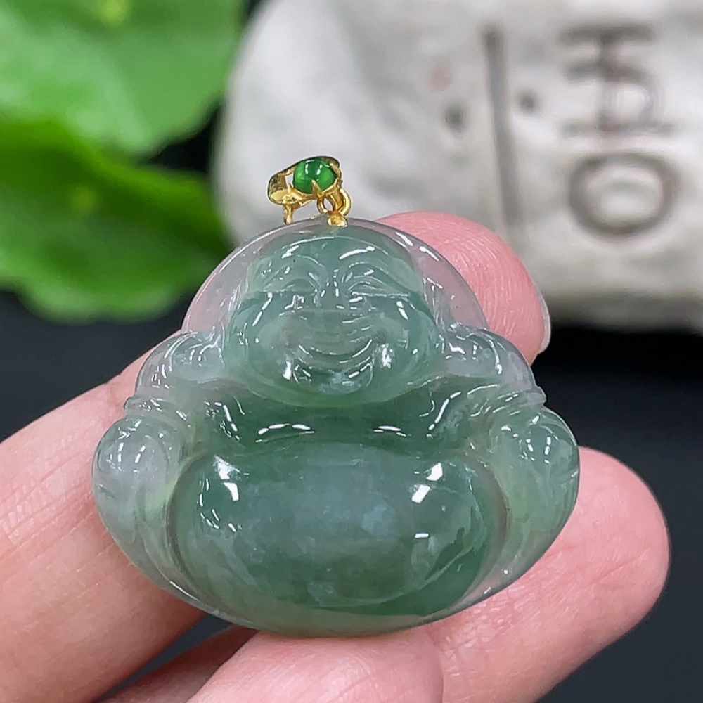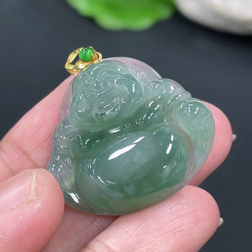 Jadeite Buddha Pendant with 18K Gold Clasp, Total Weight Approximately 6g