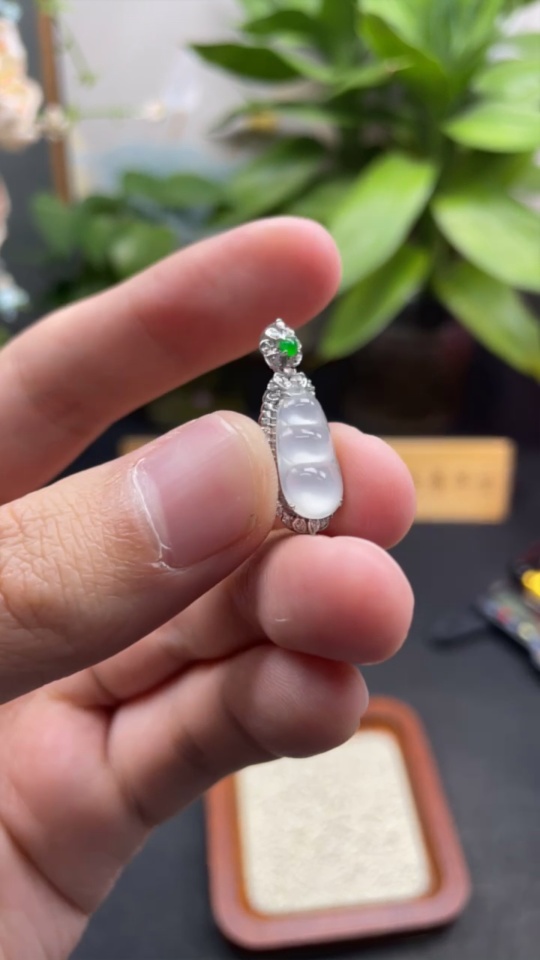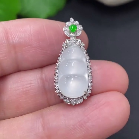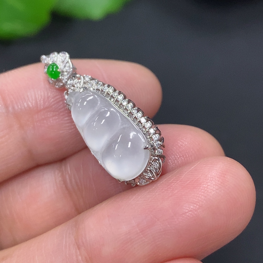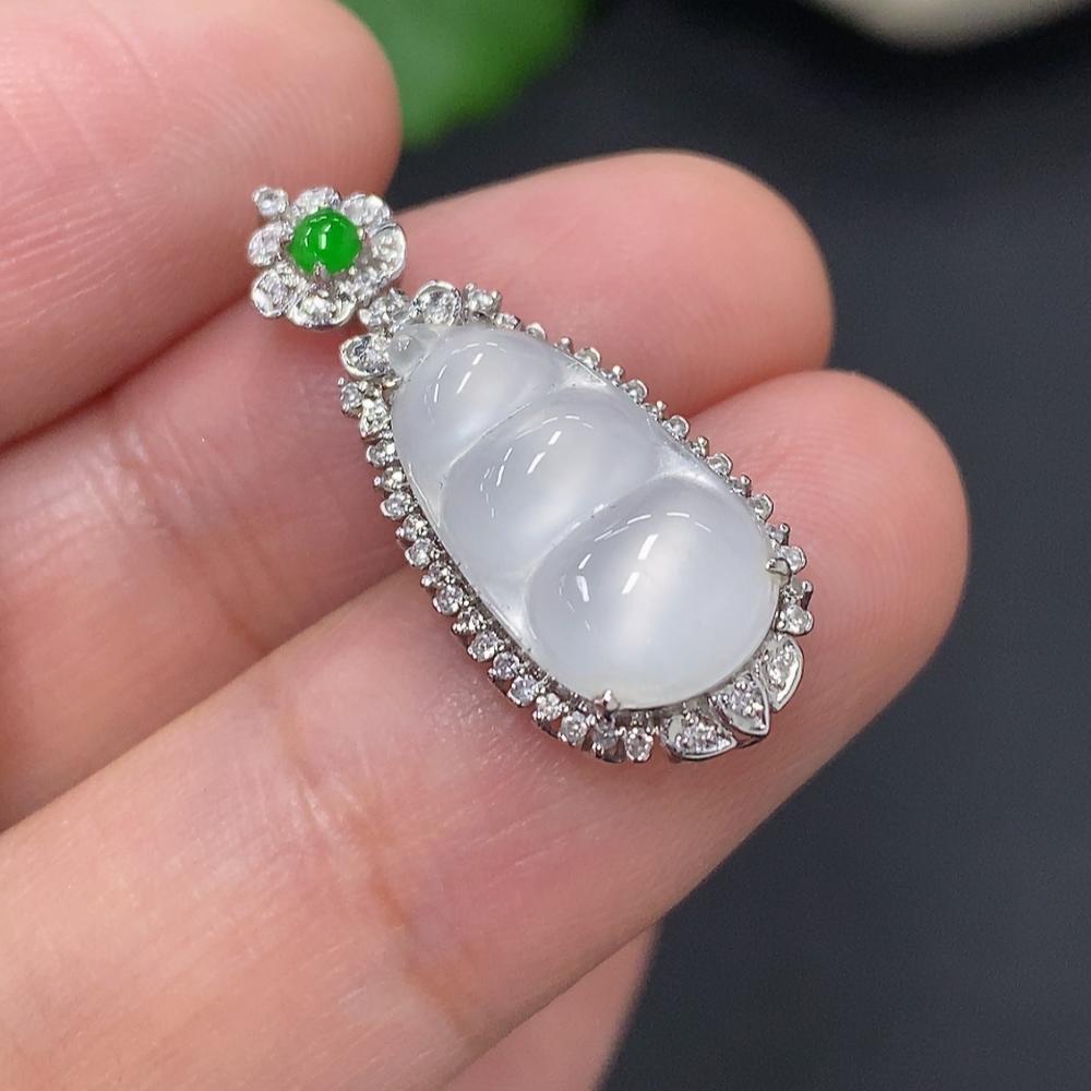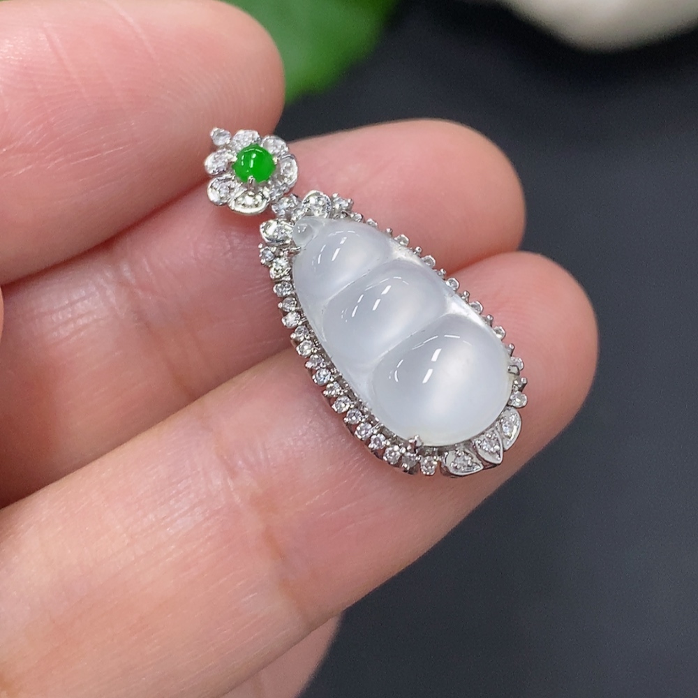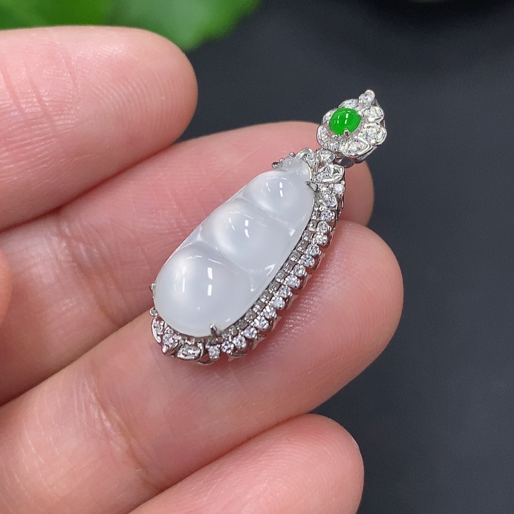Jadeite Lucky Bean Pendant in 18K Gold, Total Weight Approx. 1.8g (with Diamond Accents)