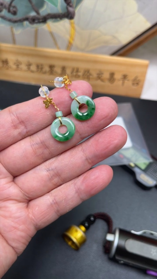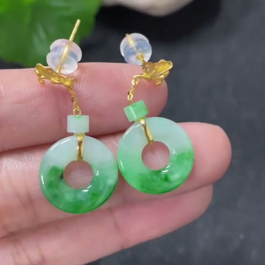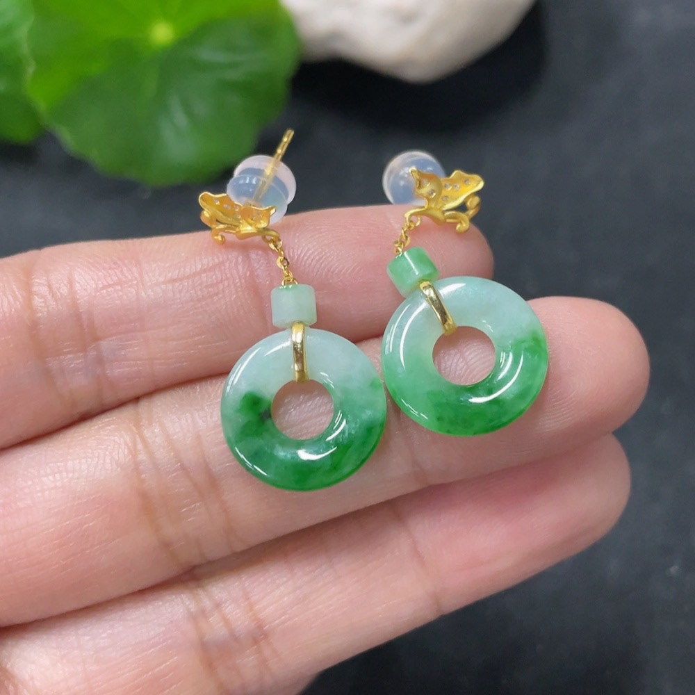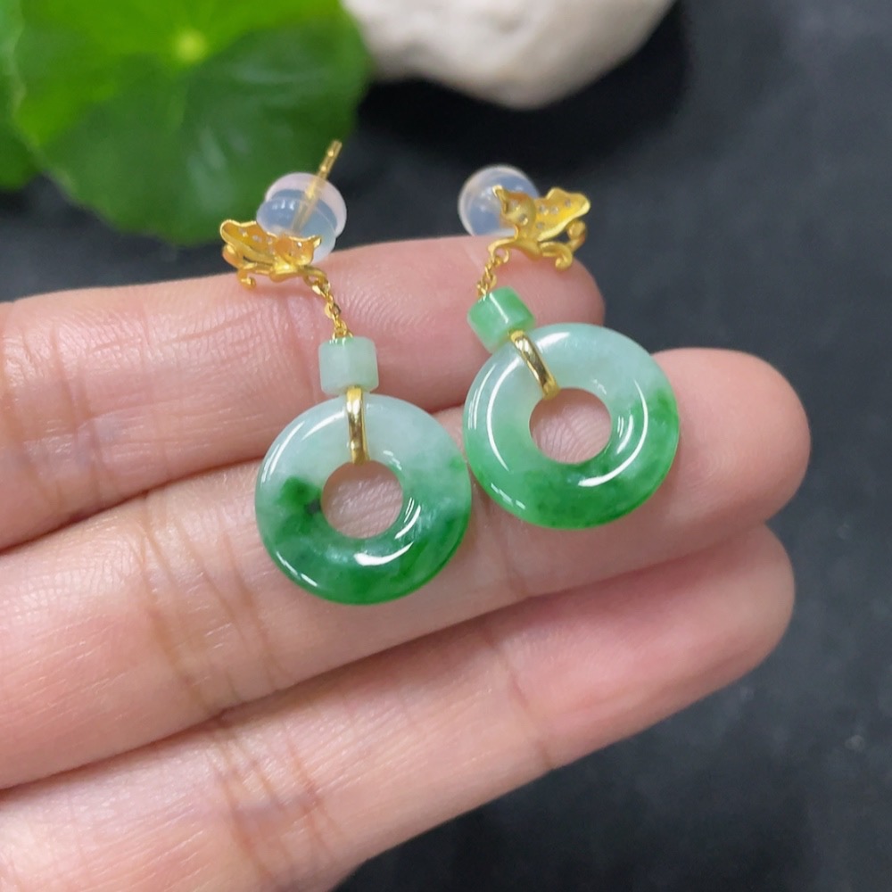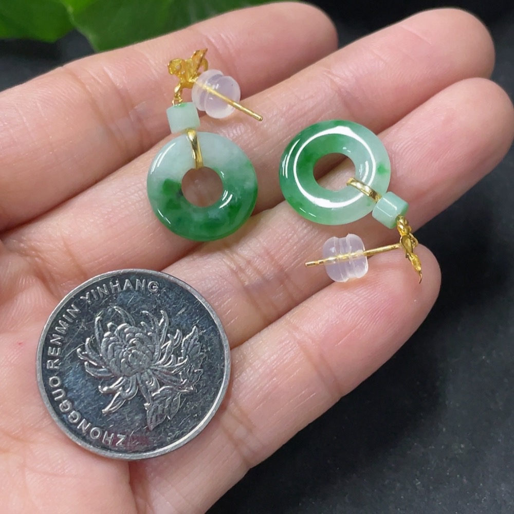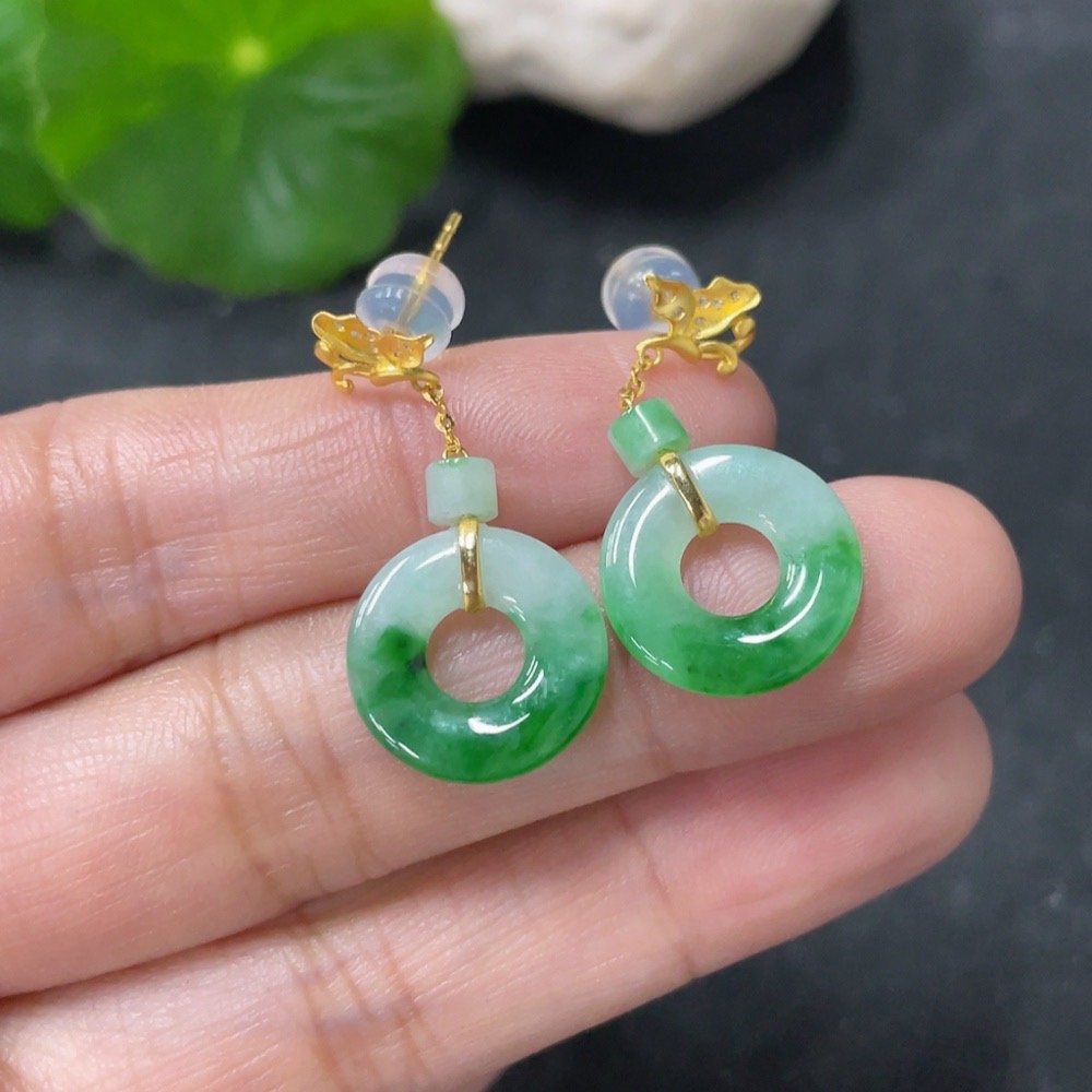 Jadeite earrings with 18k gold and diamond accents, total weight approximately 2.39g