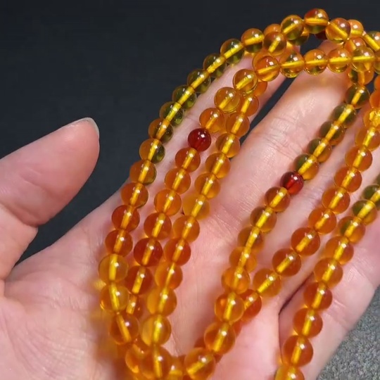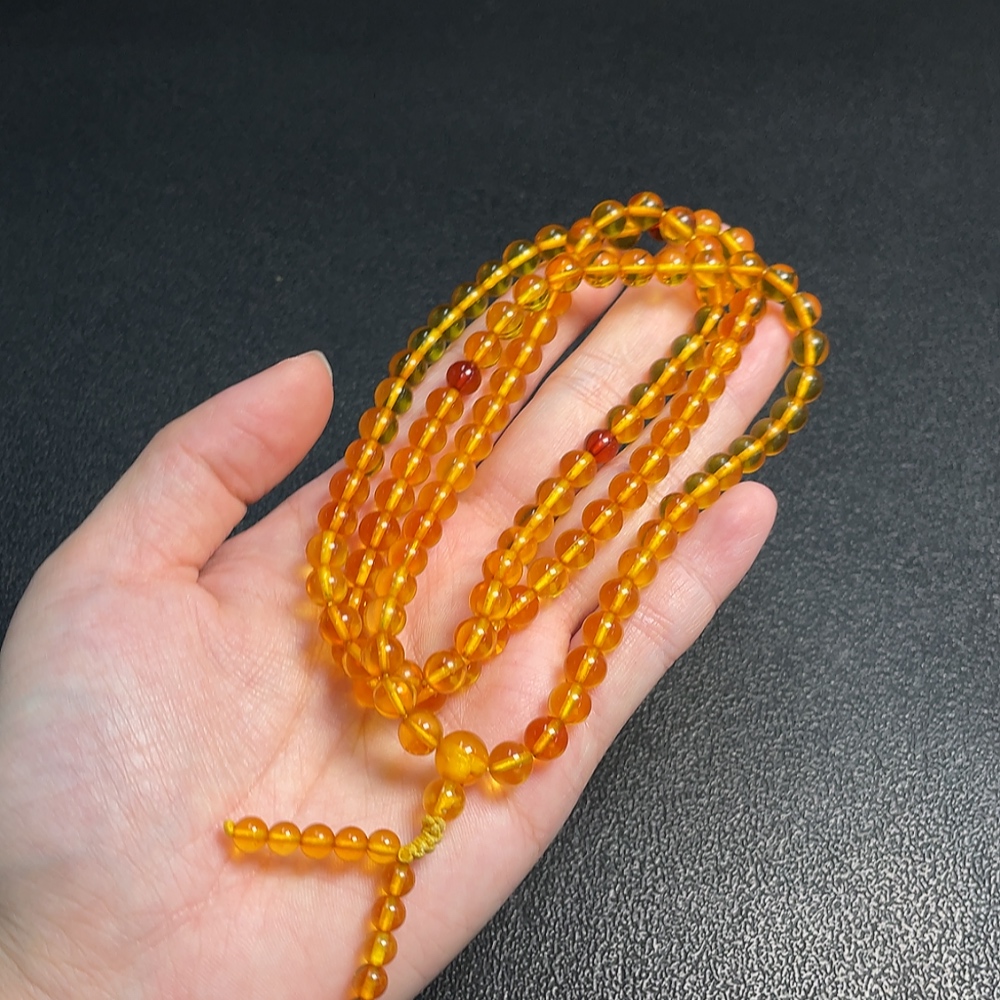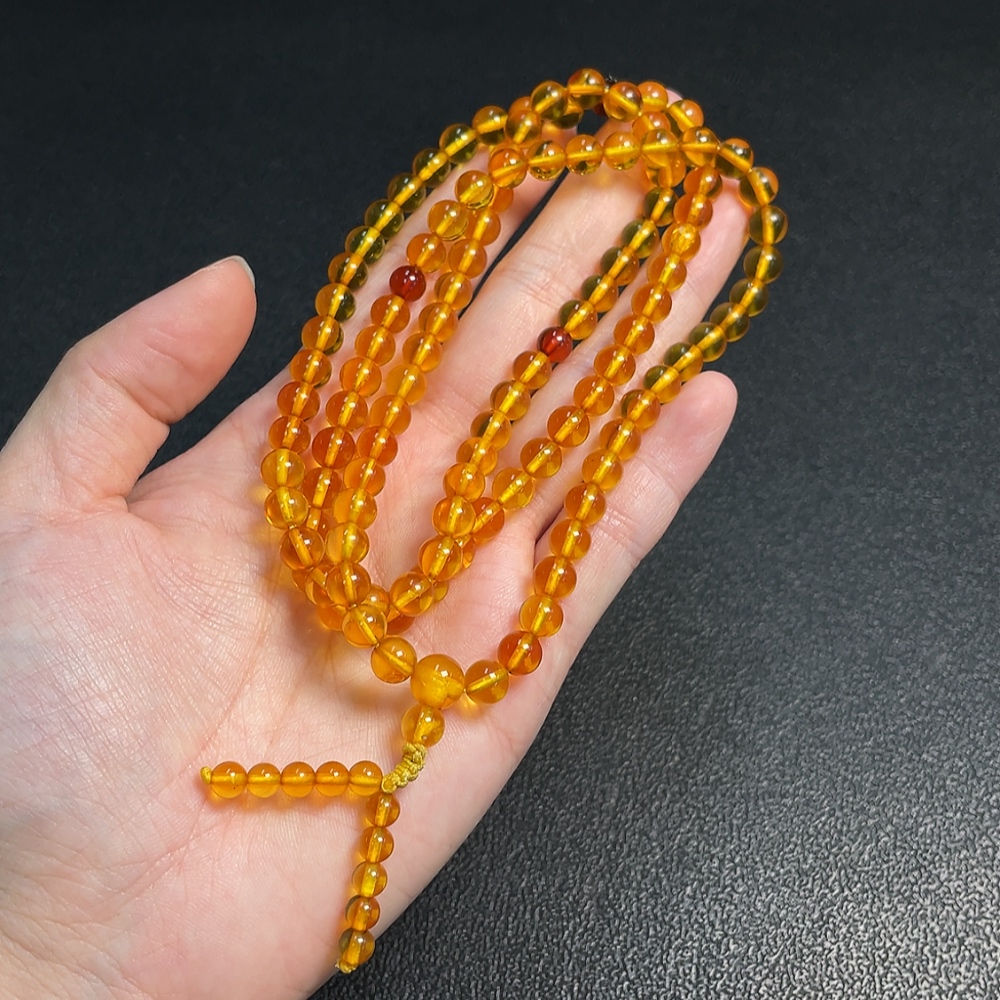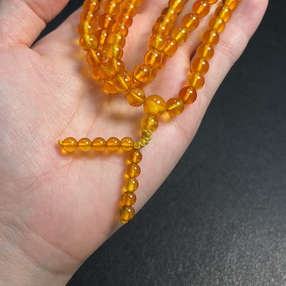 Amber Beeswax Bead Strand, Total Weight Approx. 18.48g, Size About 6.4mm
