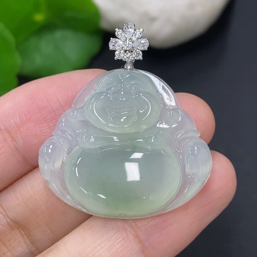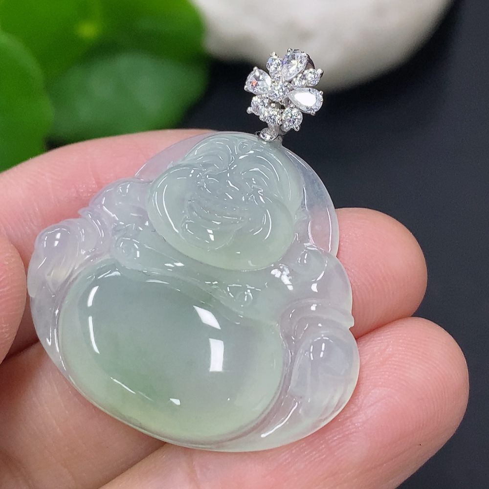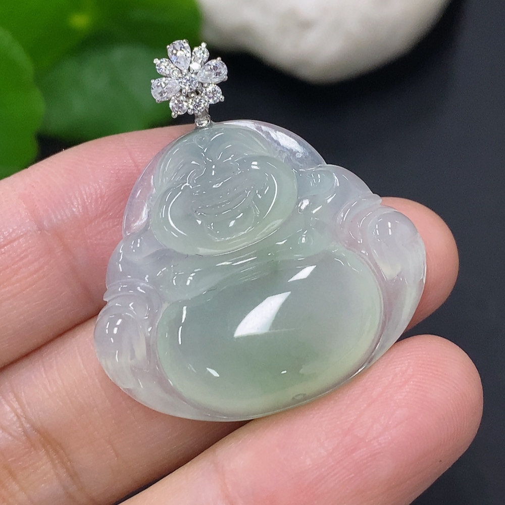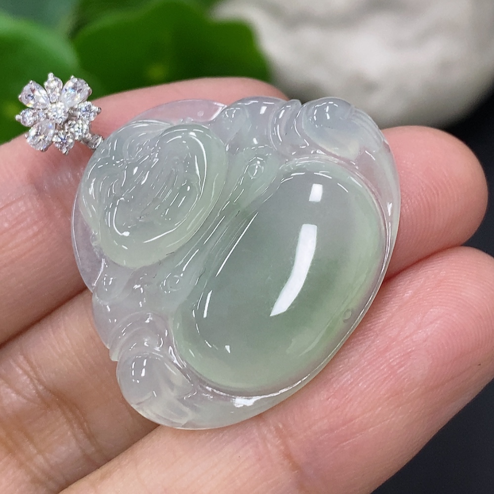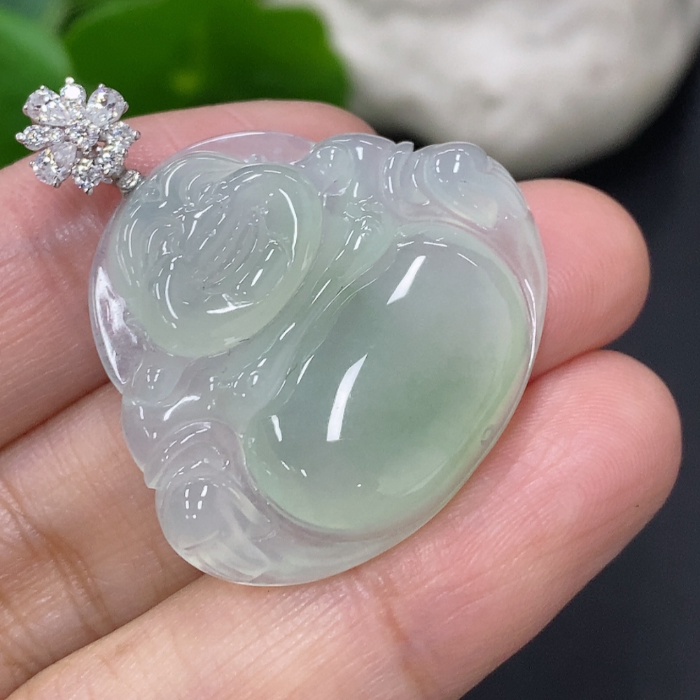 Jadeite Buddha Pendant with 18K Gold Clasp, Total Weight Approx. 7.8g (Non-Diamond)