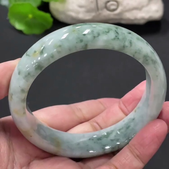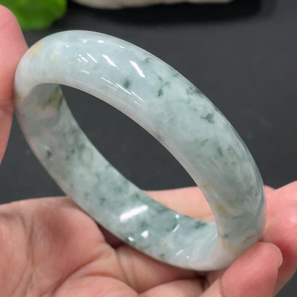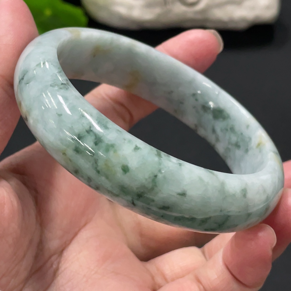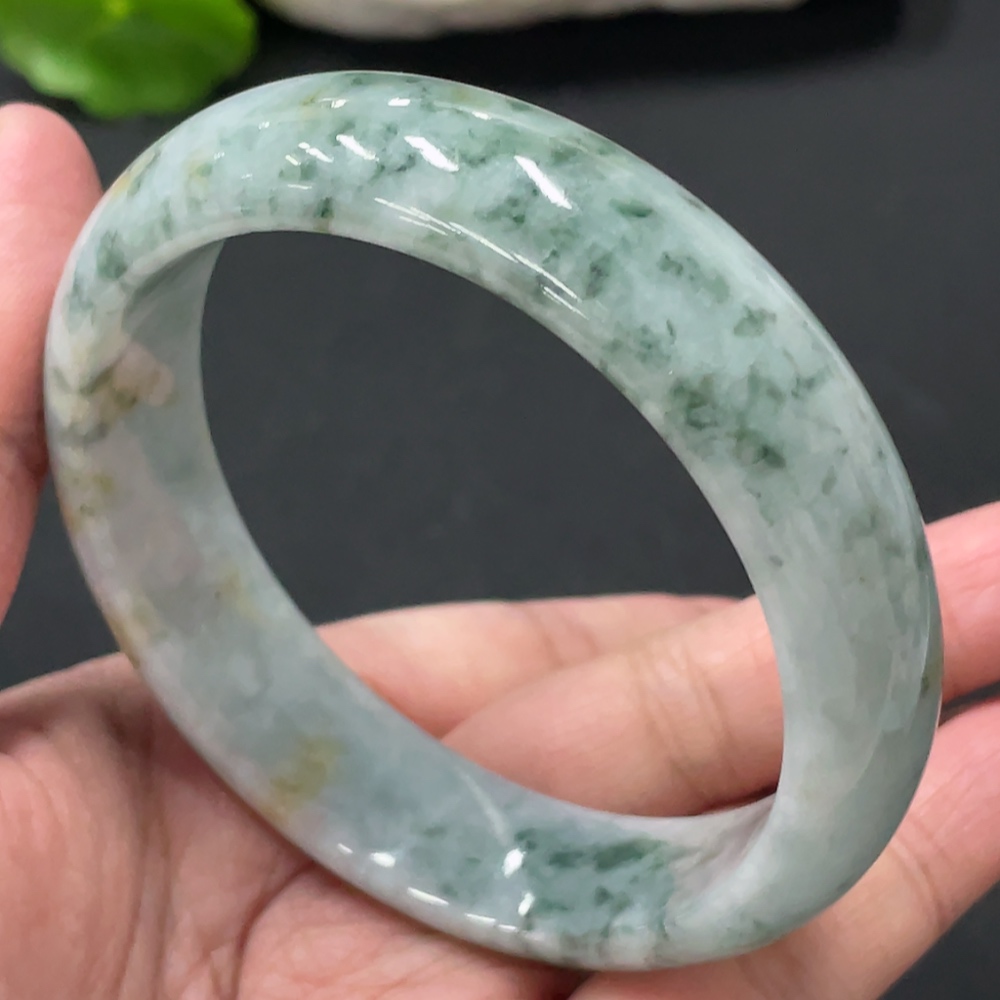 Jadeite round bracelet, total weight about 73g, contains other mineral components, with cracks, size 60.5