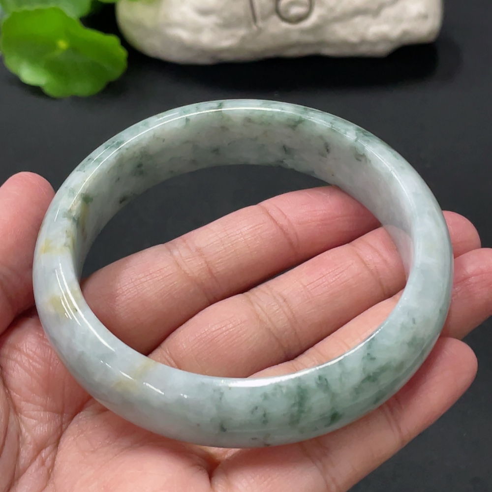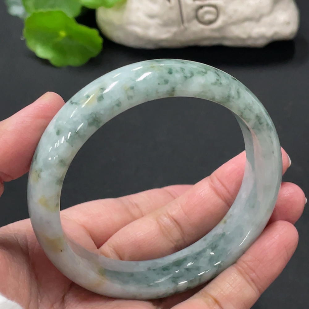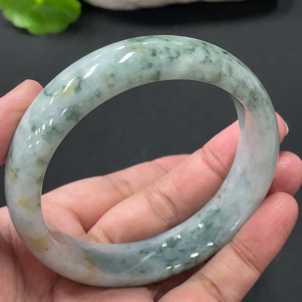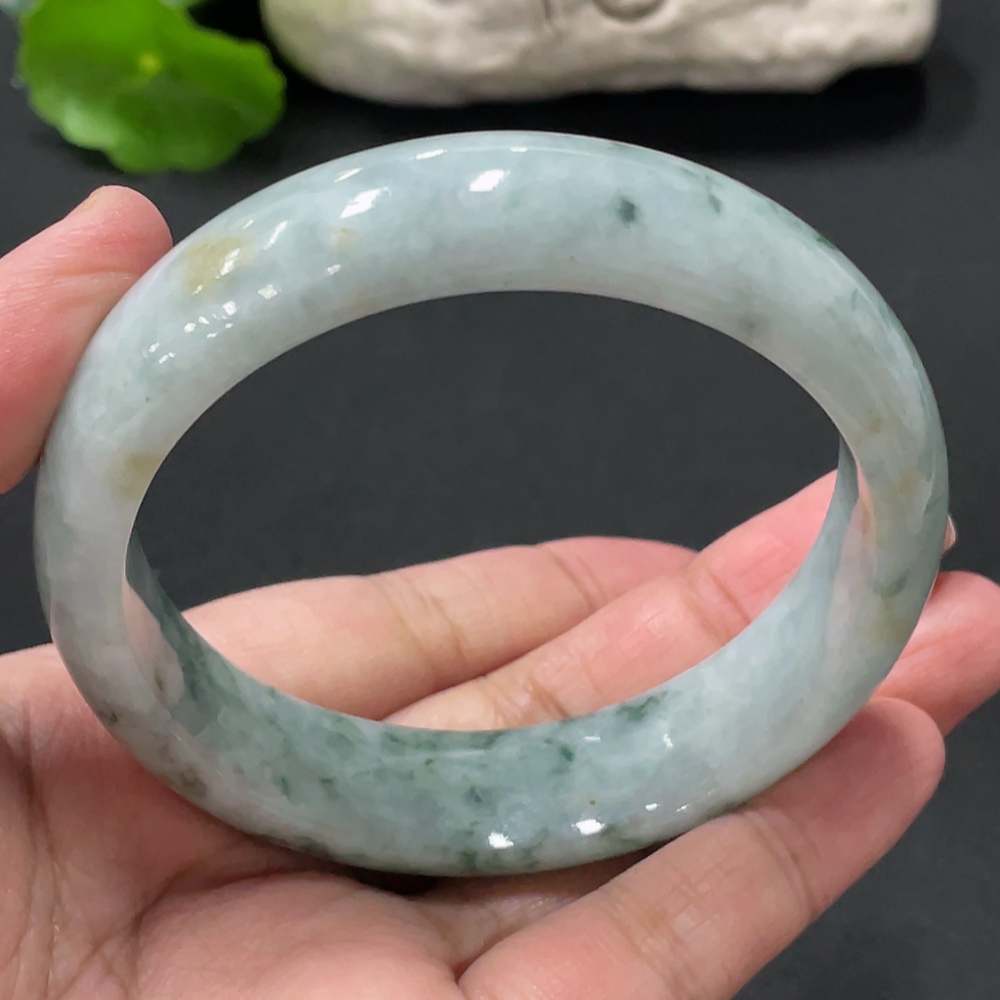 Jadeite round bracelet, total weight about 73g, contains other mineral components, with cracks, size 60.5