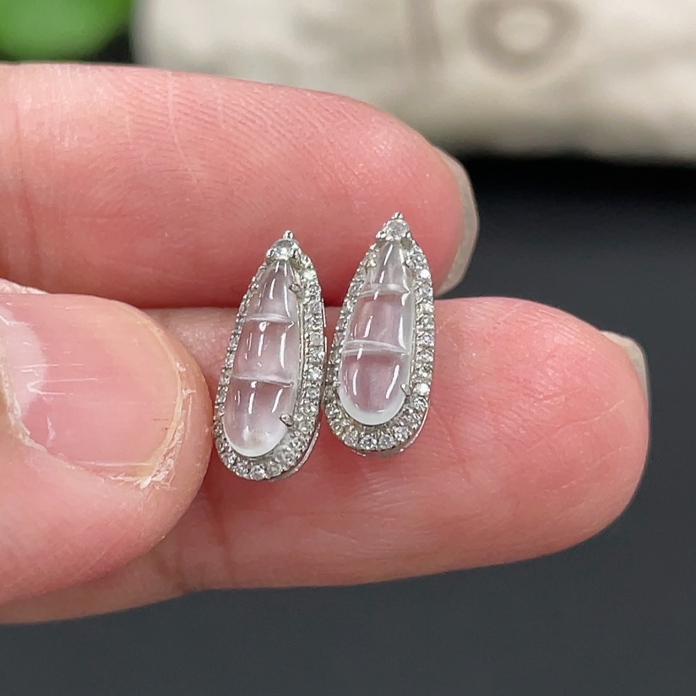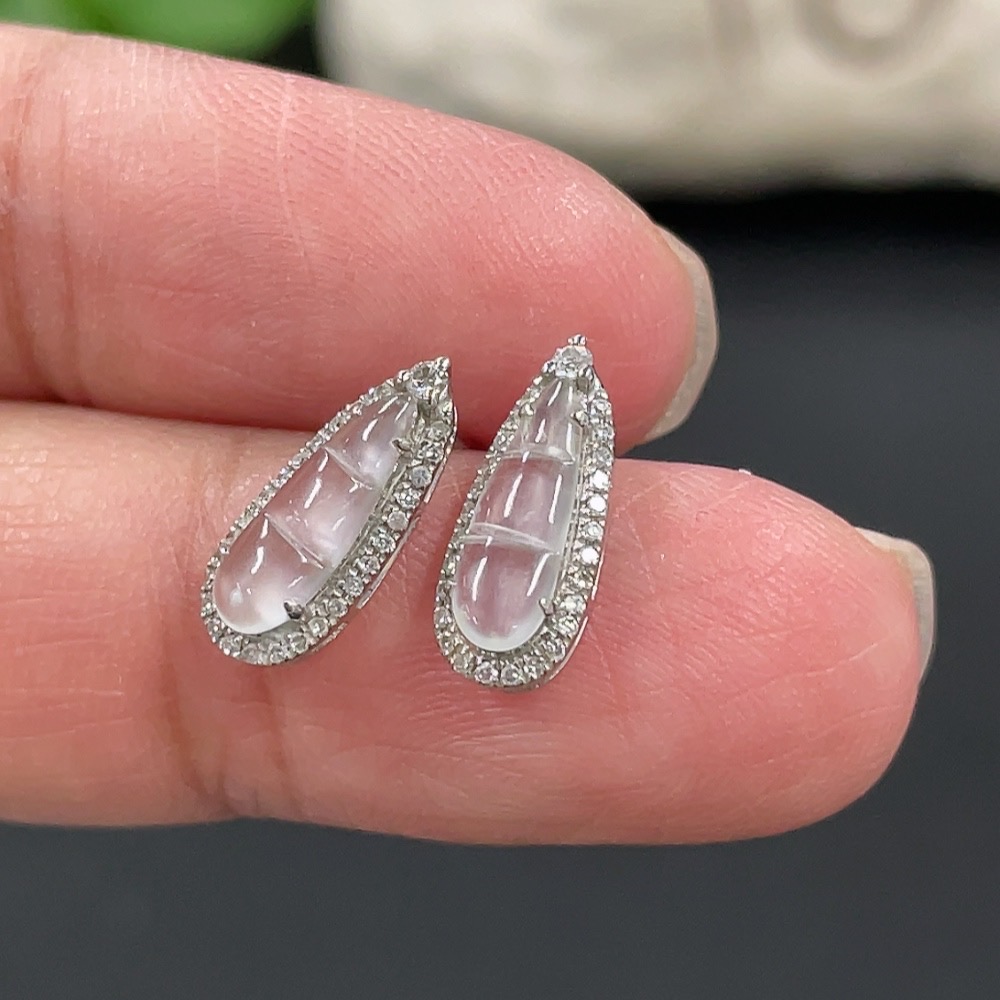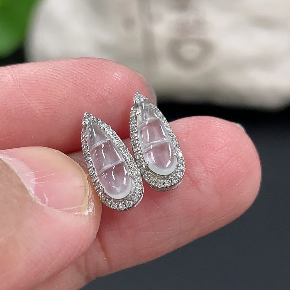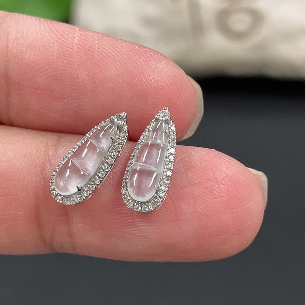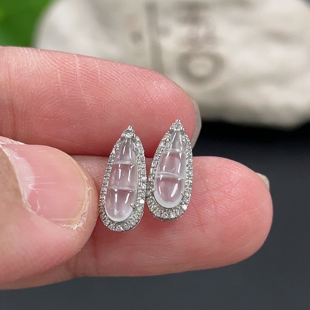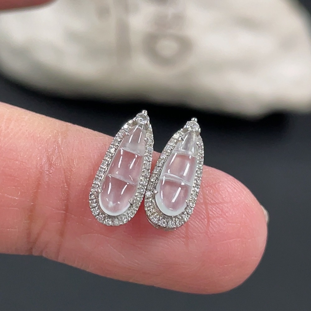 Jadeite Earrings with 18k Gold and Diamond Accents, Total Weight Approximately 1.04g