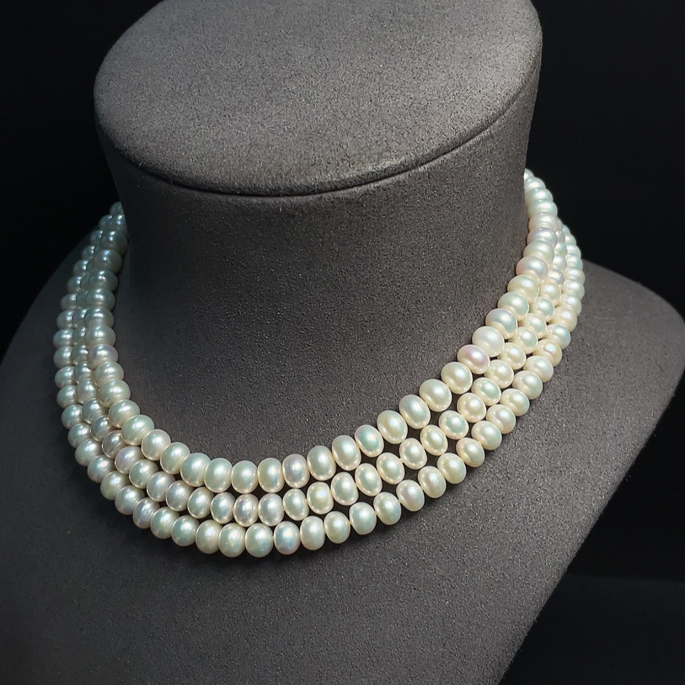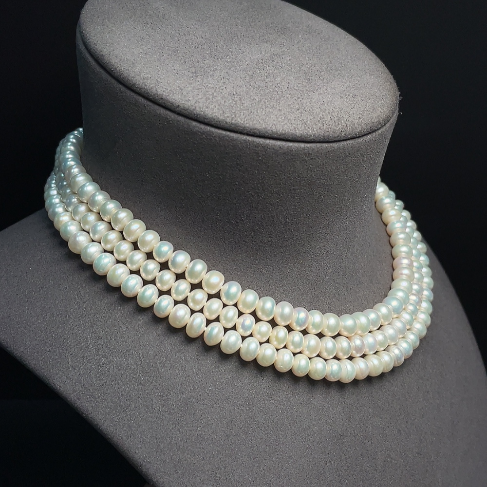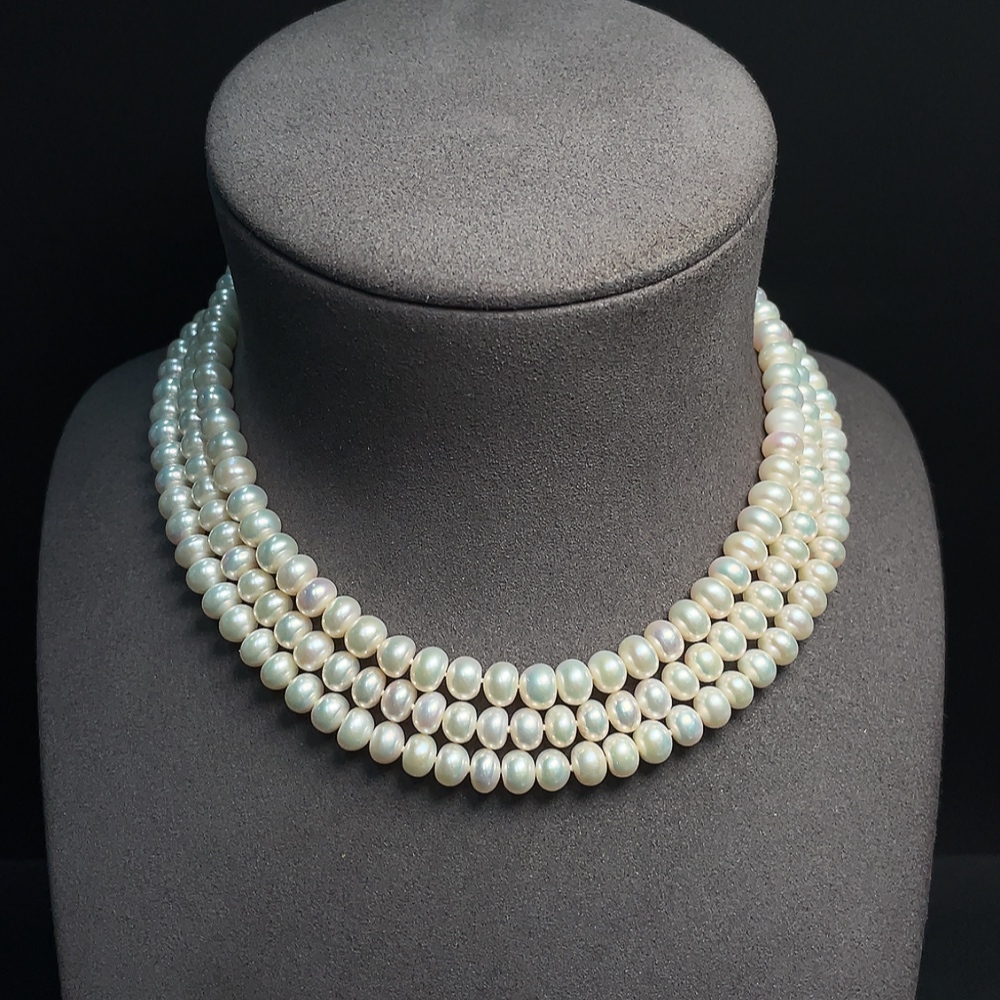 Pearl bead necklace, non-gold, total weight approximately 84.75g, bead size about 6.8mm