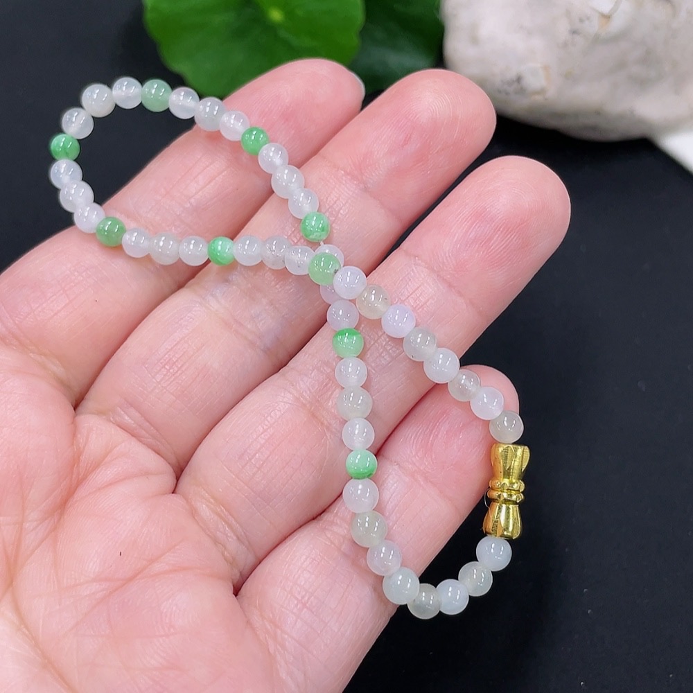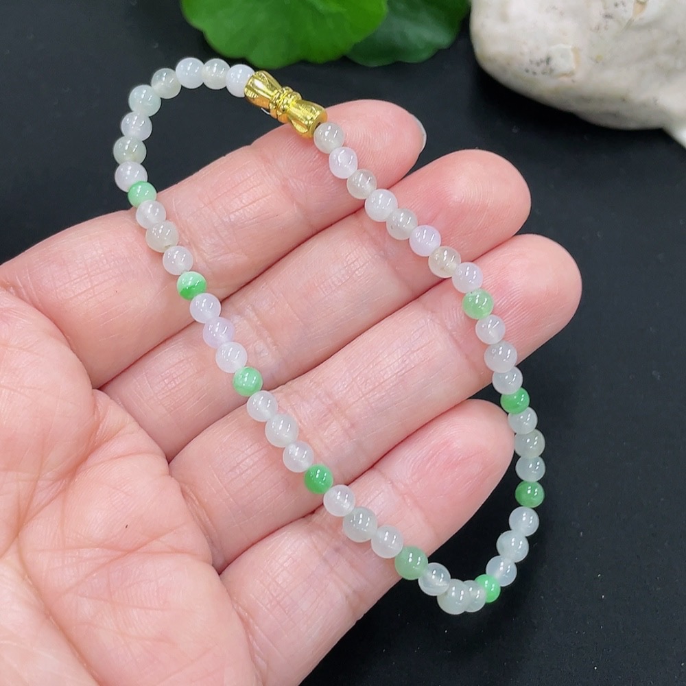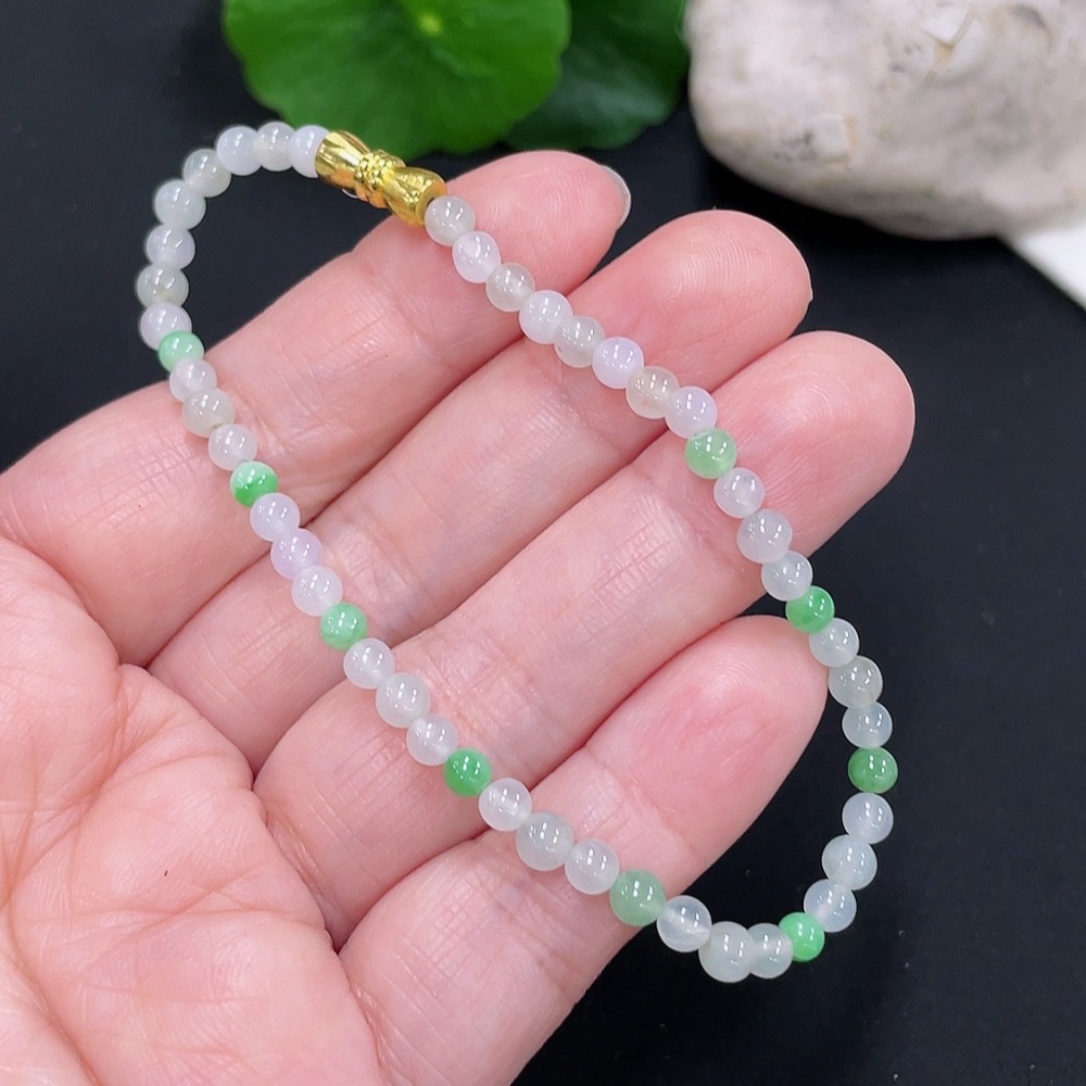 Jadeite Bracelet 4mm Approx. Total Weight About 5.7g (Non-Gold Inlaid)