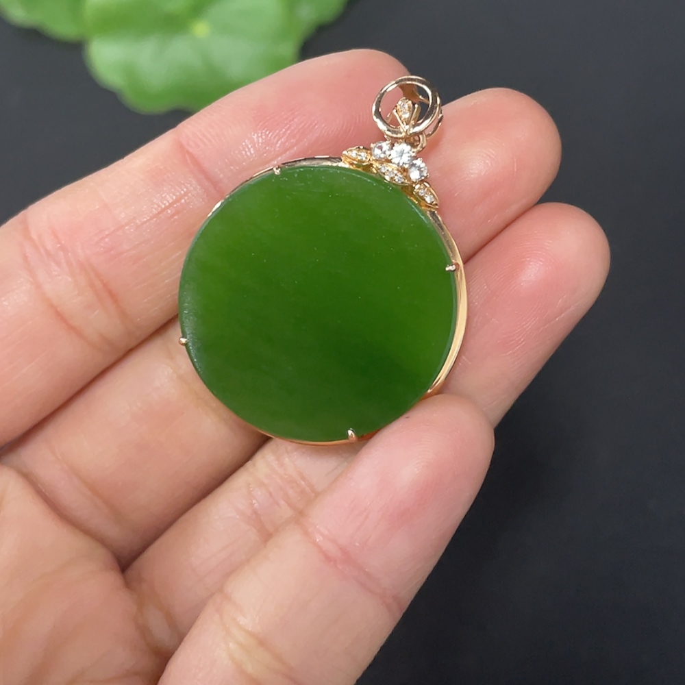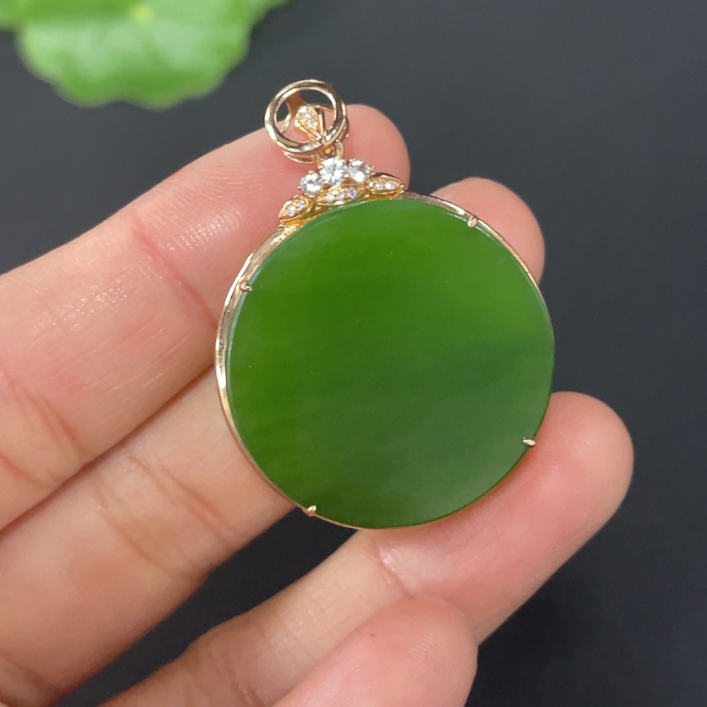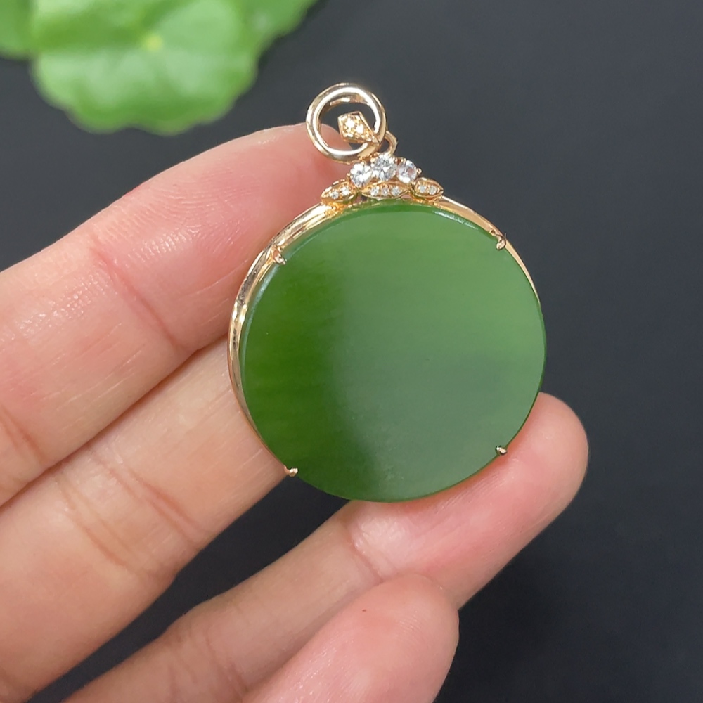 Hetian Jade Inlaid Plain Pendant with 18K Gold and Diamond Accents (Minimum)