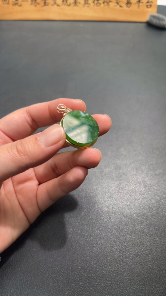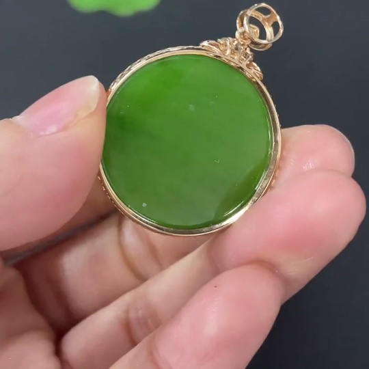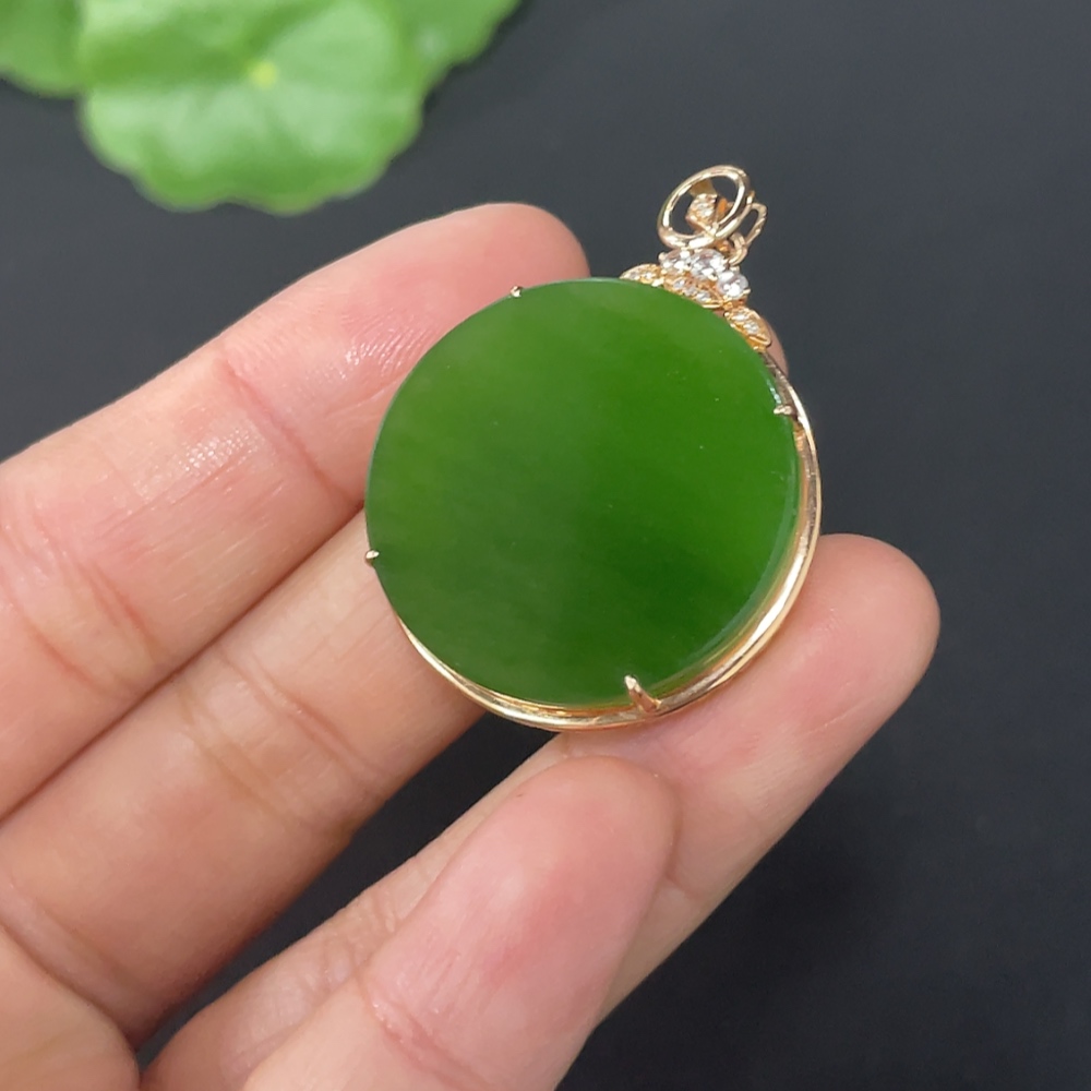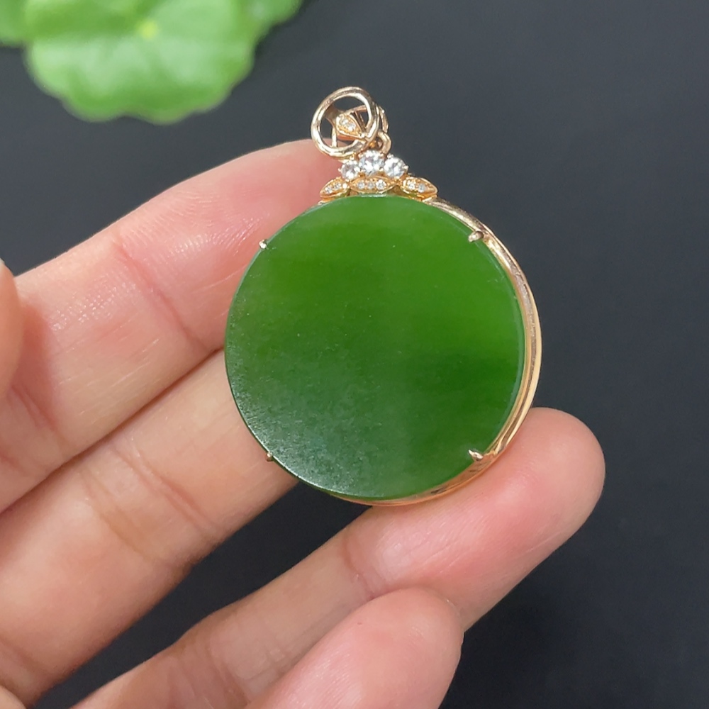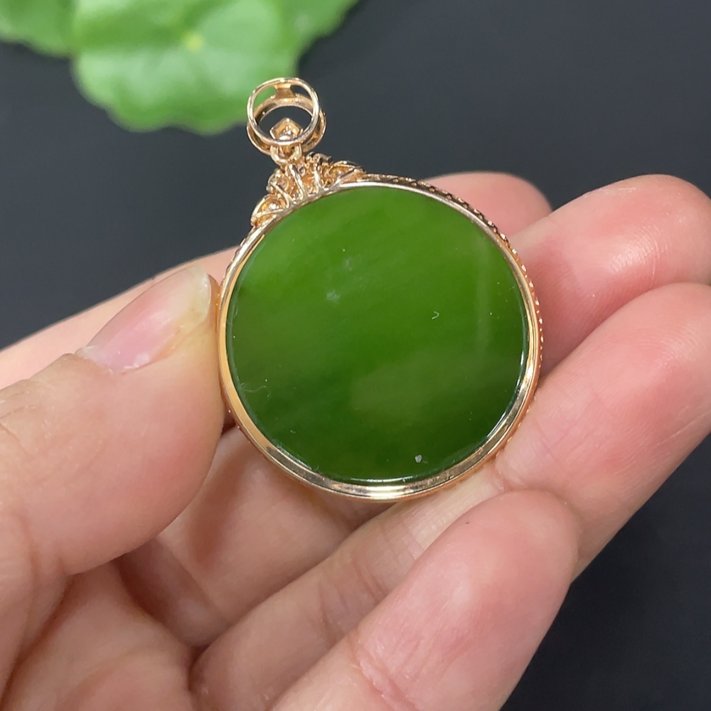 Hetian Jade Inlaid Plain Pendant with 18K Gold and Diamond Accents (Minimum)
