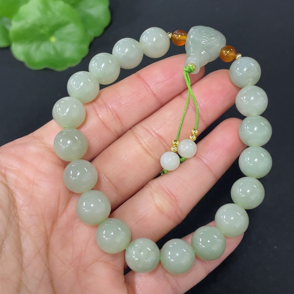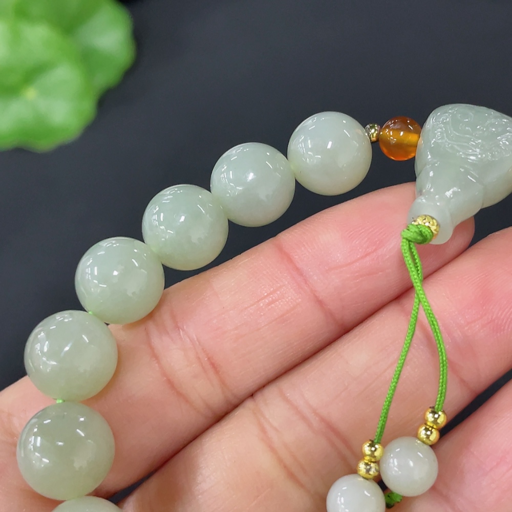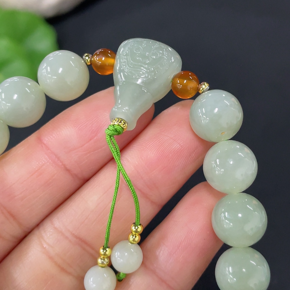 Hetian Jade Bracelet, Approx. 9.9mm, Non-Gold, Total Weight Approx. 32.2g, Beads Not Hetian Jade