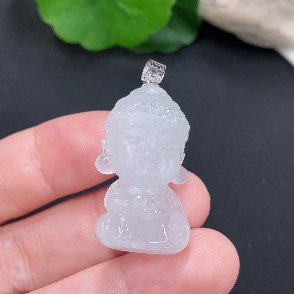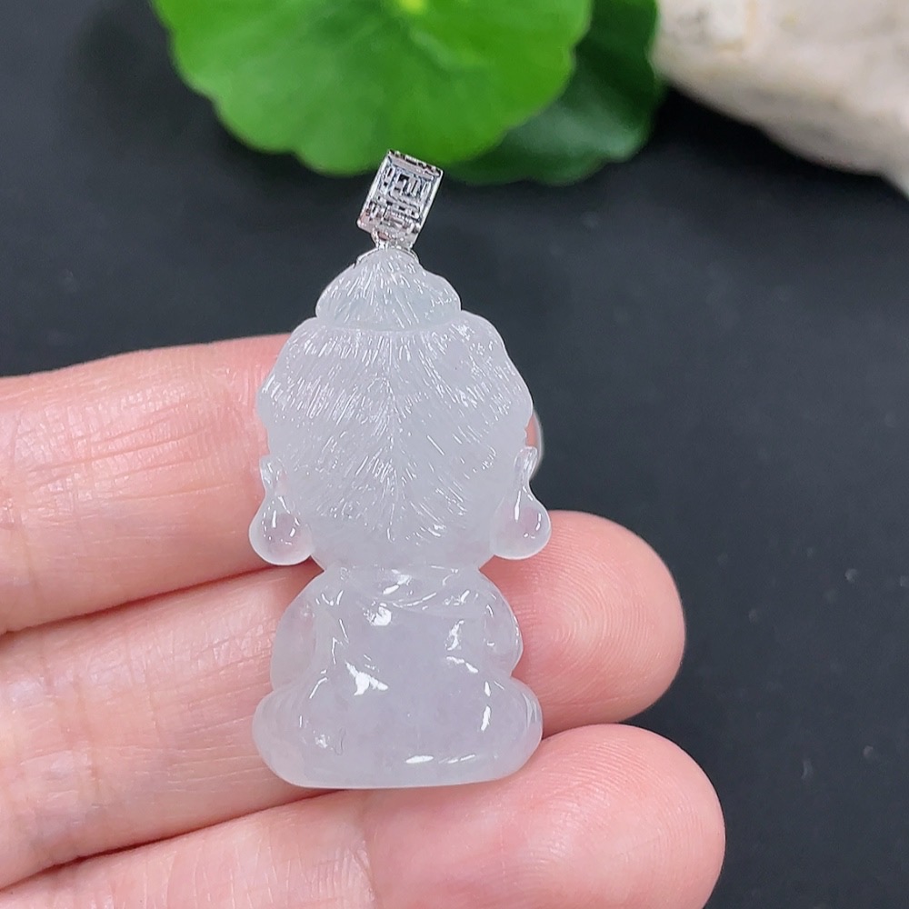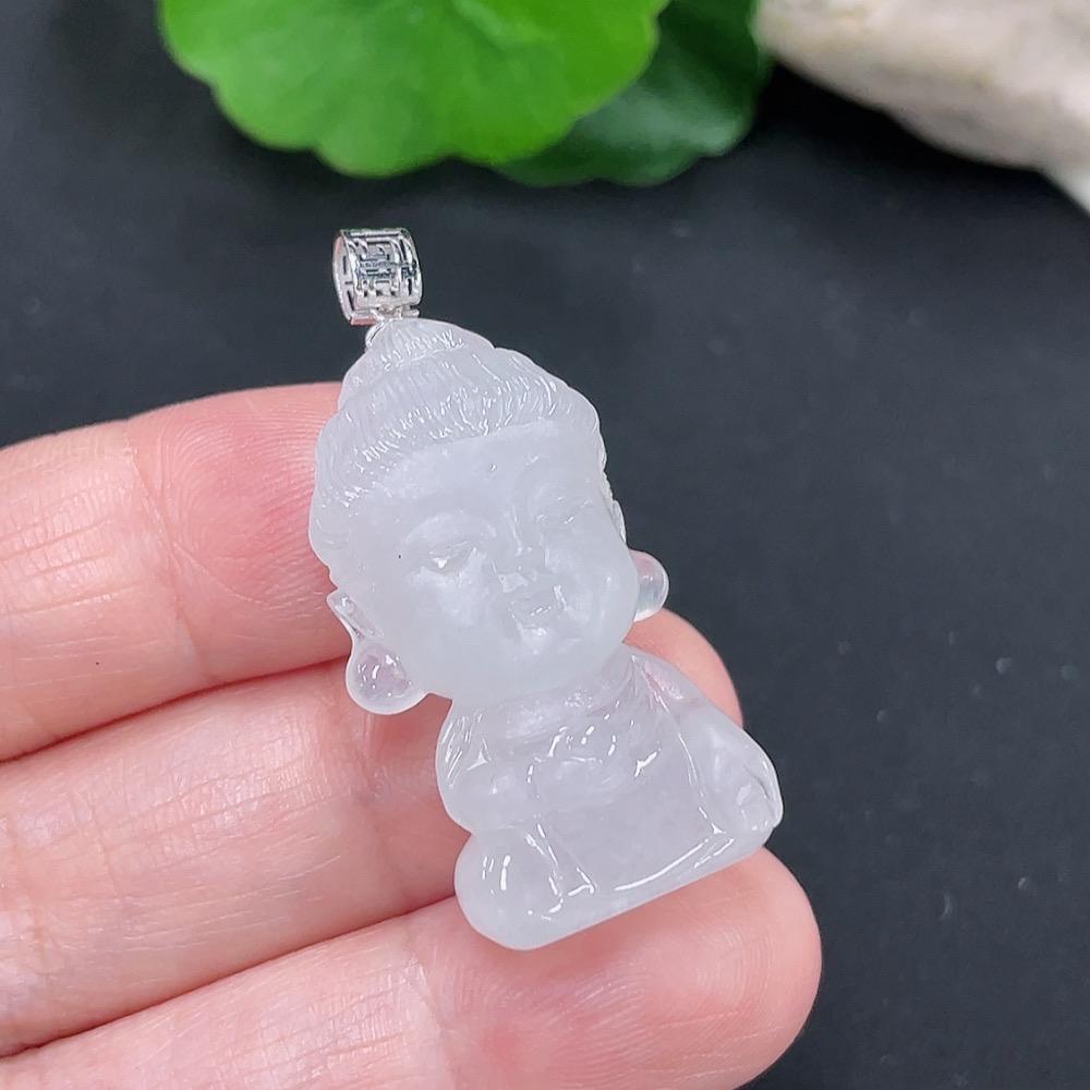 Jadeite Baby Buddha Pendant 18K Gold Total Weight Approx. 9.55g