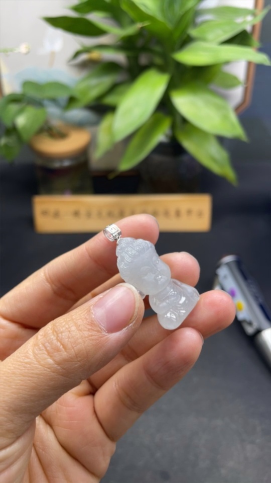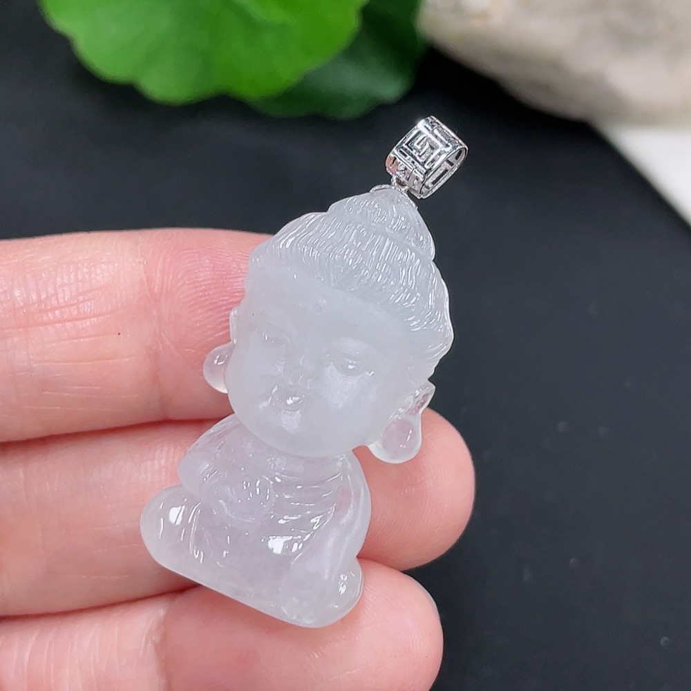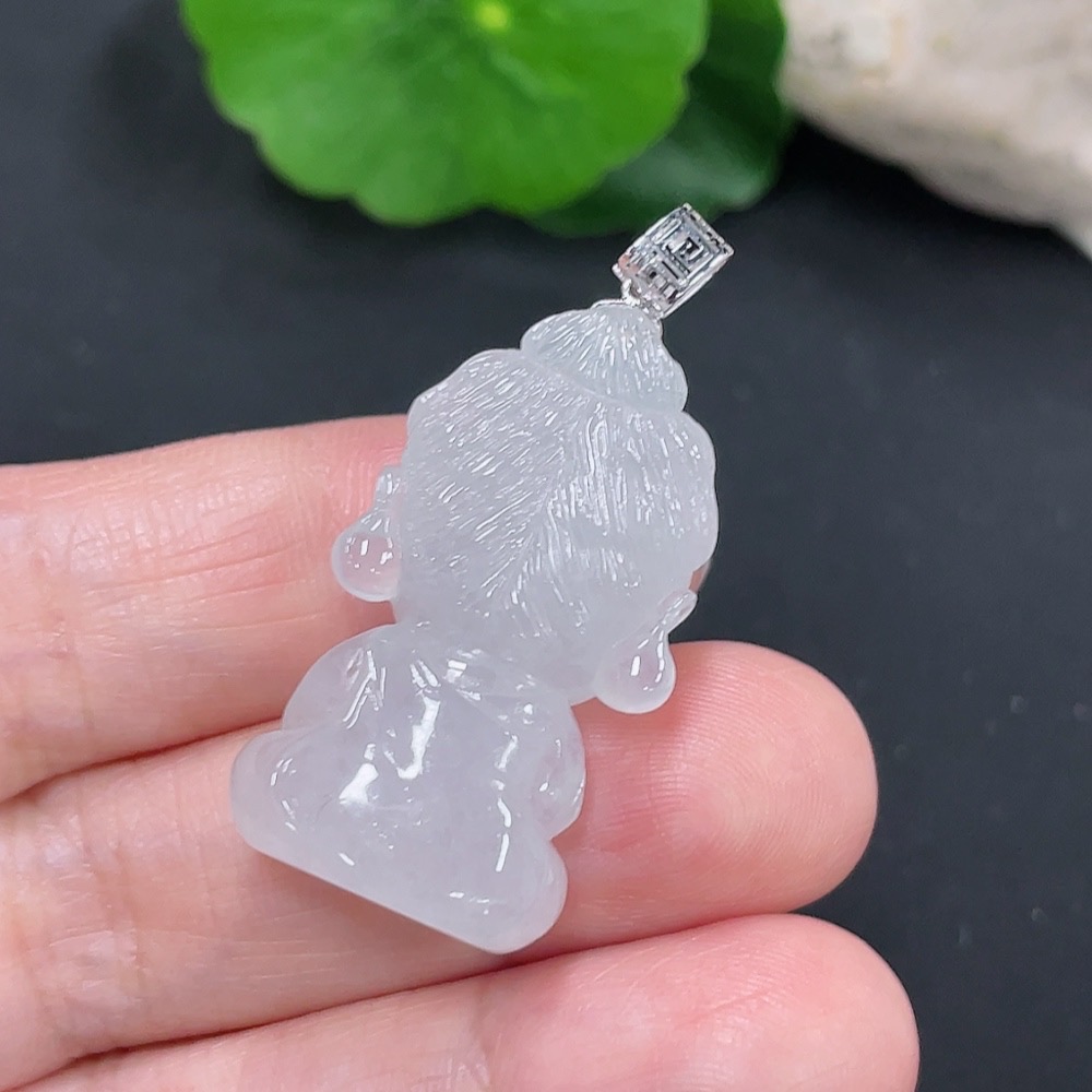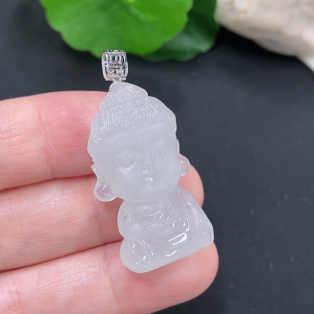 Jadeite Baby Buddha Pendant 18K Gold Total Weight Approx. 9.55g