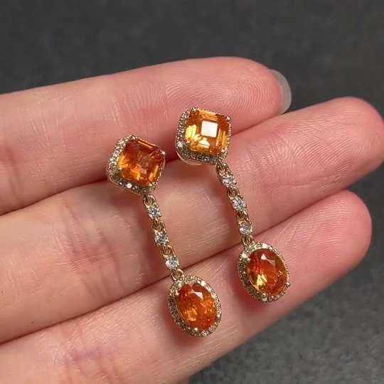 Garnet Earrings with 73% Gold Content and Diamond Accents, Total Weight Approximately 3.7g