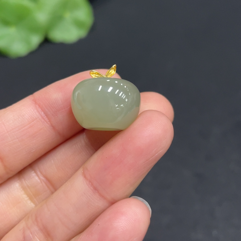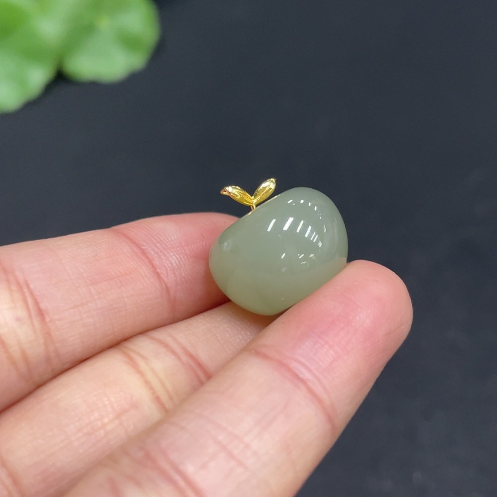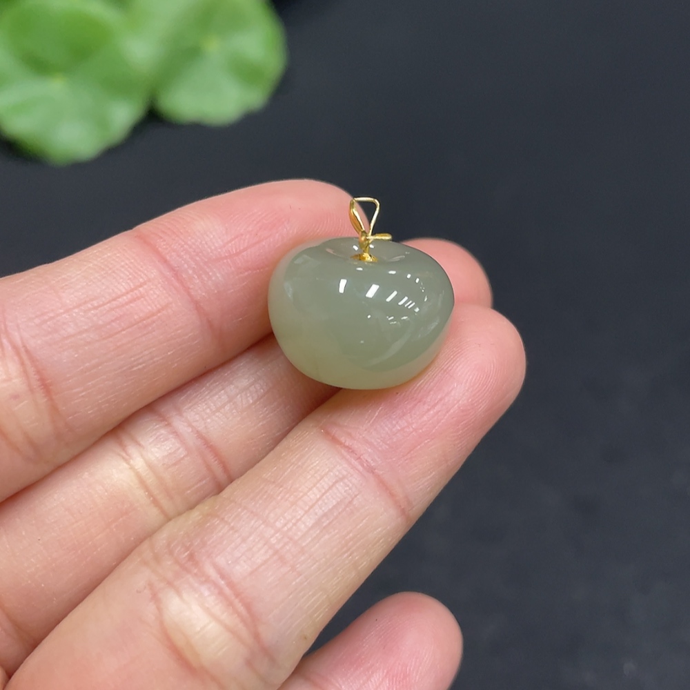 Hetian Jade Pendant Apple with 72% Gold Clasp Total Weight Approx. 5.3g