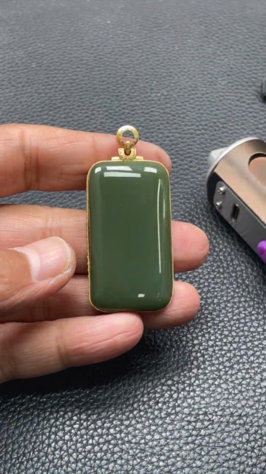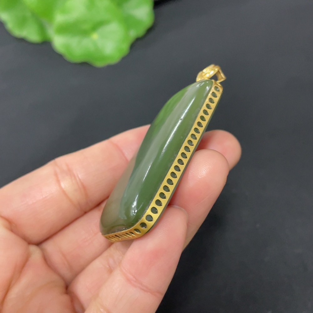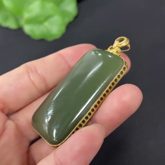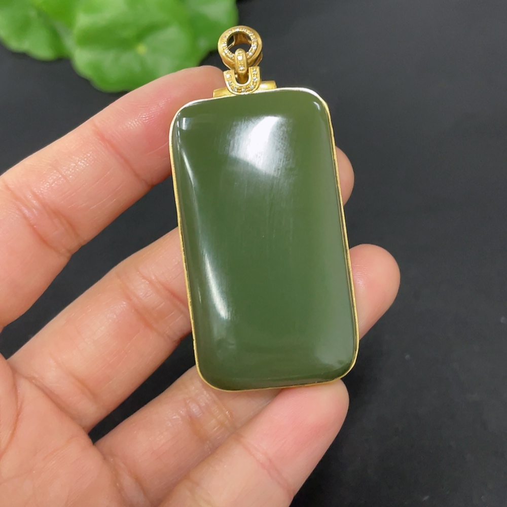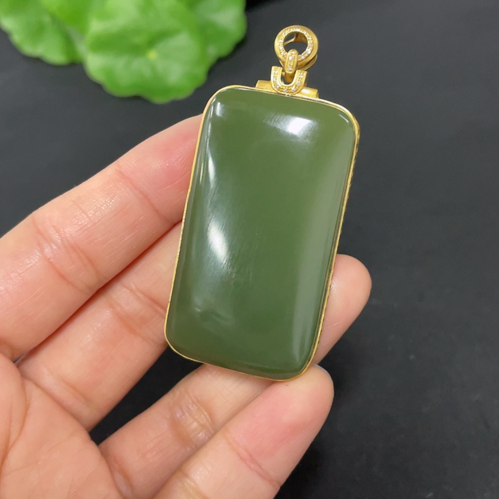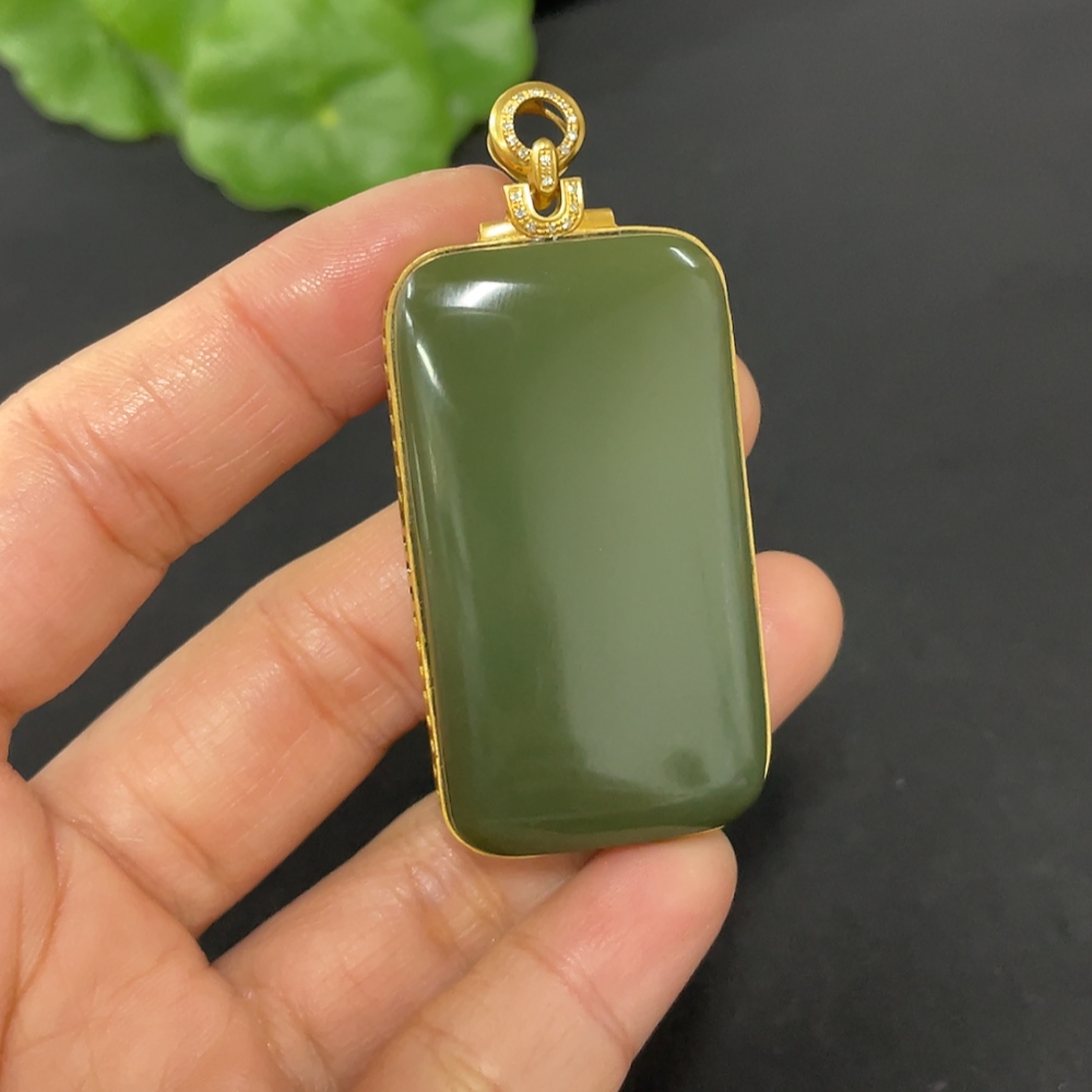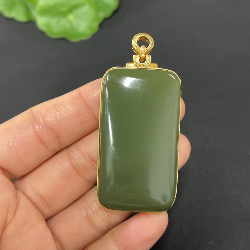 Hetian Jade Inlaid Plain Pendant with 71% Gold Content, Total Weight Approximately 25.9g, Set with Diamonds