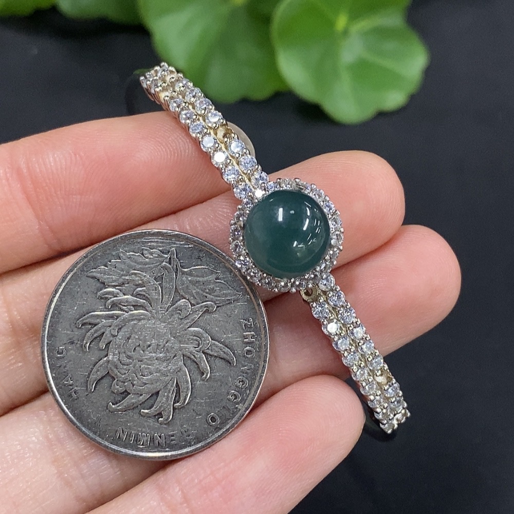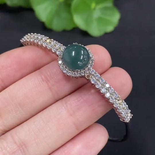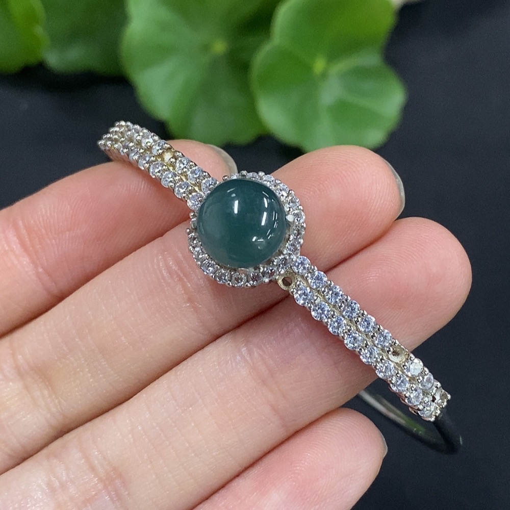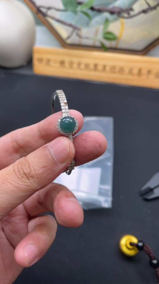 Jadeite Cabochon Inlaid Jewelry Non-Gold Inlaid Total Weight Approx. 5.9g