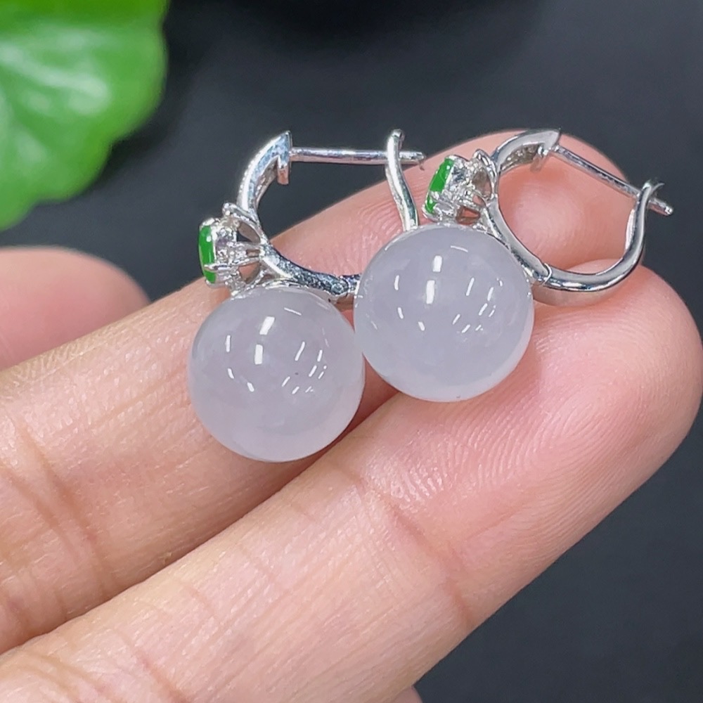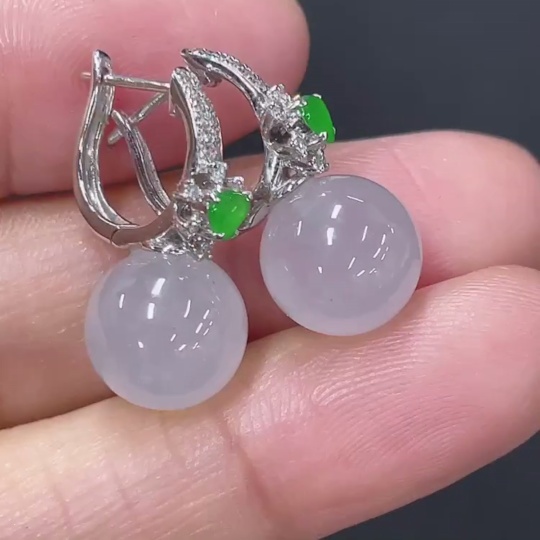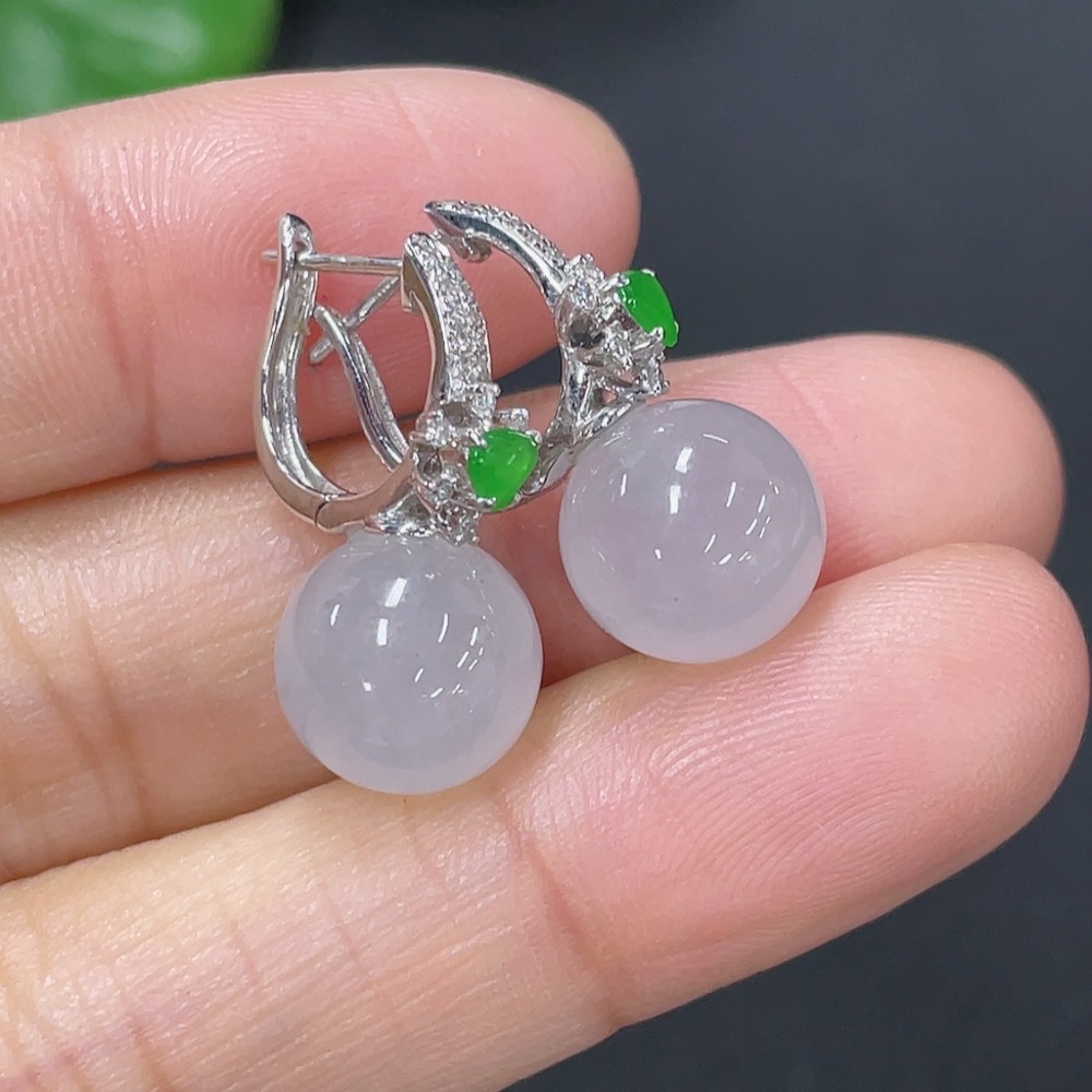 Jadeite Earrings with 18k Gold and Diamond Accents, Total Weight Approximately 4.6g