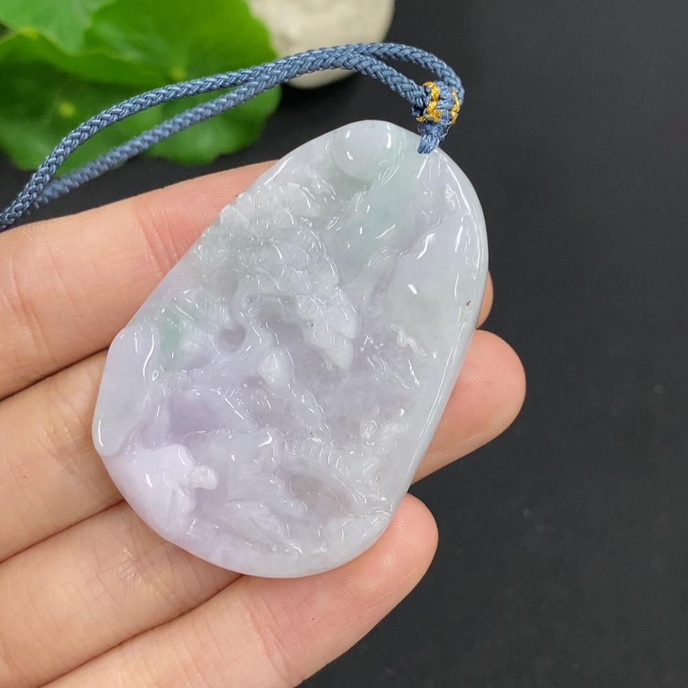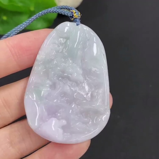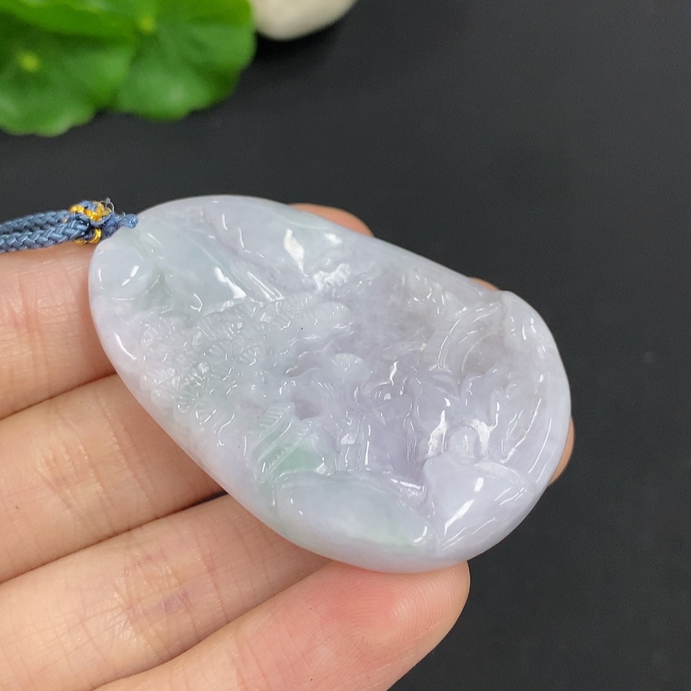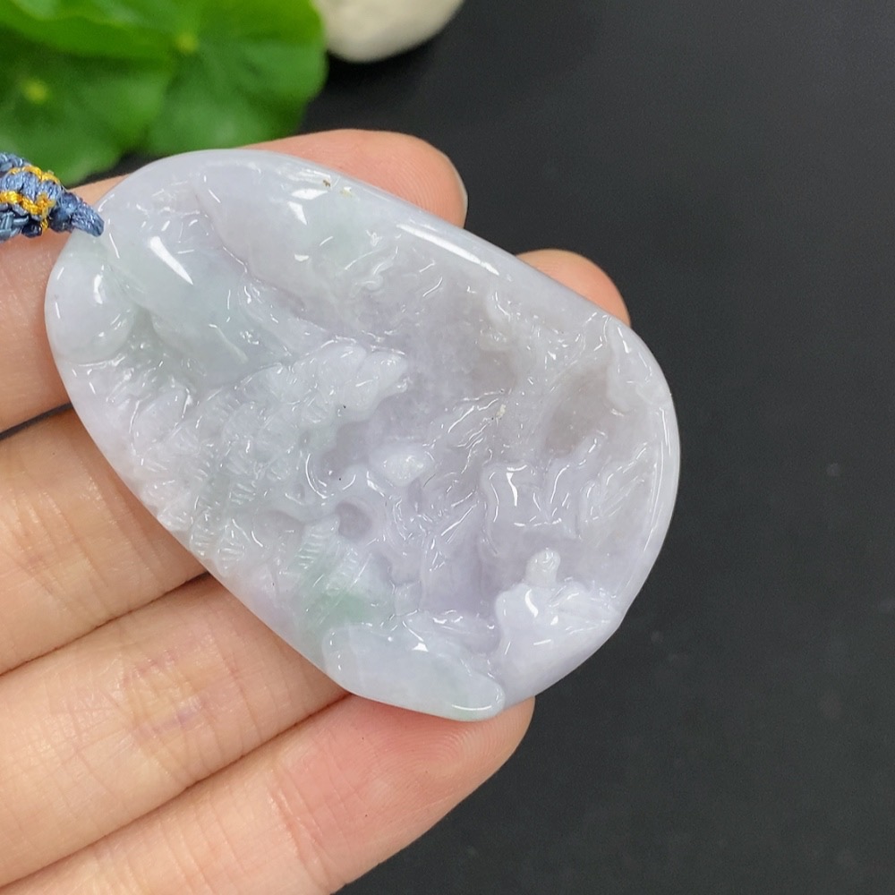 Jadeite Landscape Pendant Total Weight Approx. 26.7g (Including Rope Weight)
