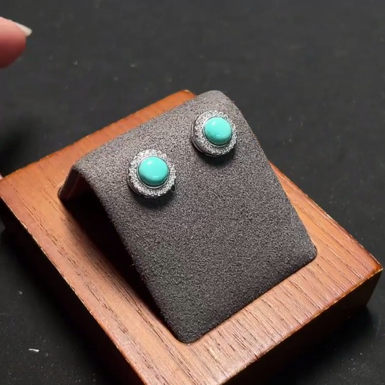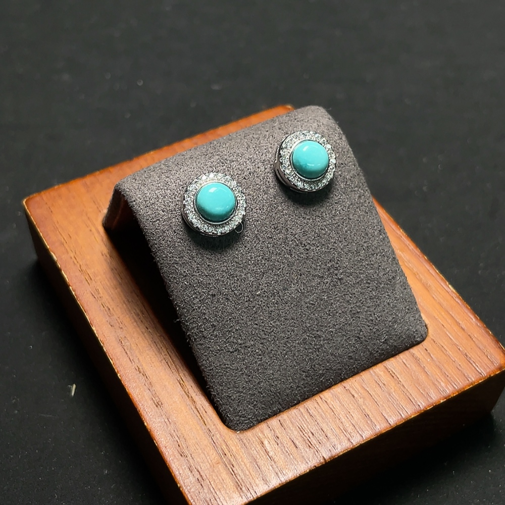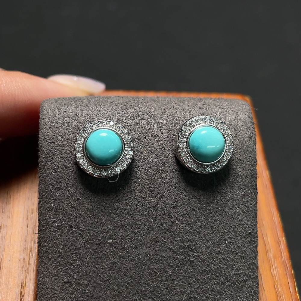 Turquoise earrings containing other mineral components, total product weight approximately 1.81g, non-gold