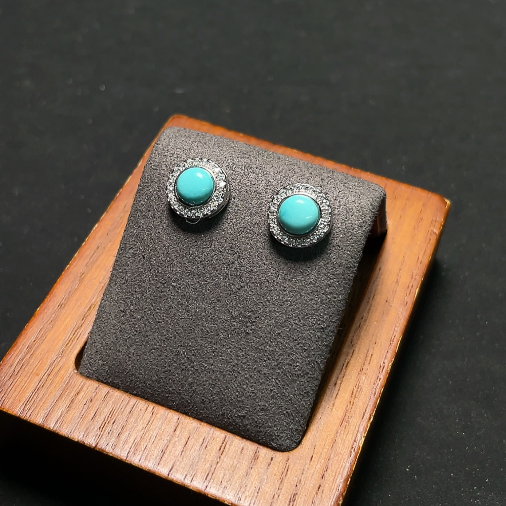 Trezaar - Turquoise earrings containing other mineral components, total product weight approximately 1.81g, non-gold