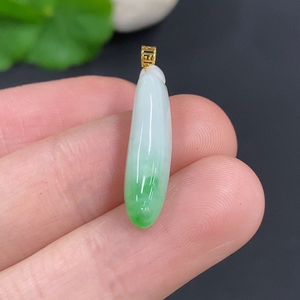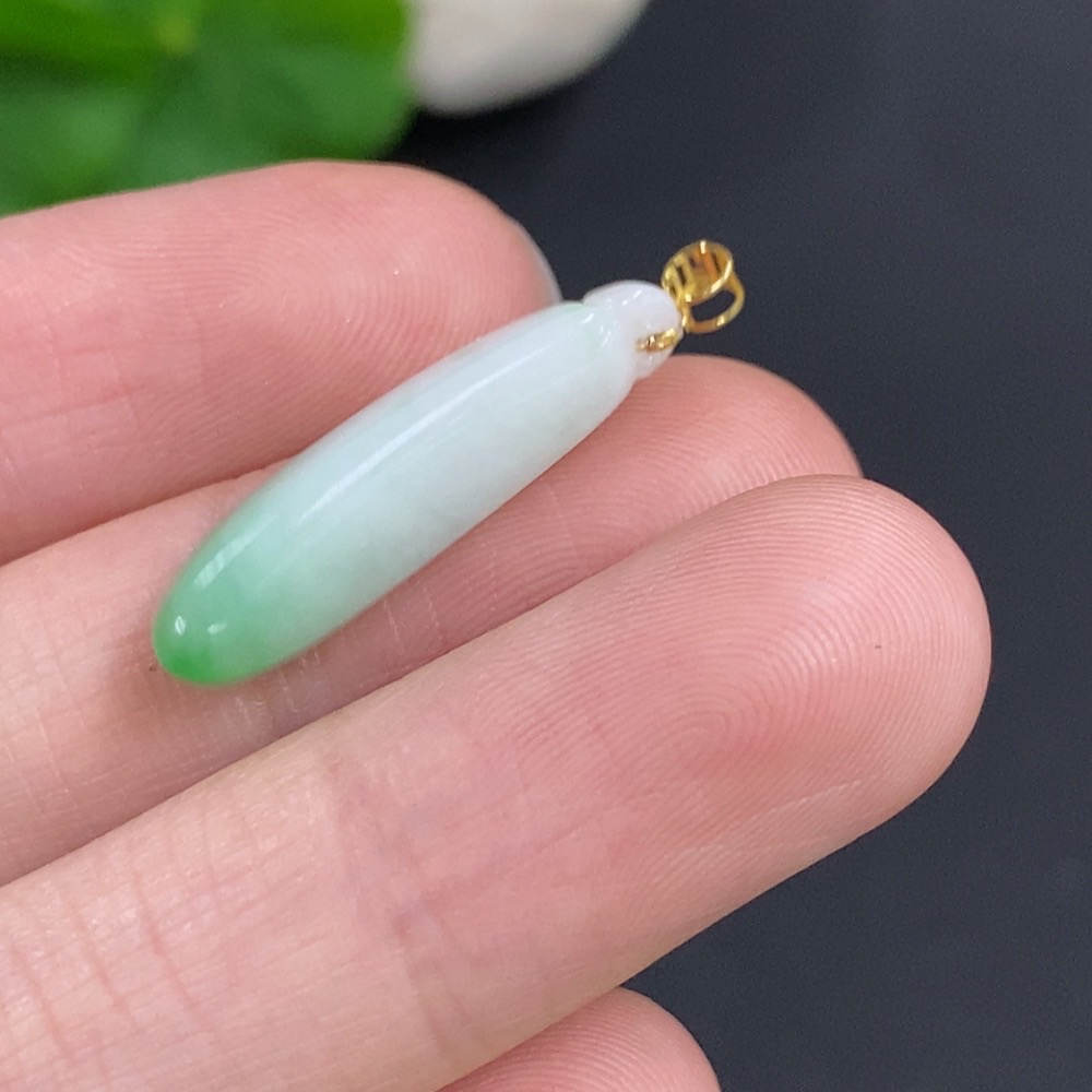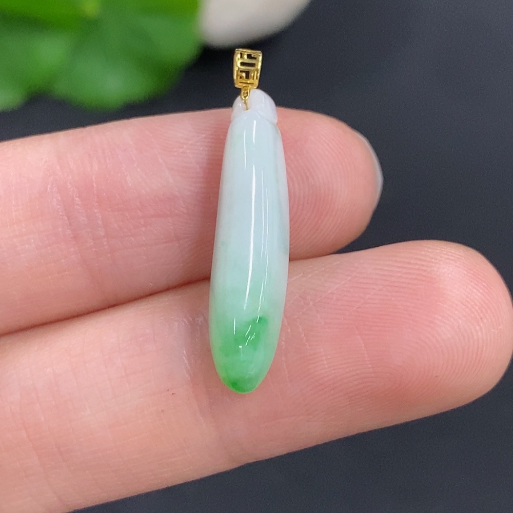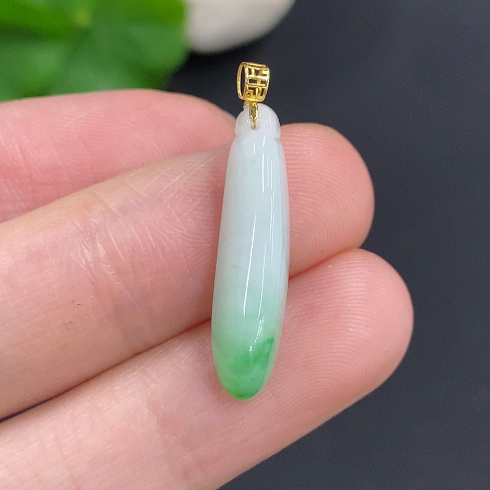 Jadeite Fu Gua Pendant with 18K Gold Clasp, Total Weight Approximately 1.5g