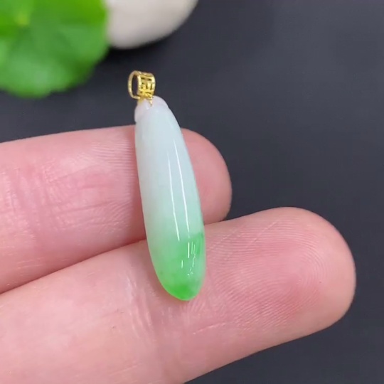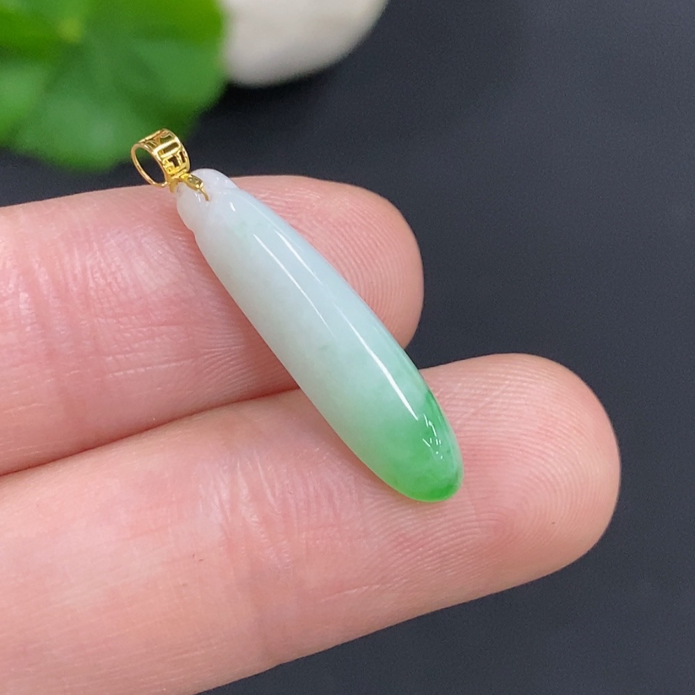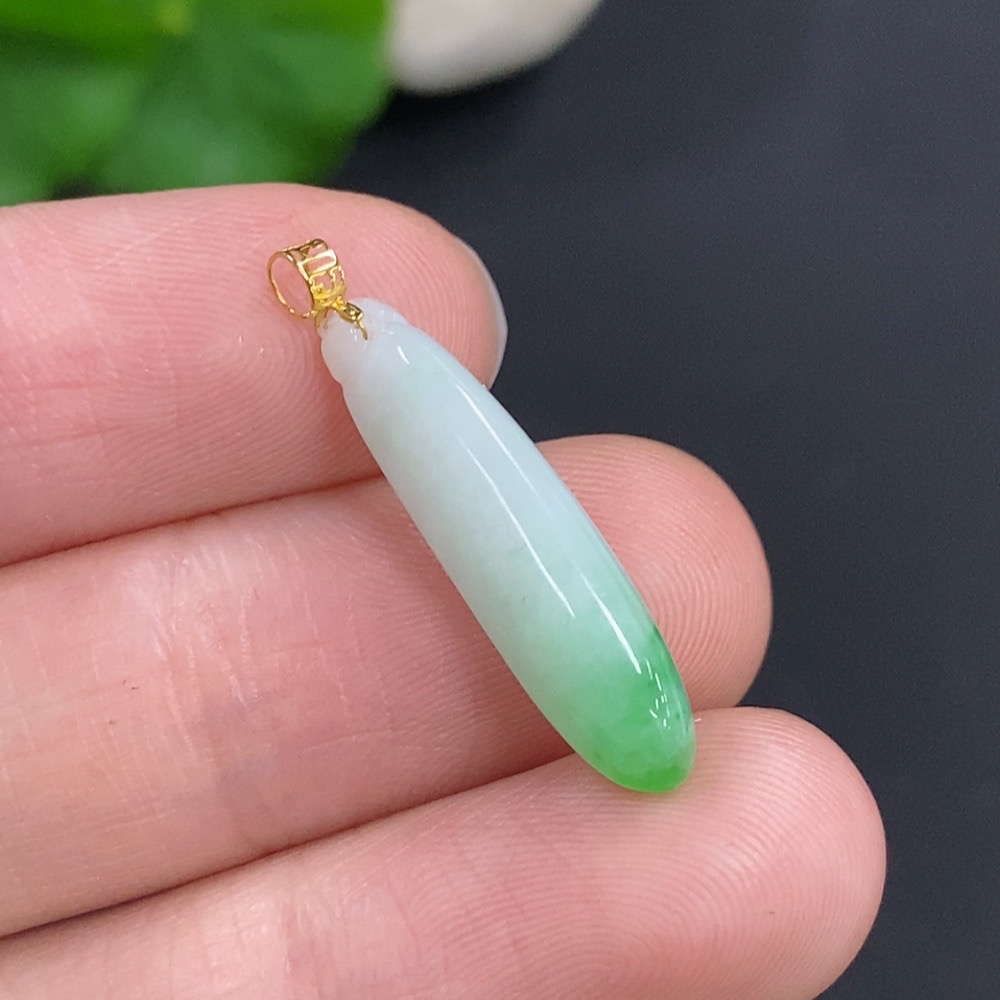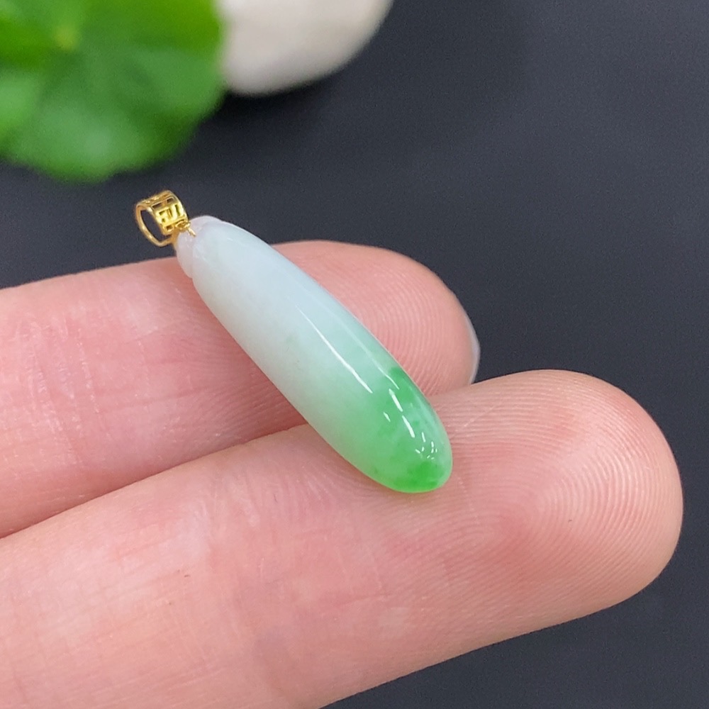 Jadeite Fu Gua Pendant with 18K Gold Clasp, Total Weight Approximately 1.5g
