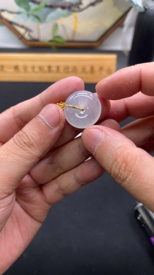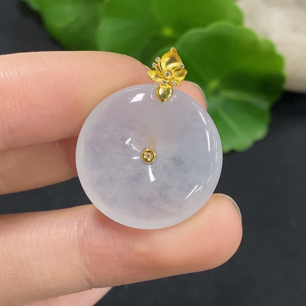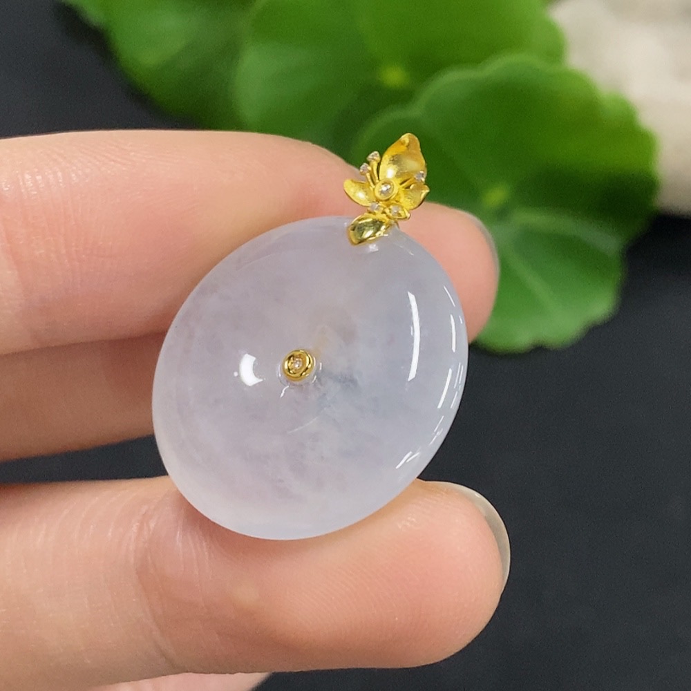 Jadeite Peace Knot Pendant with 18K Gold and Diamond Accents, Total Weight Approx. 5.66g