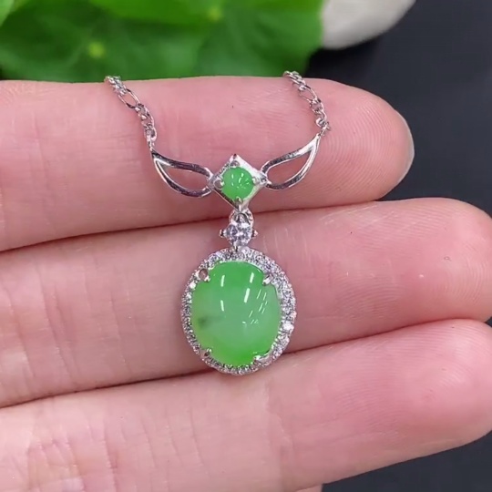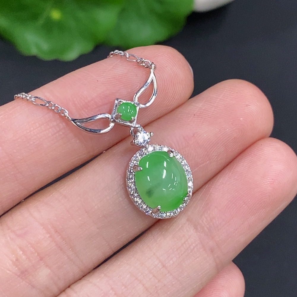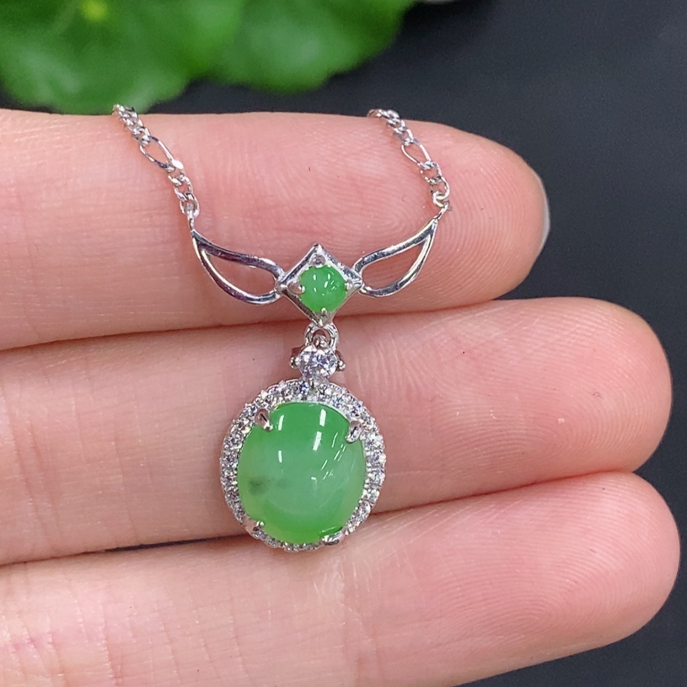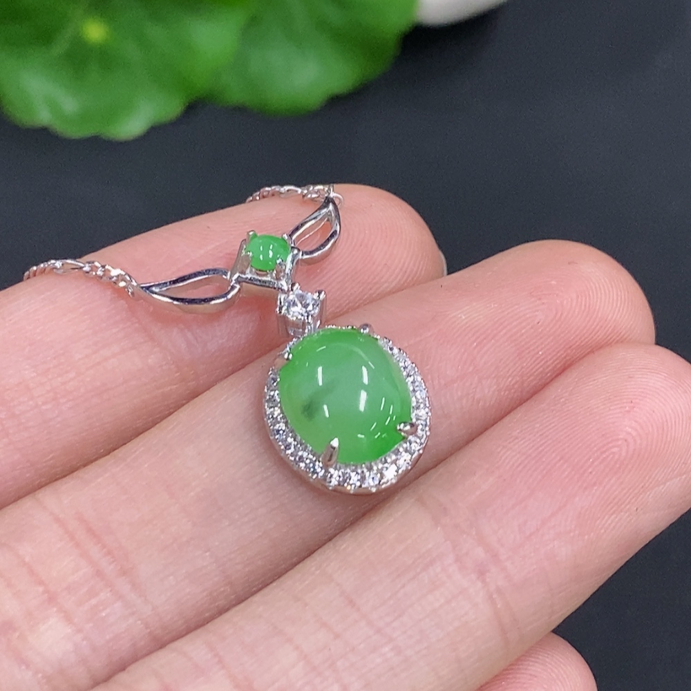 Jadeite Cabochon Pendant with Non-Gold Setting, Total Weight Approximately 4.2g